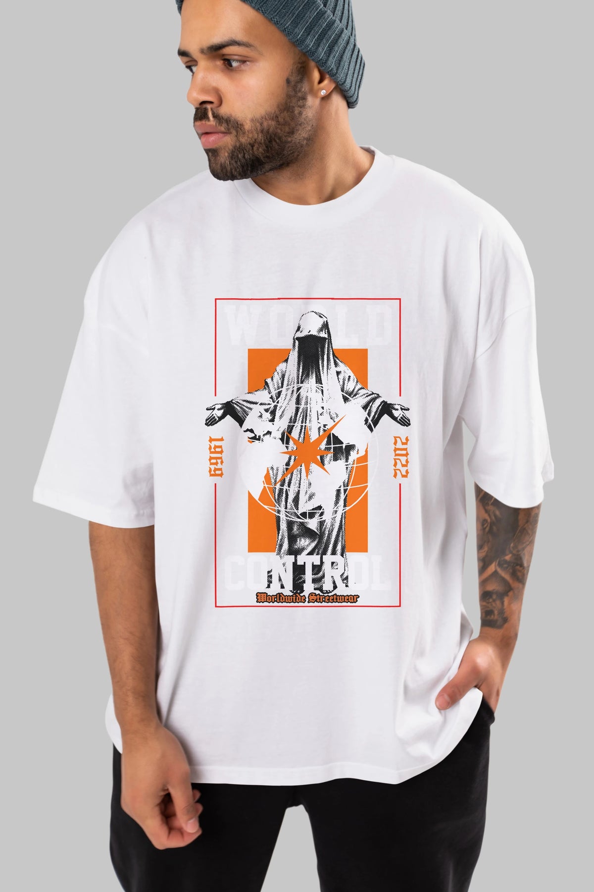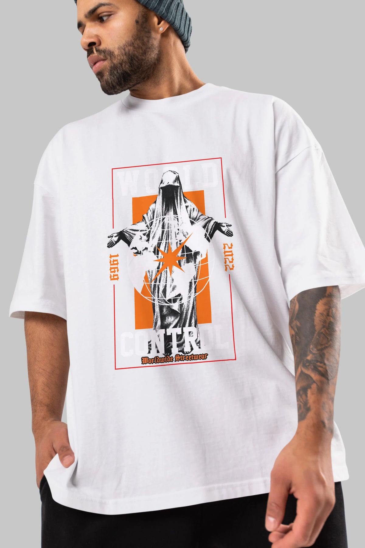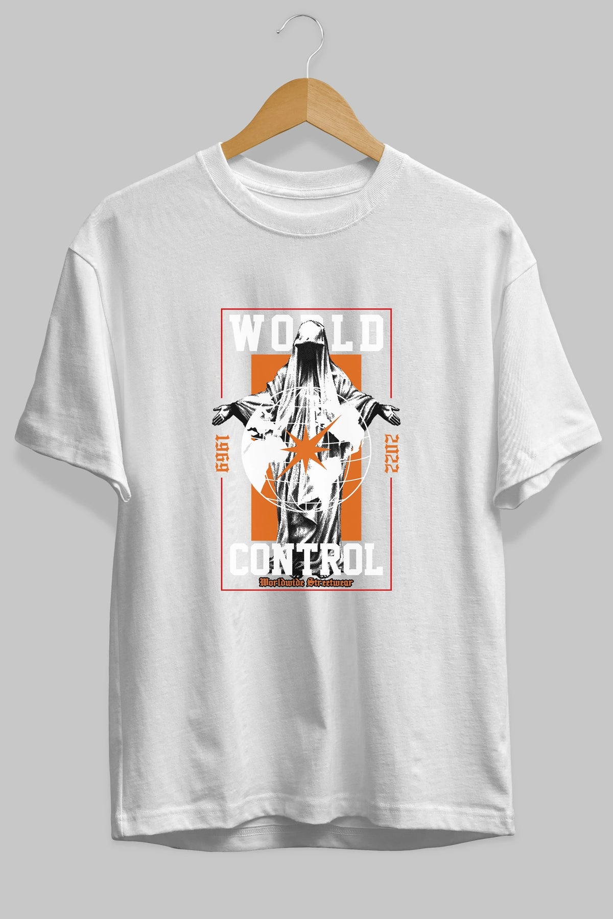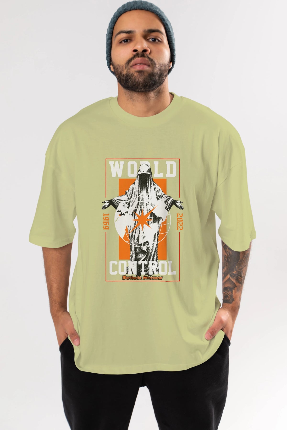World Control Ön Baskılı Oversize t-shirt Erkek Kadın Unisex