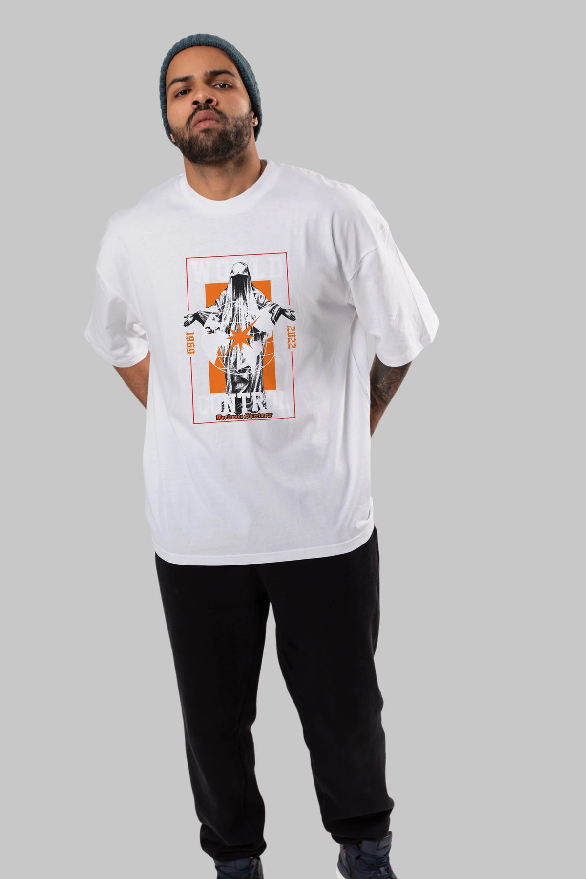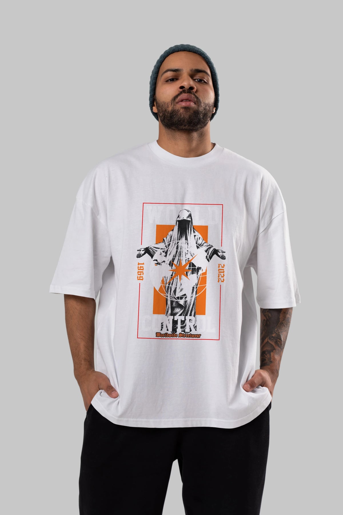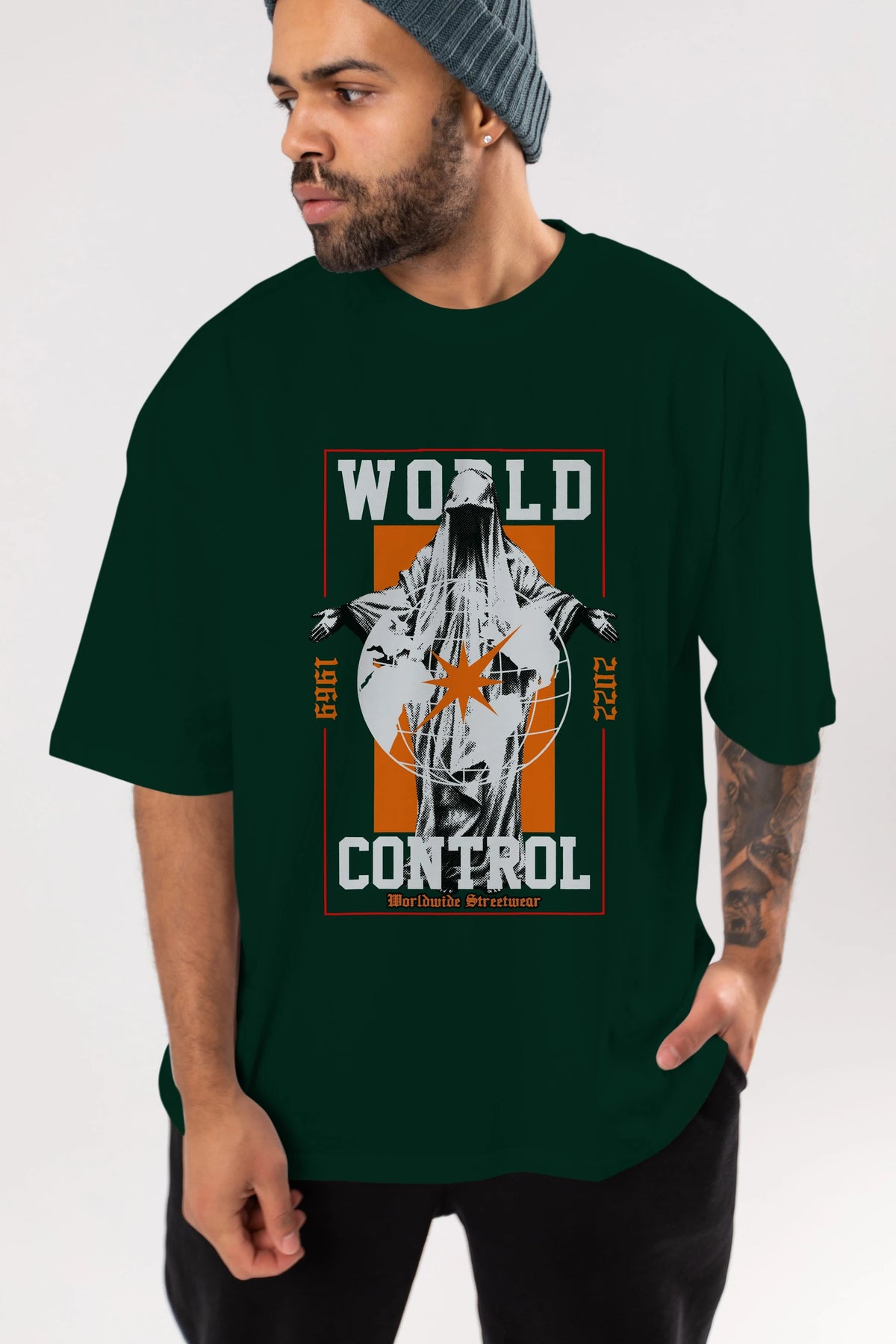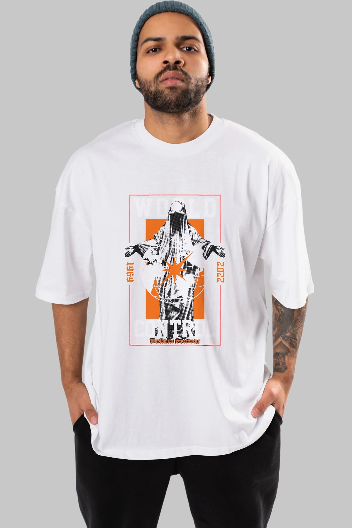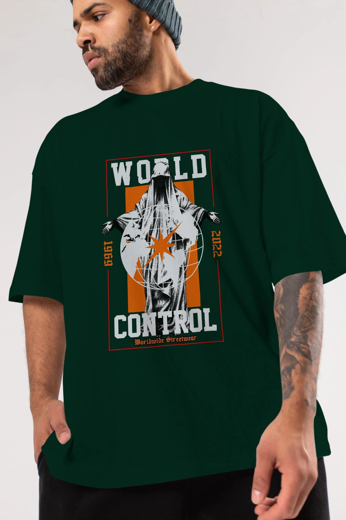 World Control Ön Baskılı Oversize t-shirt Erkek Kadın Unisex
