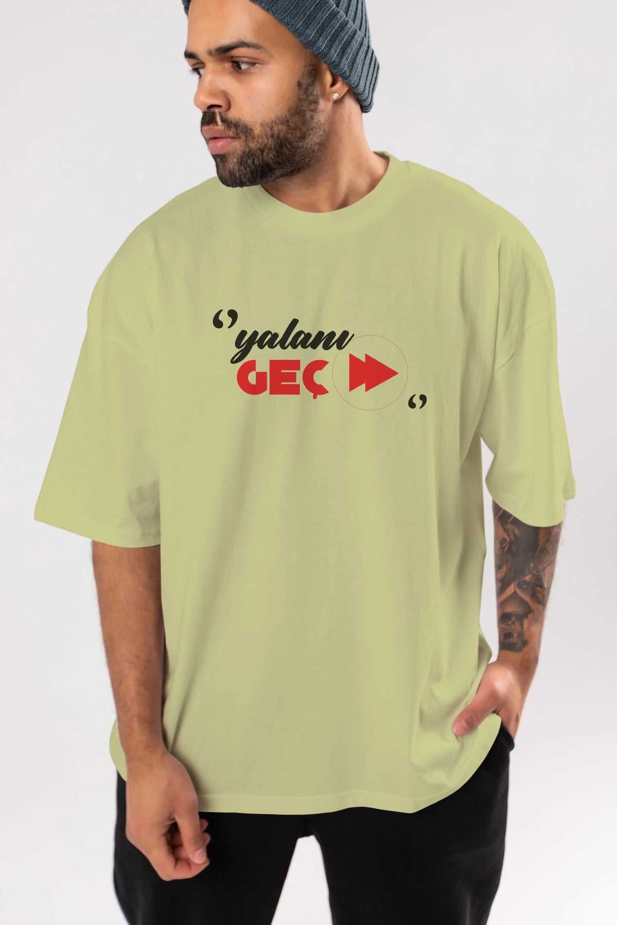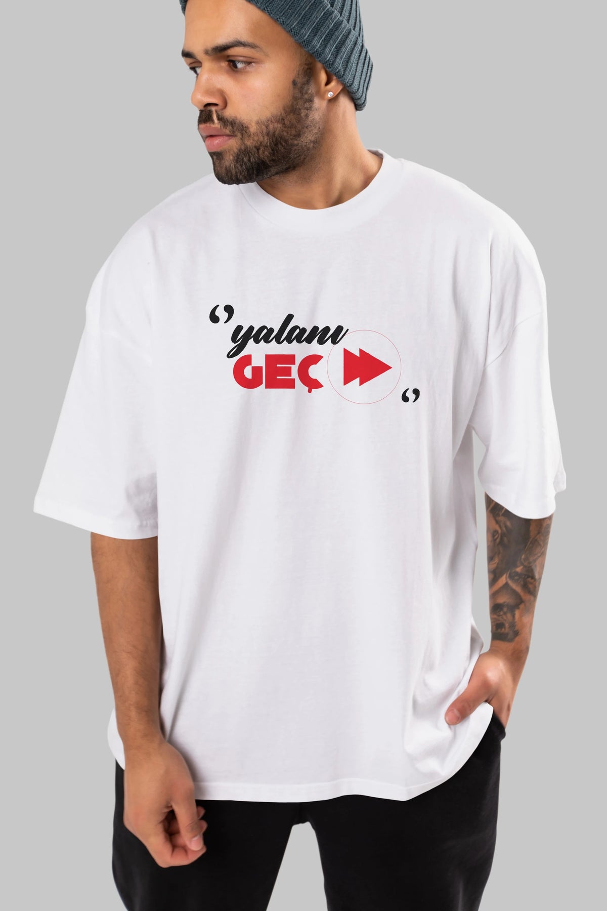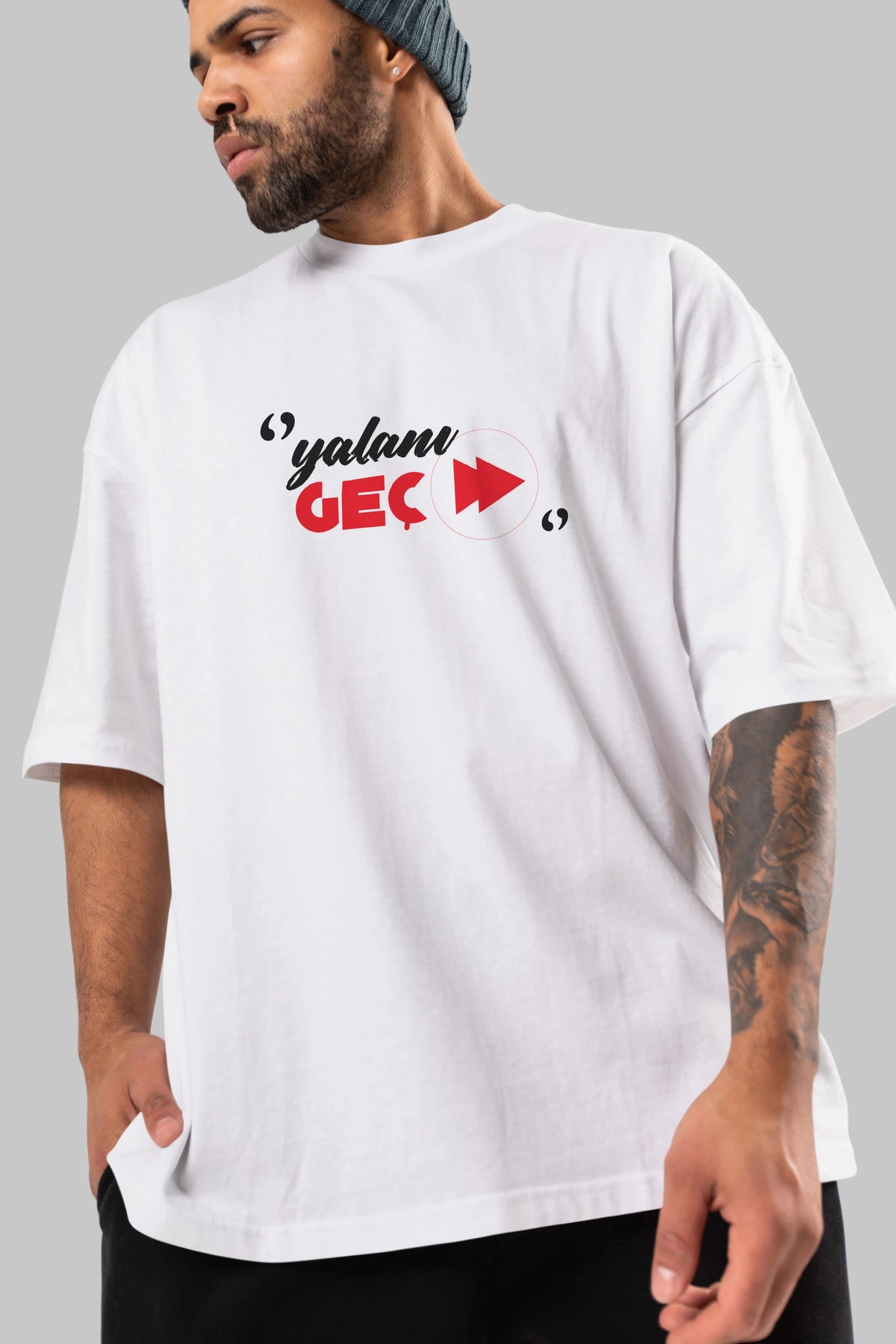 Yalanı Geç Ön Baskılı Oversize t-shirt %100 pamuk Erkek Kadın Unisex