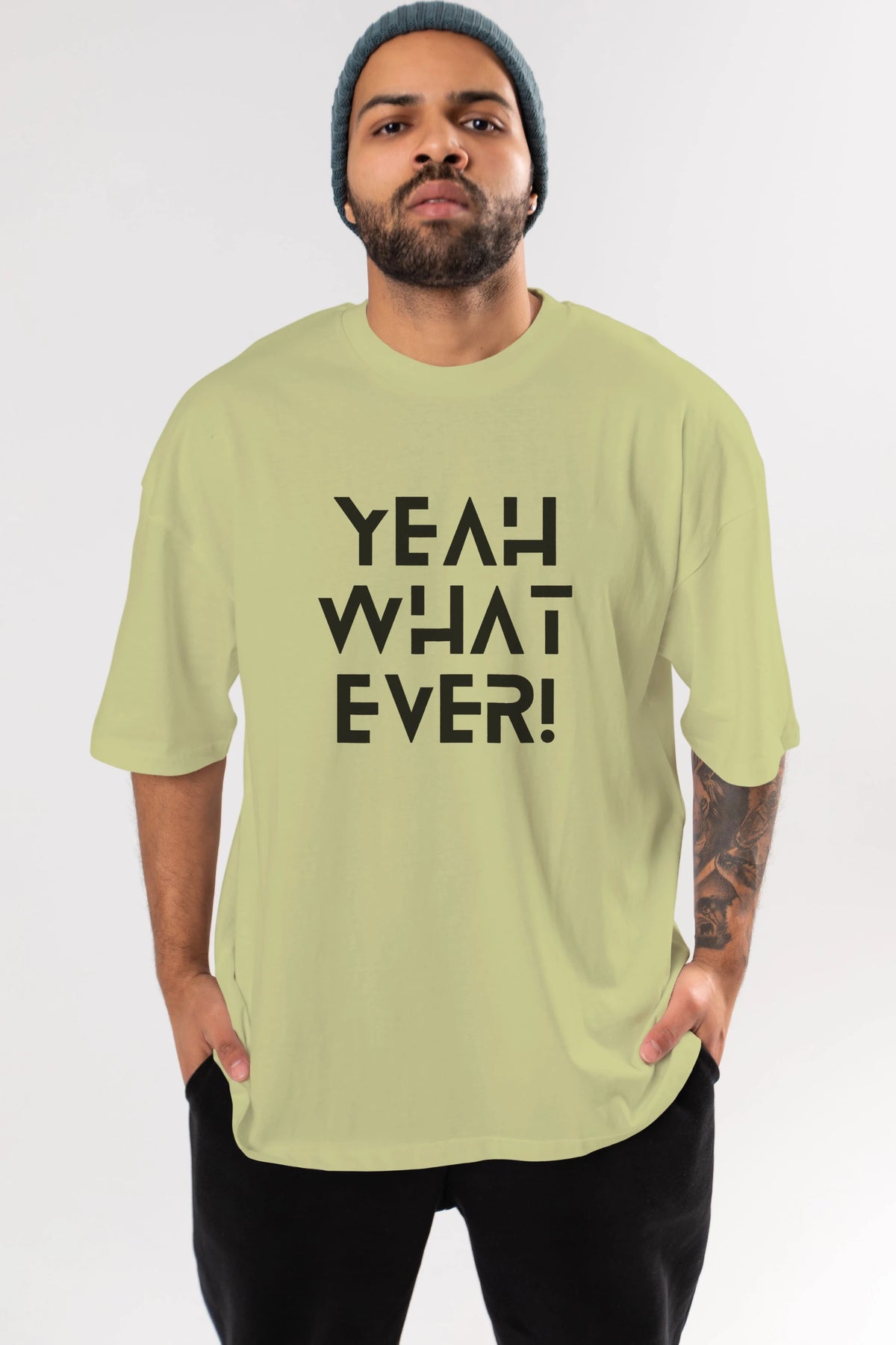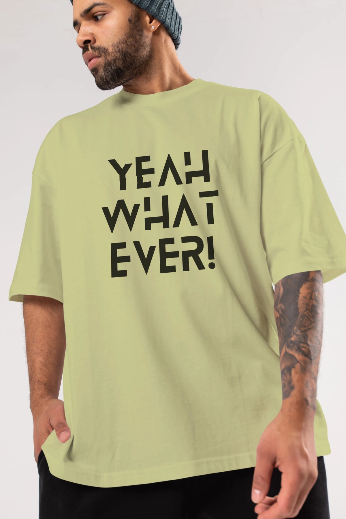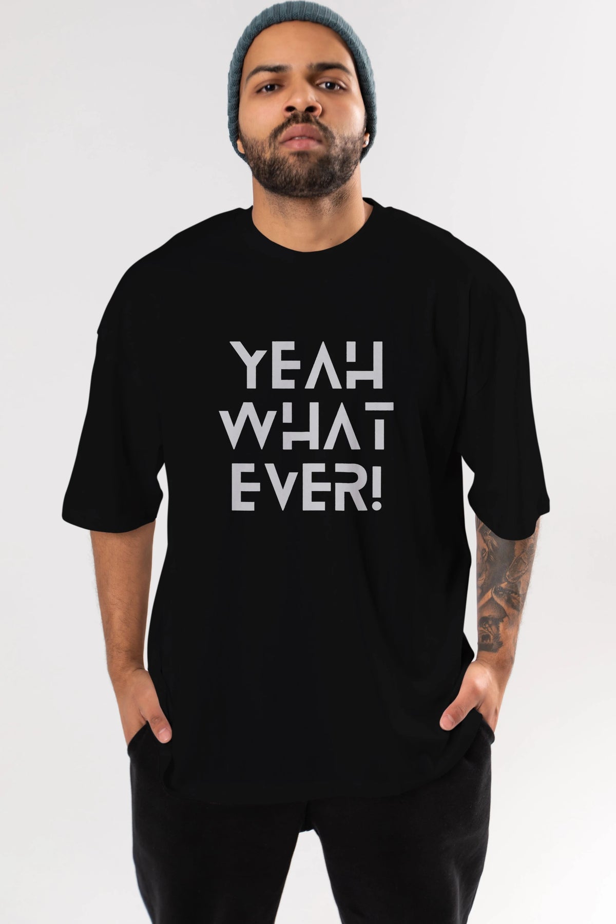 Yeah What Ever Yazılı Ön Baskılı Oversize t-shirt Erkek Kadın Unisex