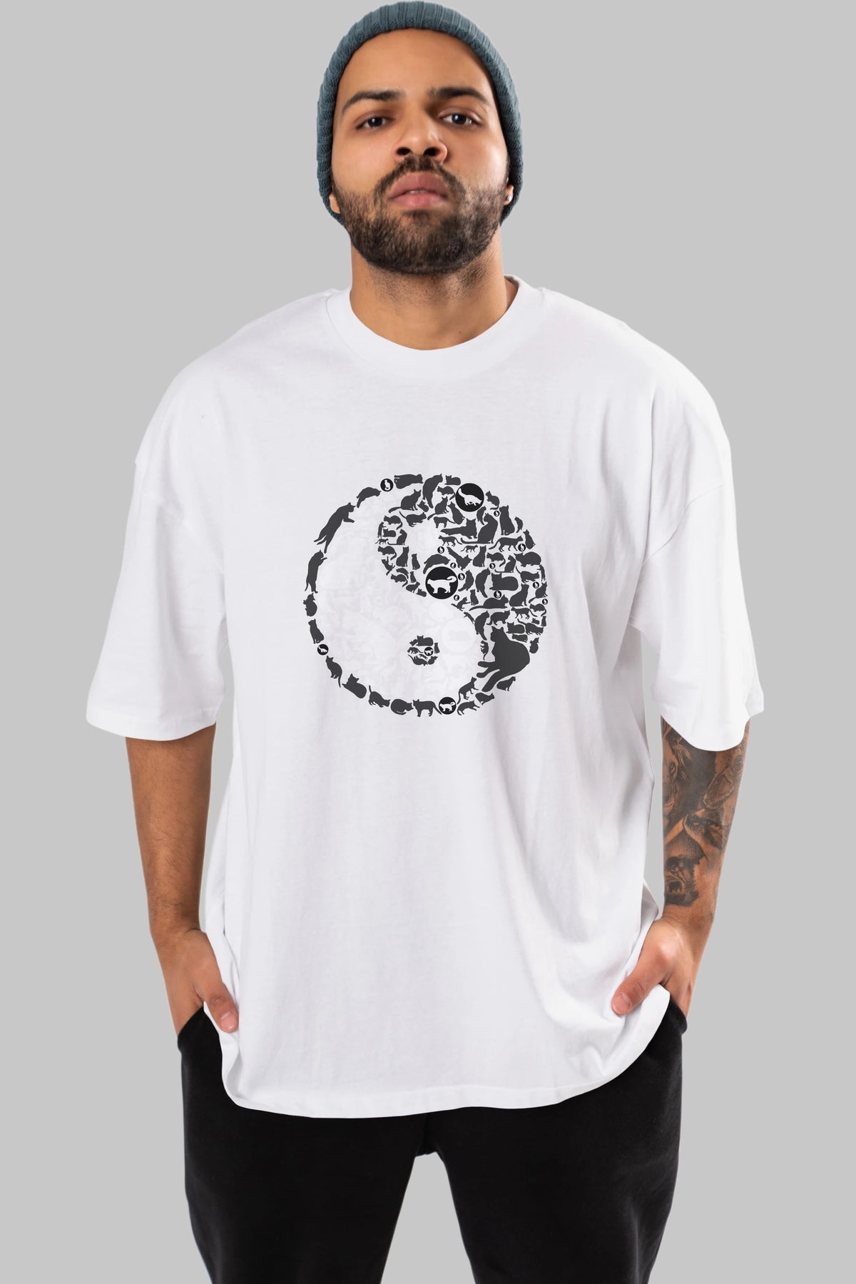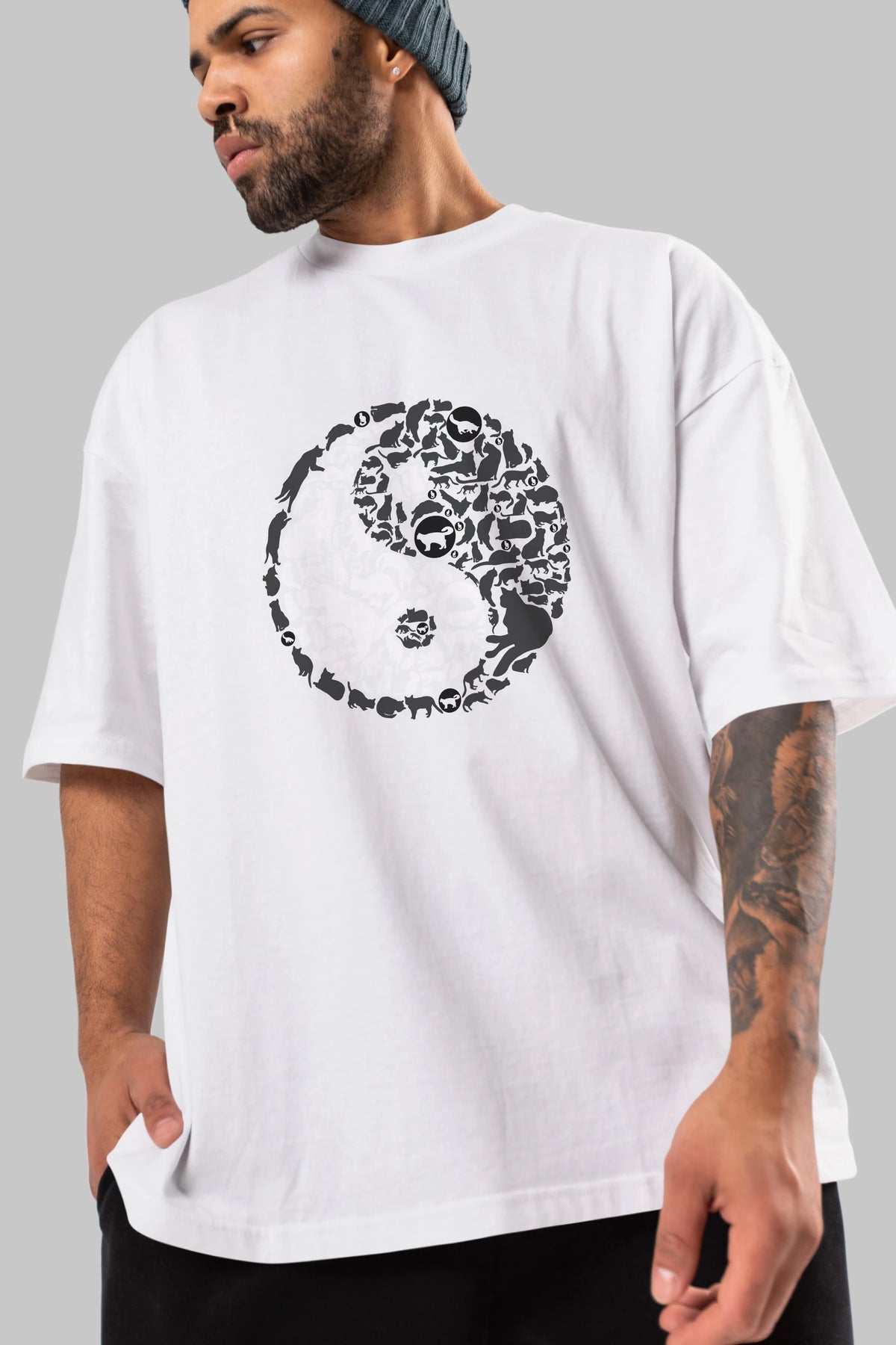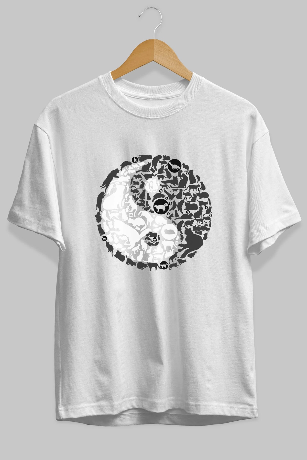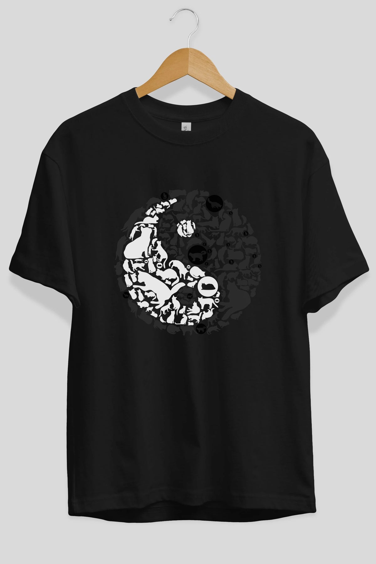 YinYang Cats Ön Baskılı Oversize t-shirt %100 pamuk Erkek Kadın Unisex