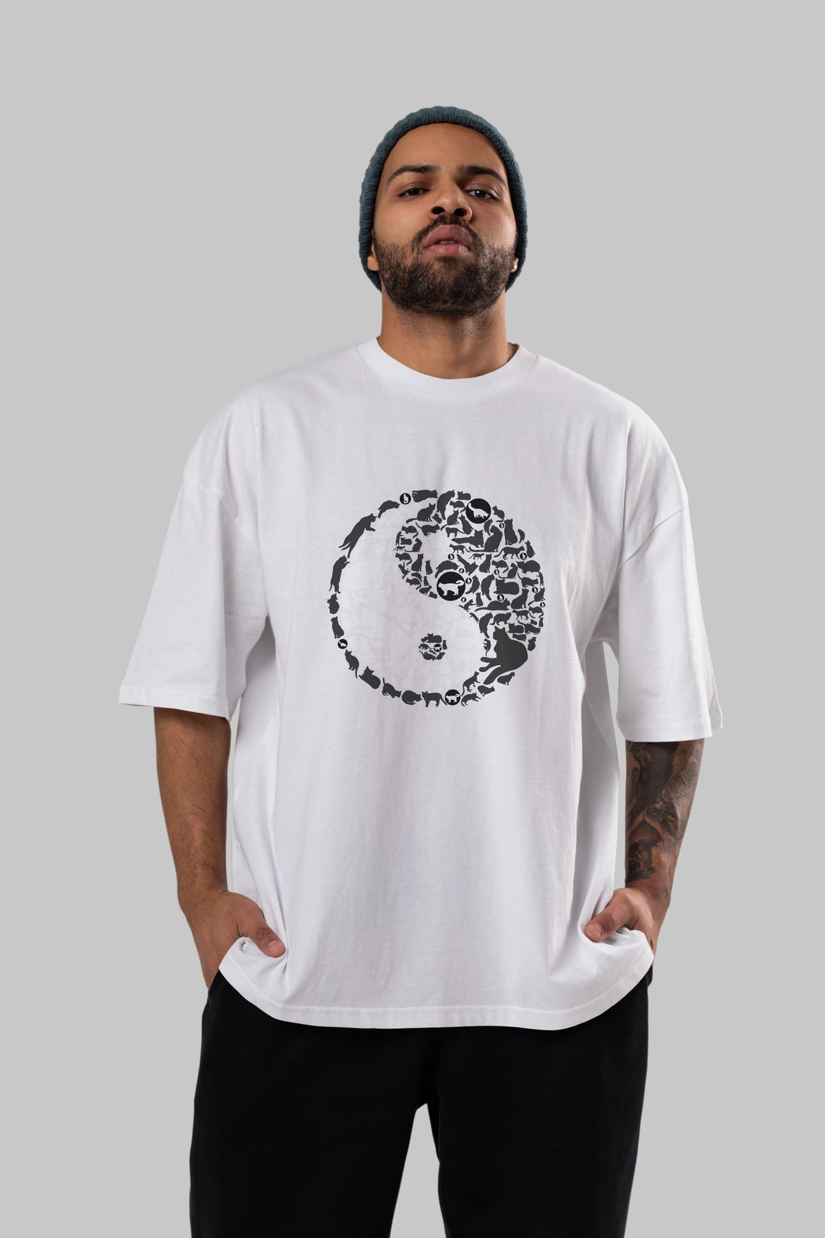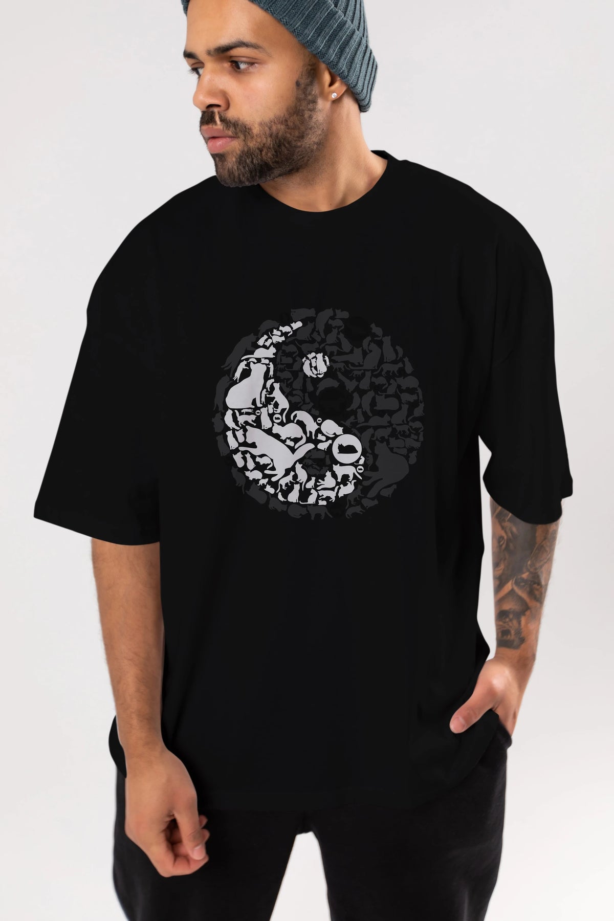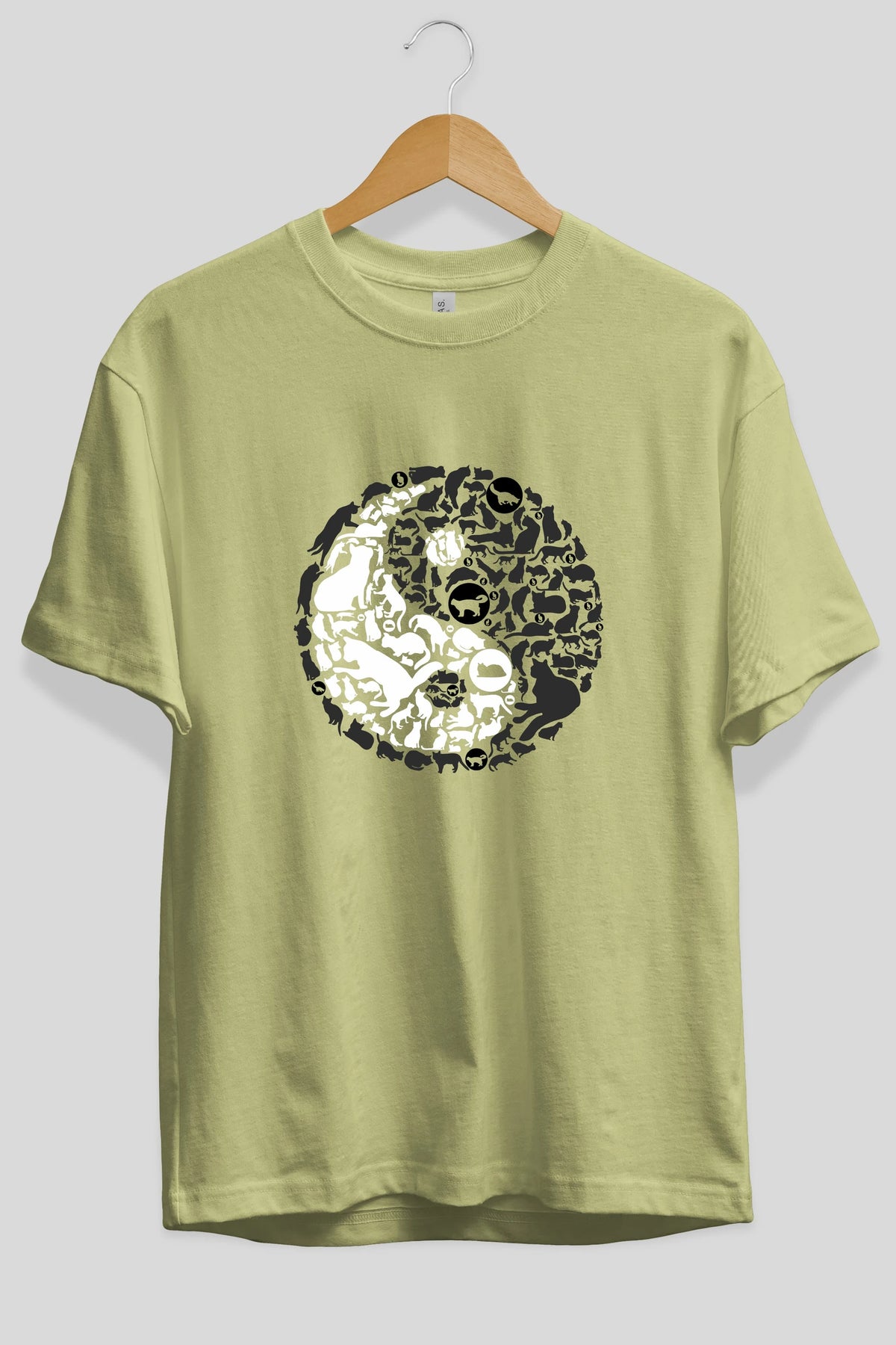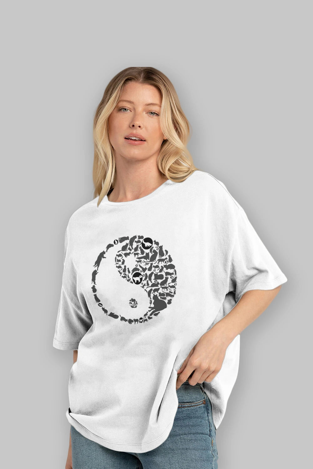 YinYang Cats Ön Baskılı Oversize t-shirt %100 pamuk Erkek Kadın Unisex