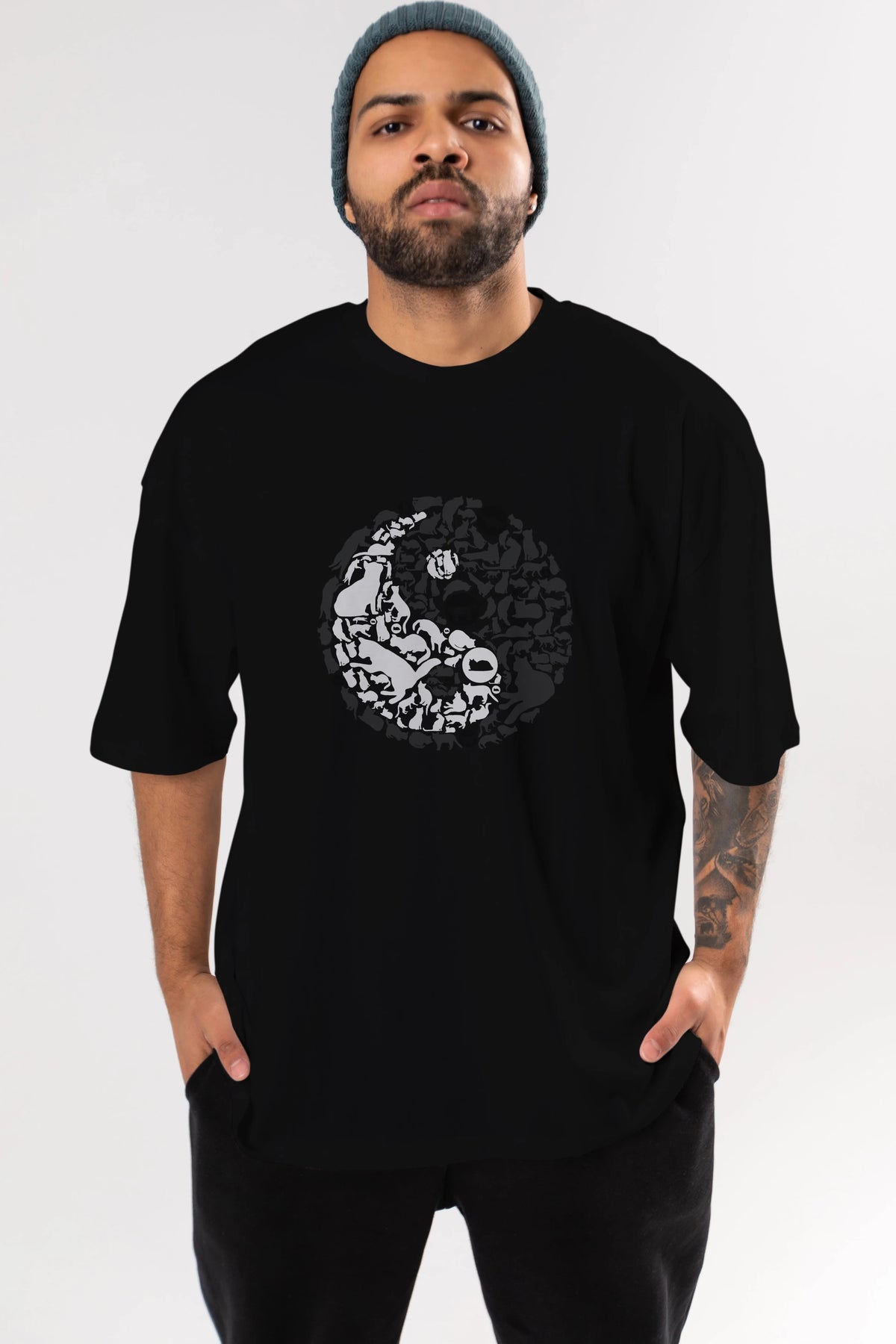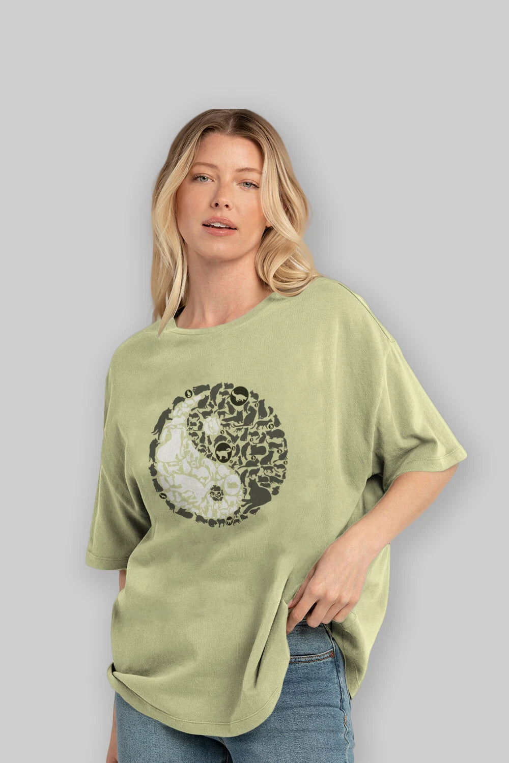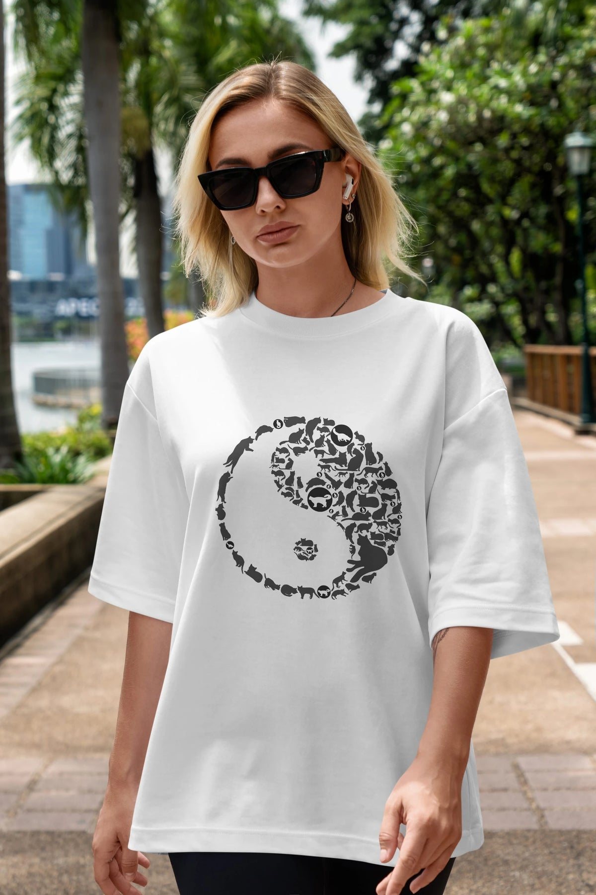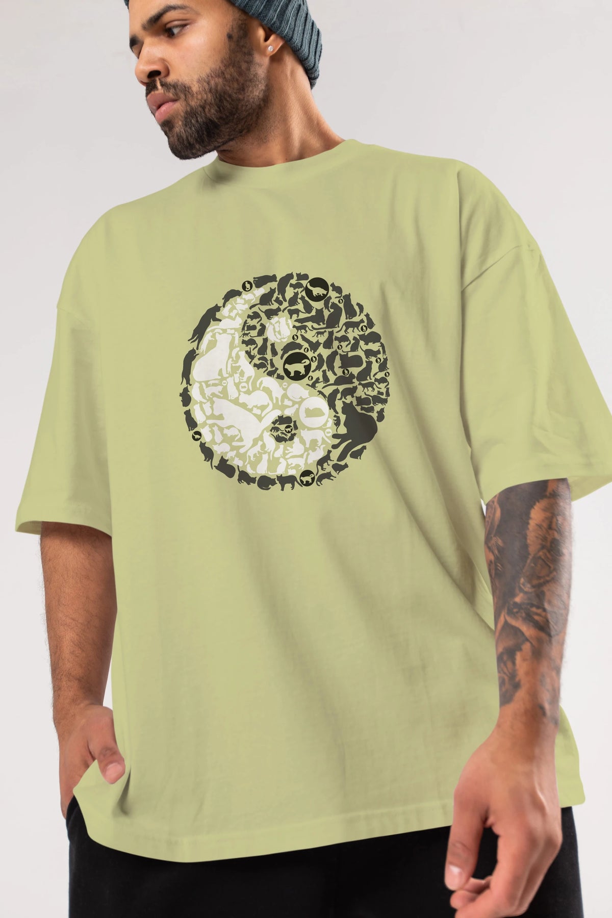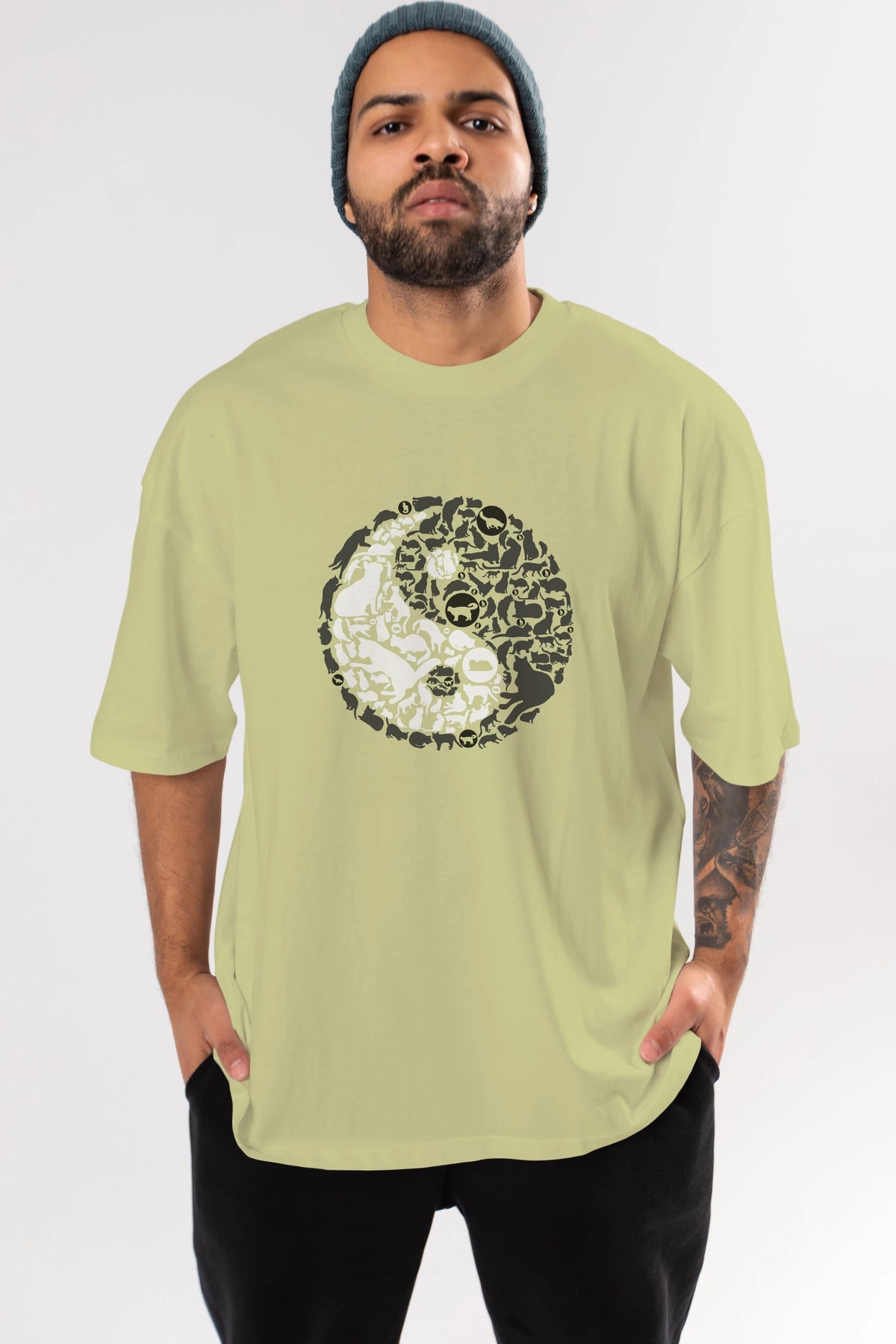 YinYang Cats Ön Baskılı Oversize t-shirt %100 pamuk Erkek Kadın Unisex