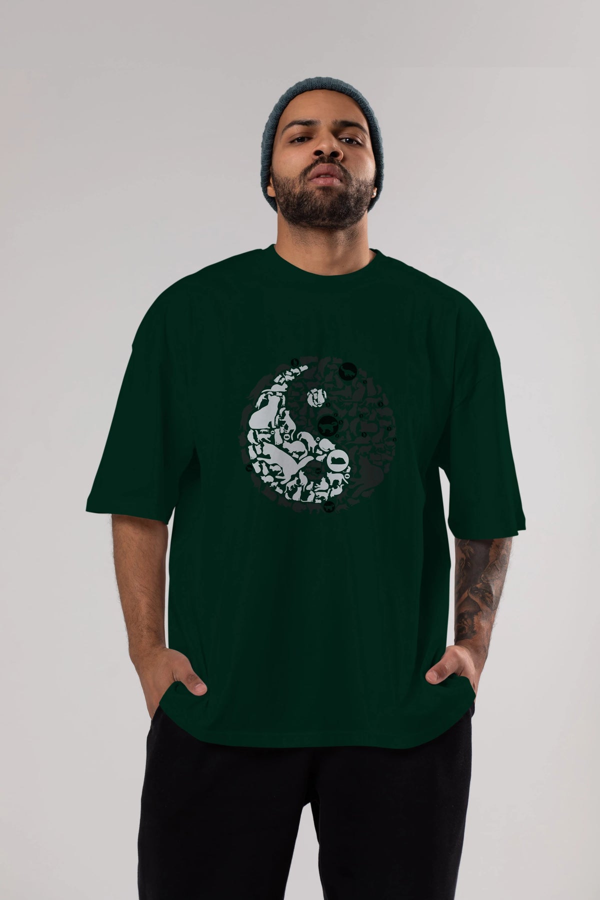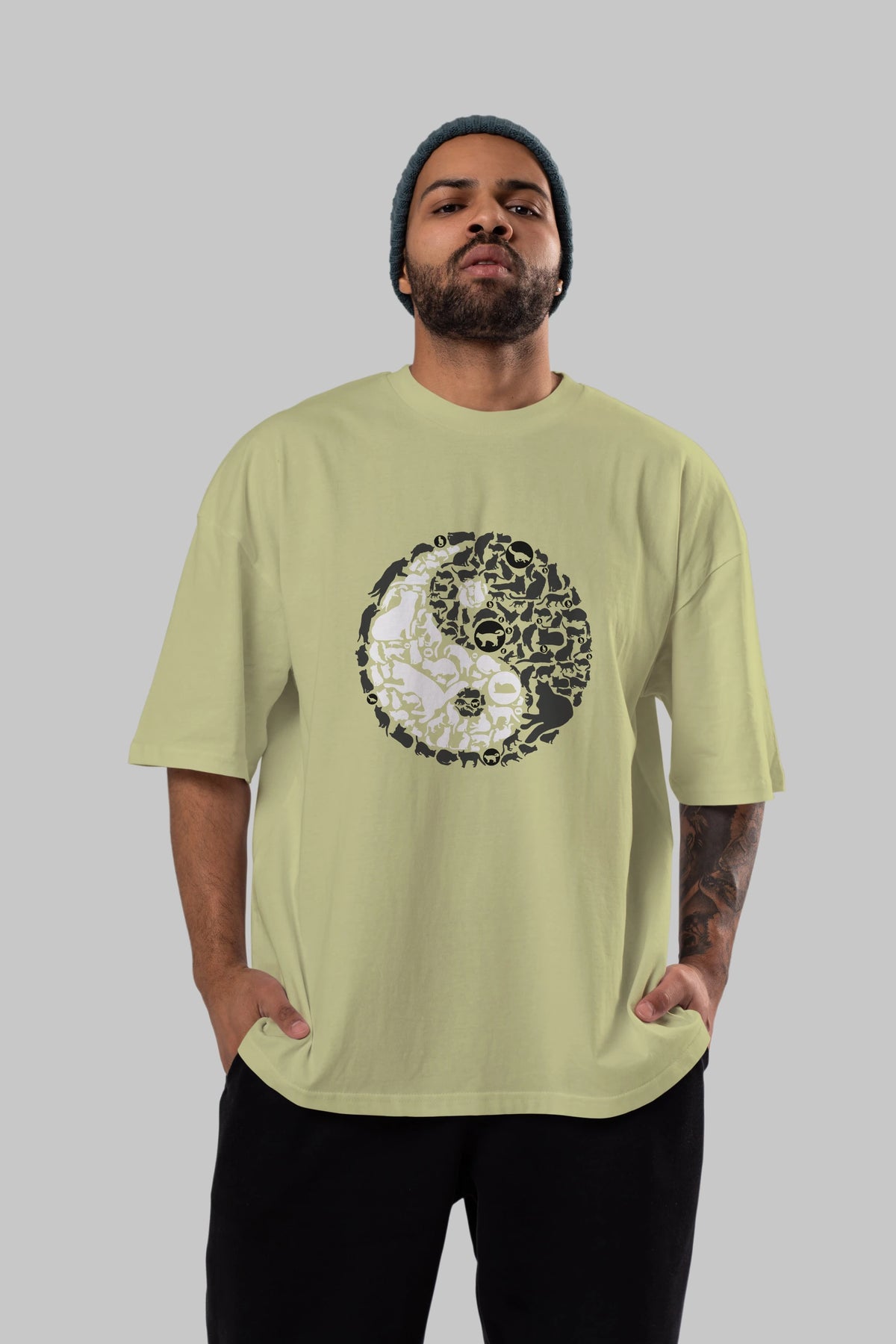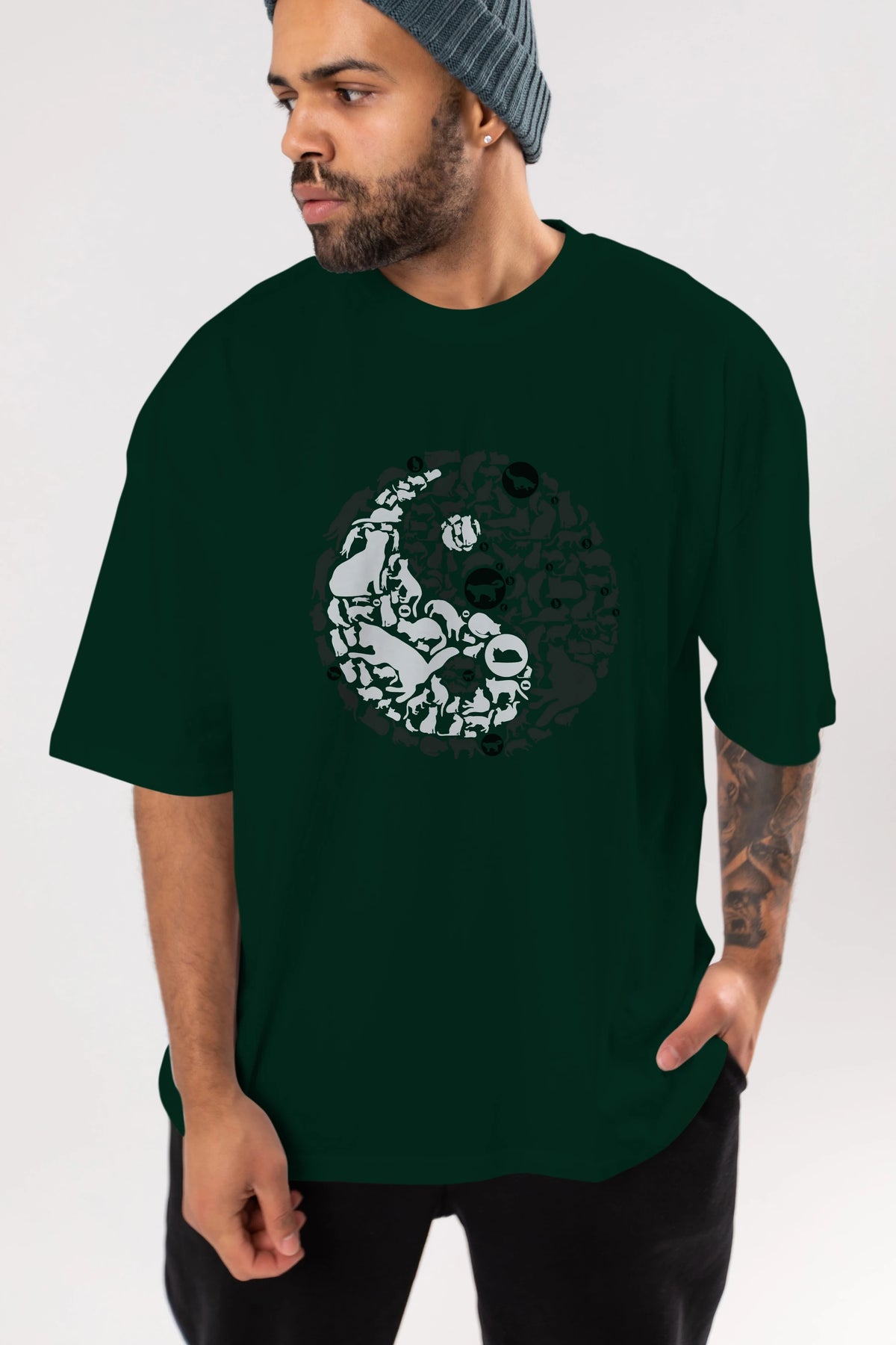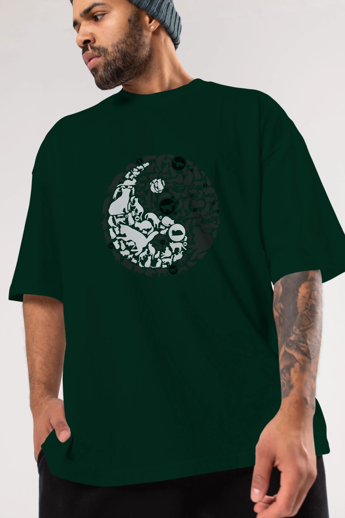 YinYang Cats Ön Baskılı Oversize t-shirt %100 pamuk Erkek Kadın Unisex