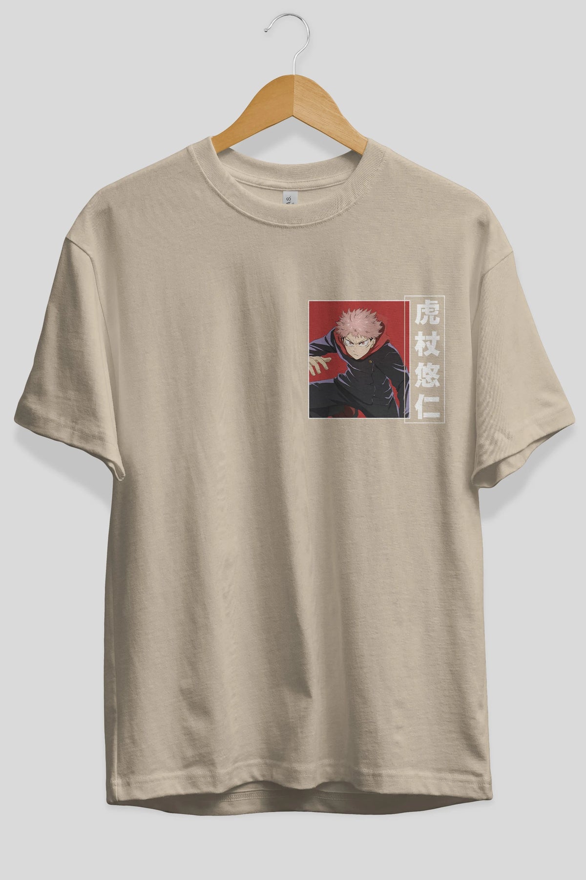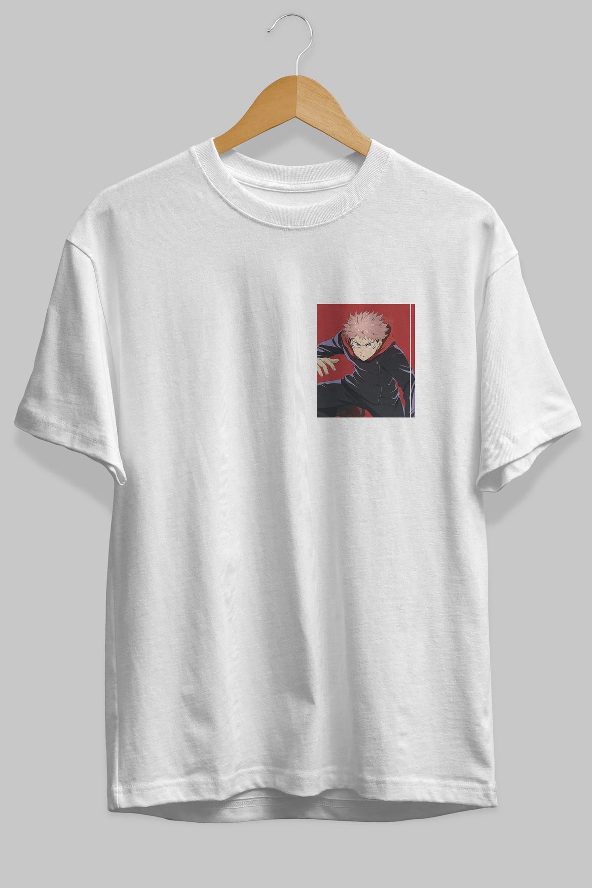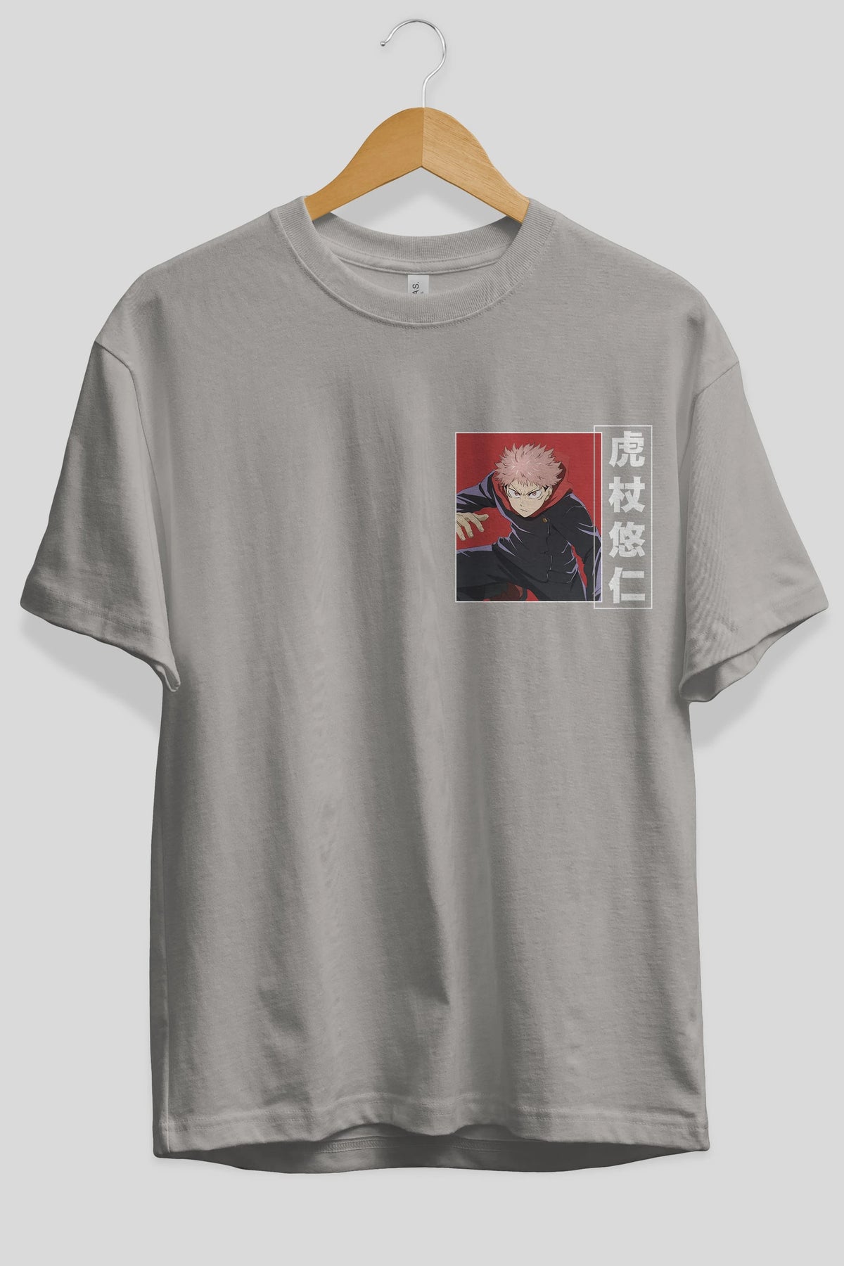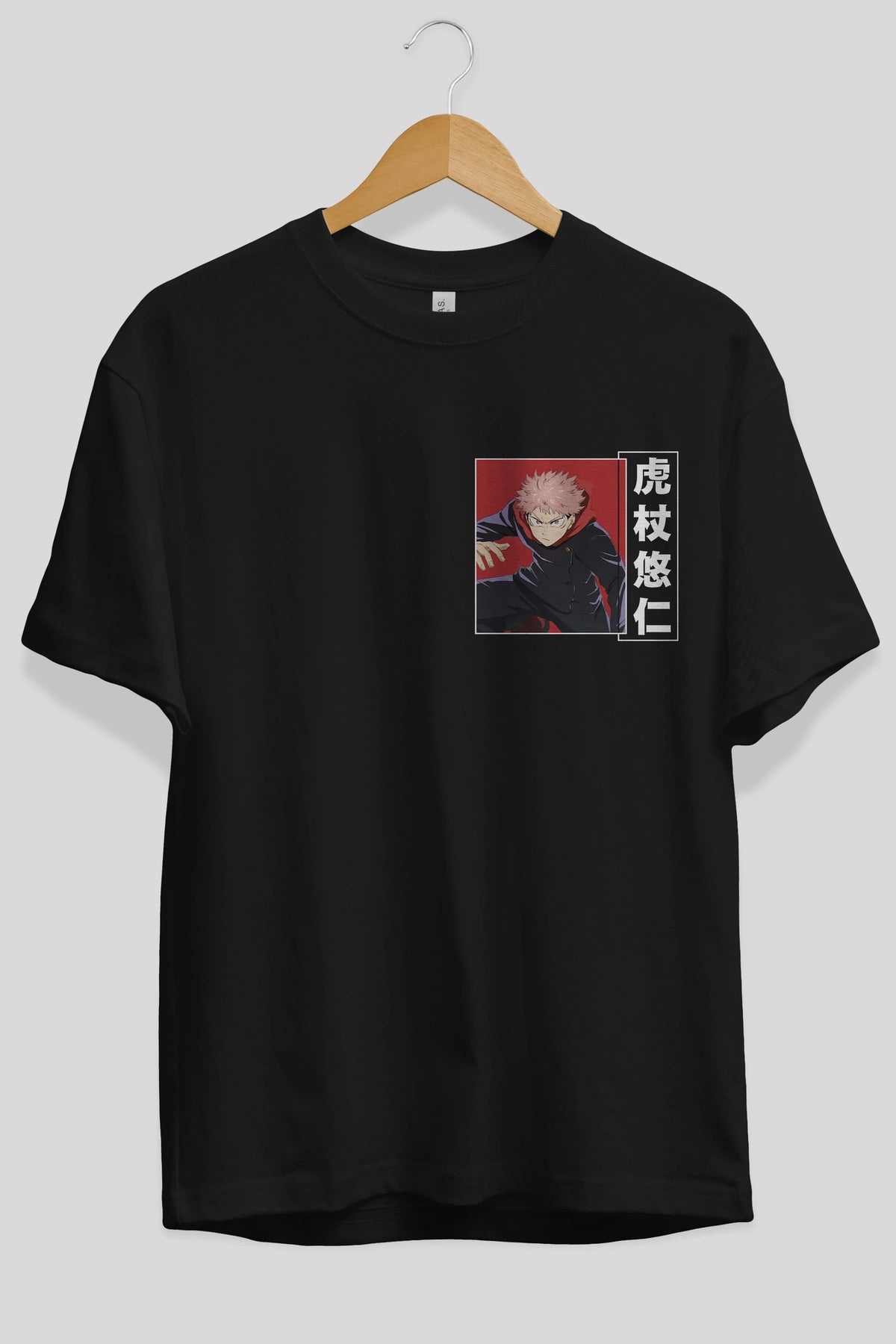 Yuuji Itadori 2 Ön Sol Baskılı Oversize t-shirt Erkek Kadın Unisex %100 Pamuk Bisiklet Yaka tişort