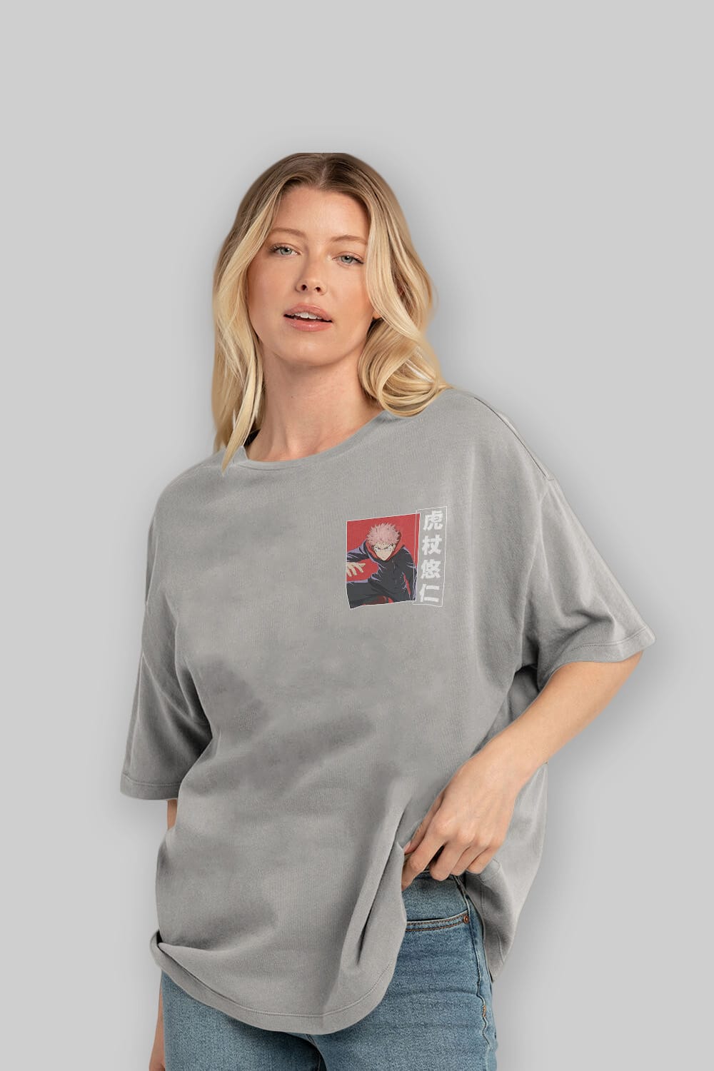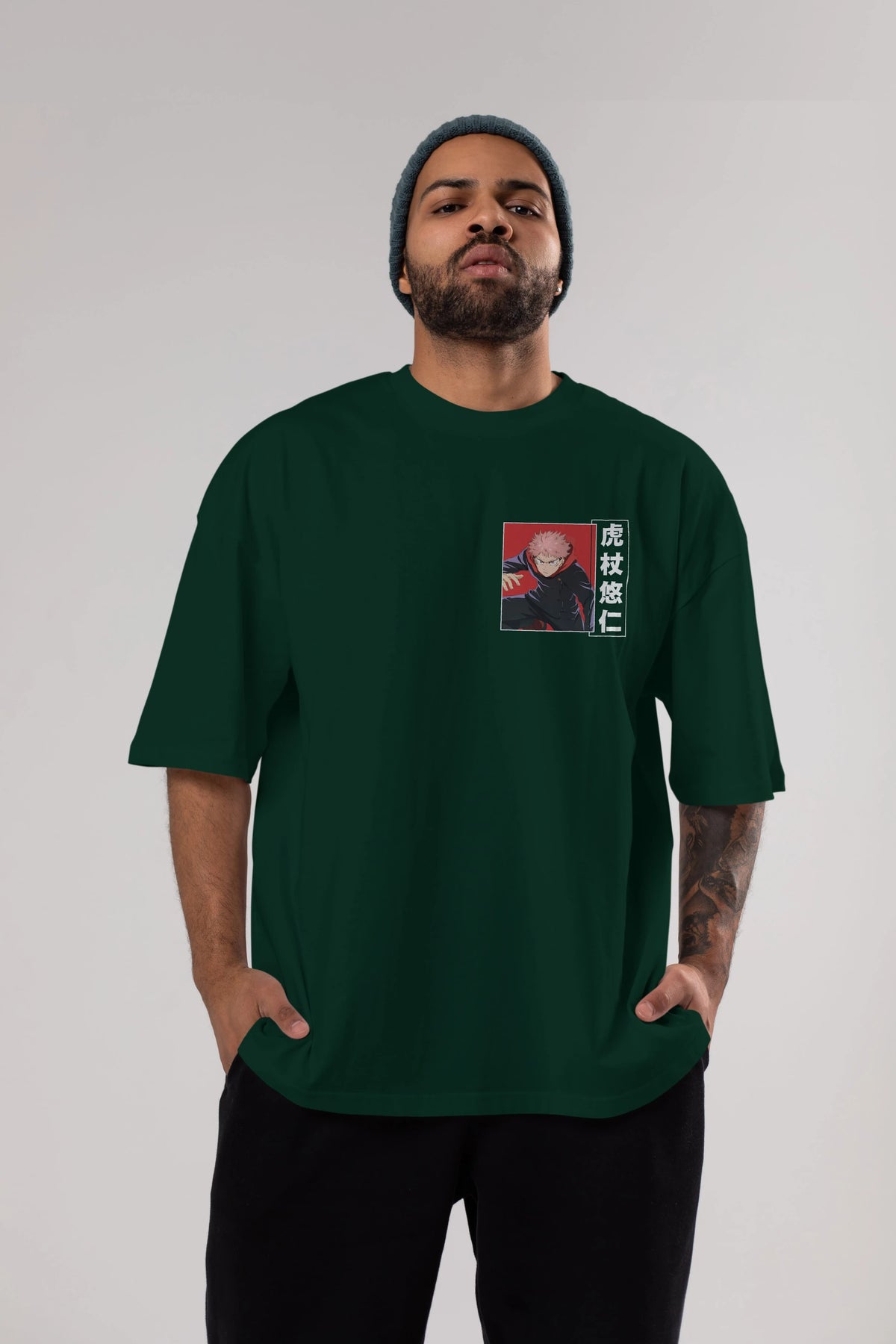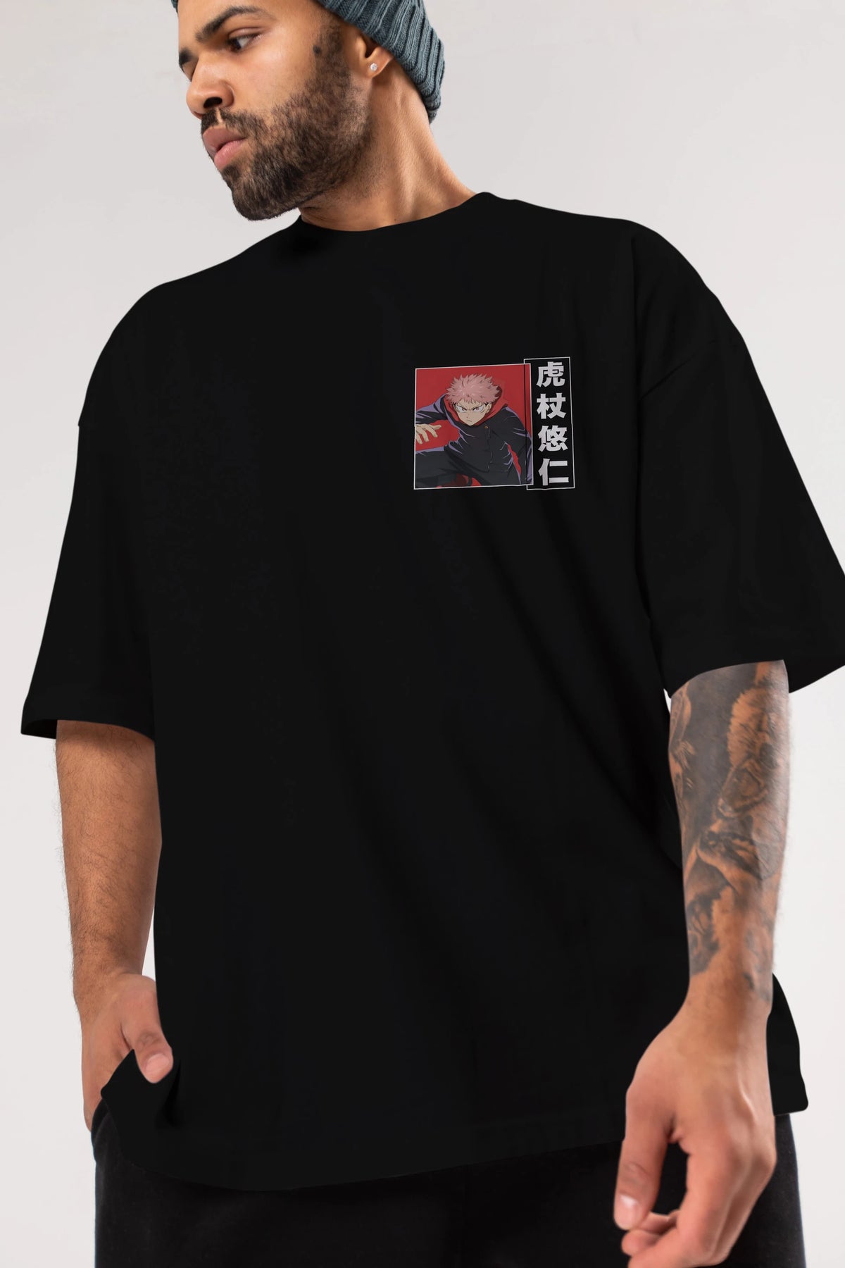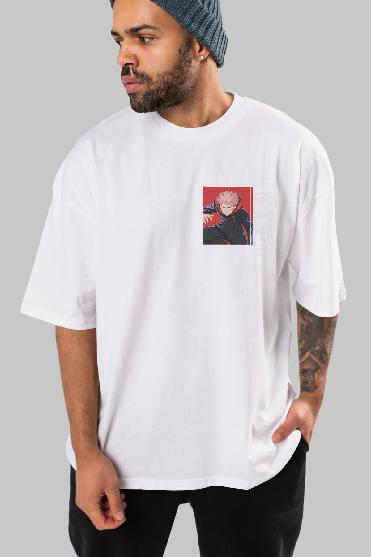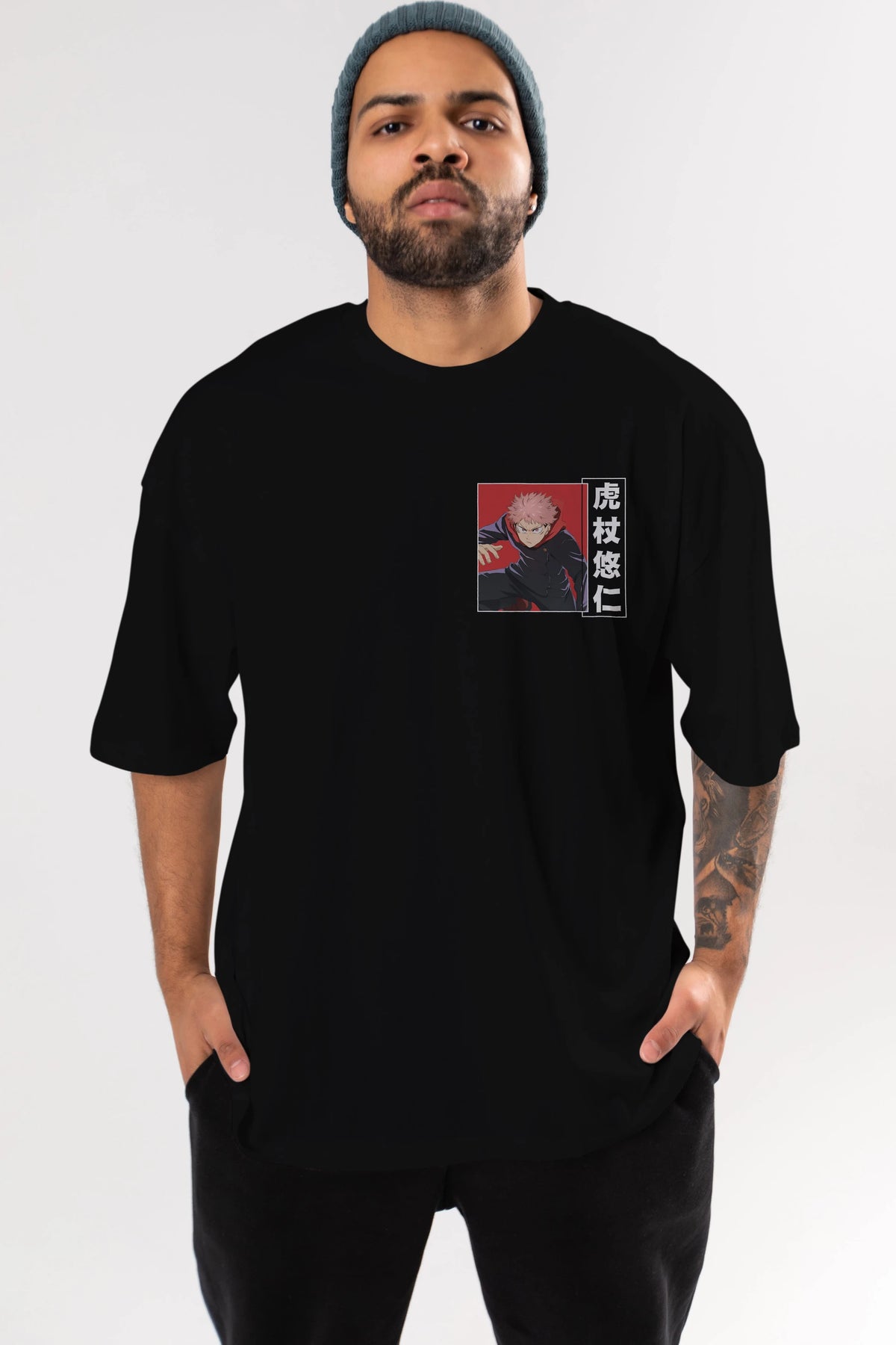 Yuuji Itadori 2 Ön Sol Baskılı Oversize t-shirt Erkek Kadın Unisex %100 Pamuk Bisiklet Yaka tişort
