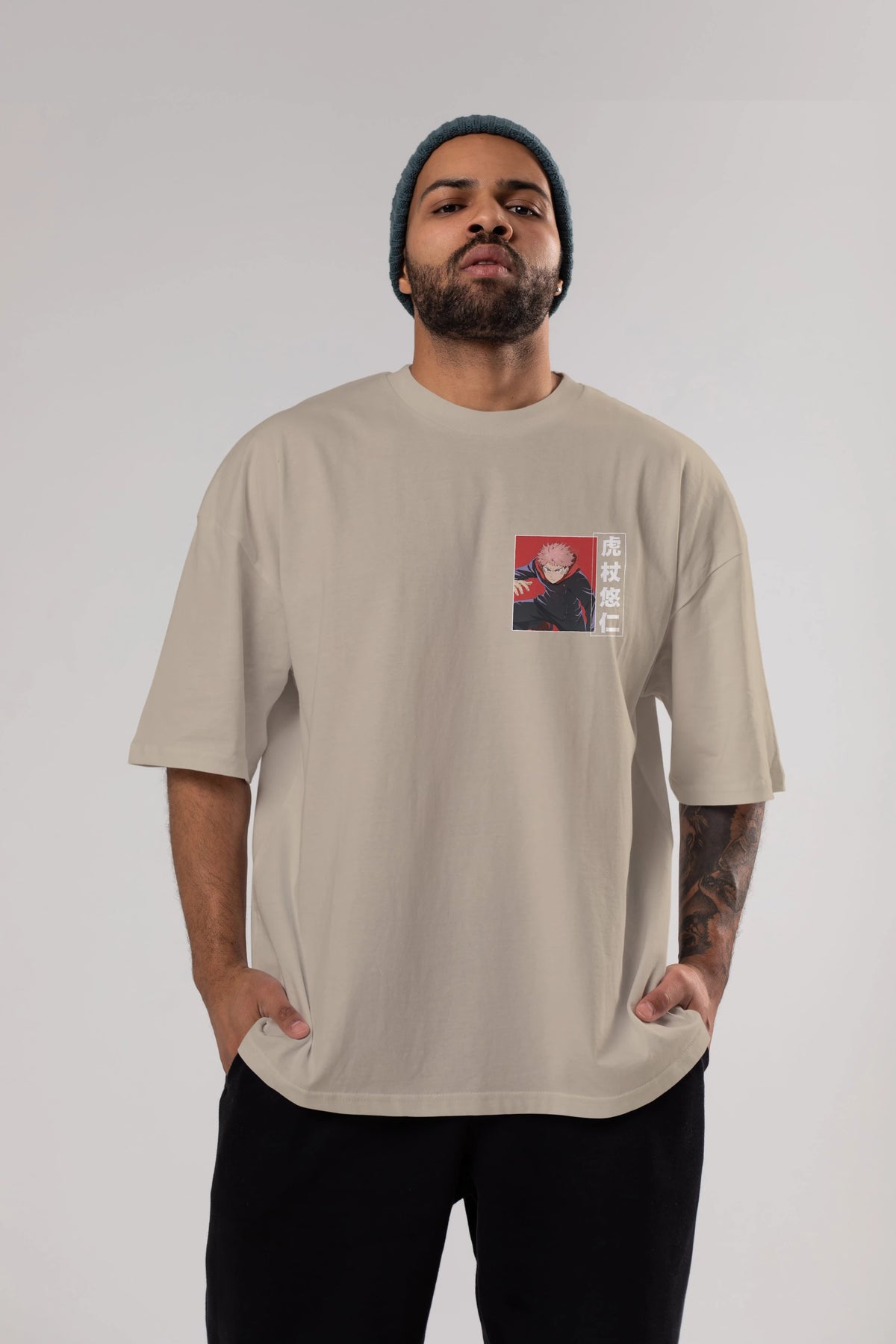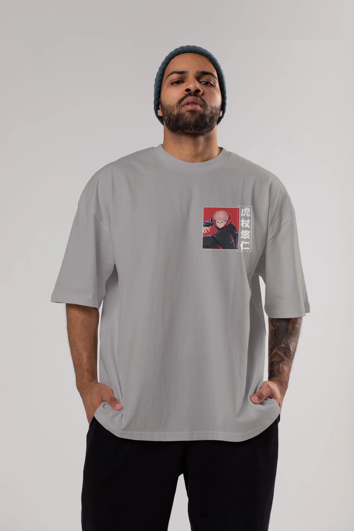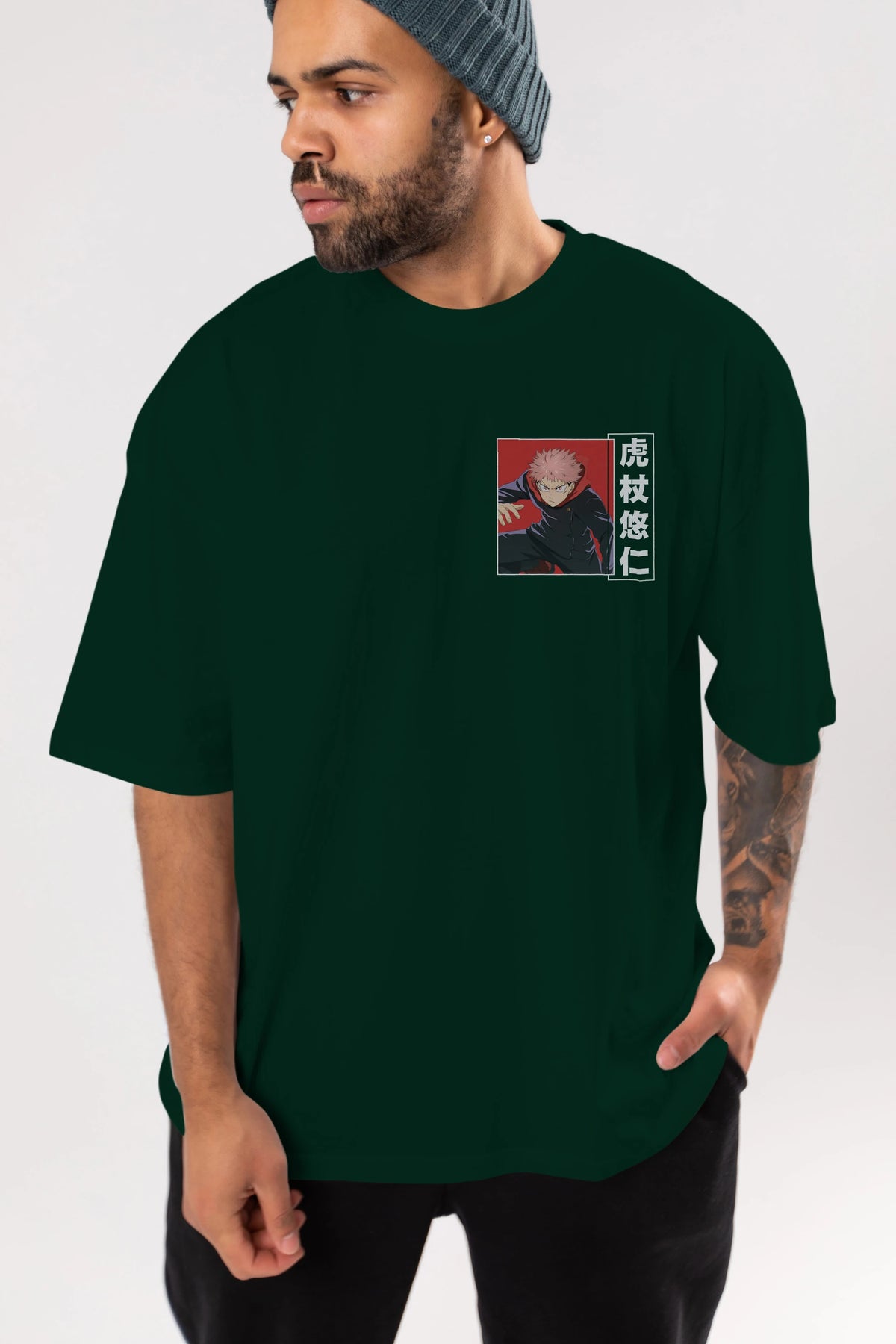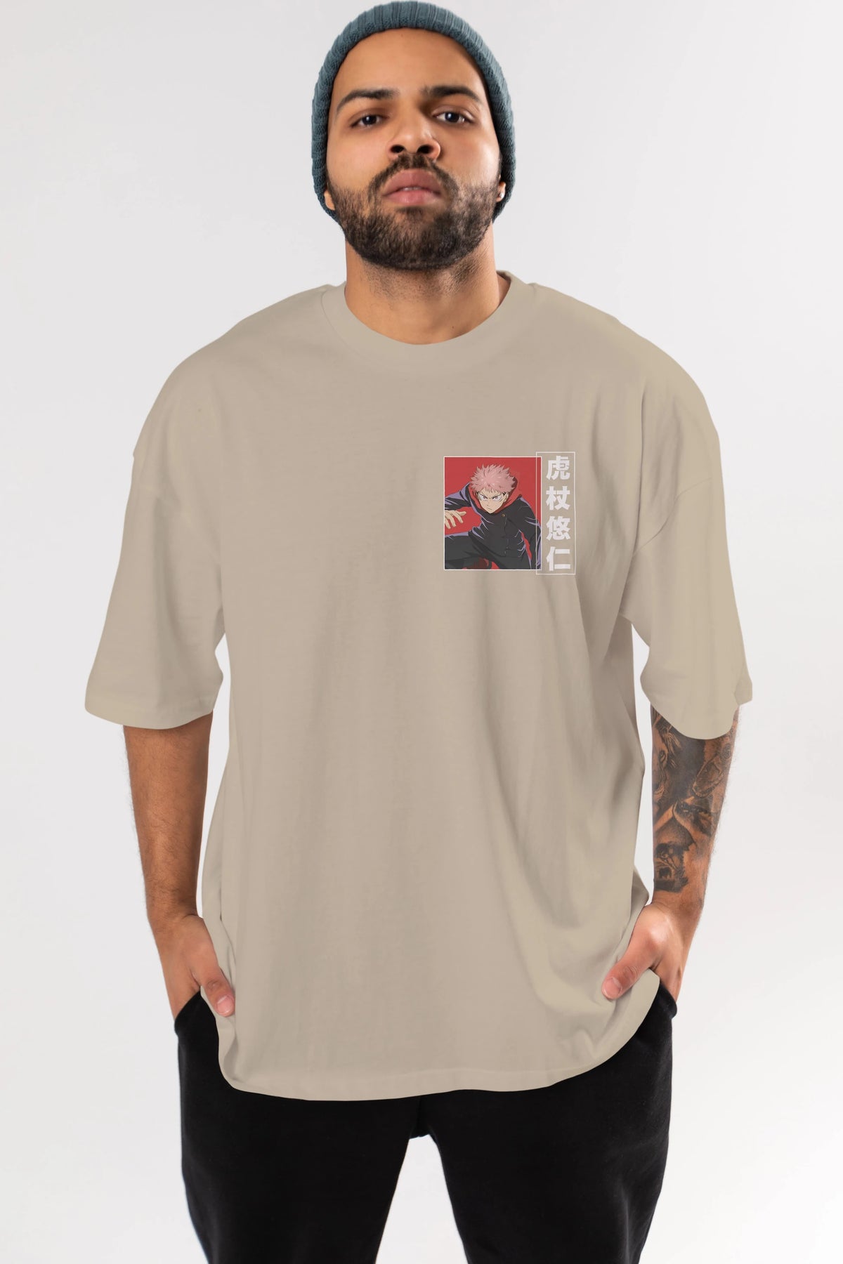 Yuuji Itadori 2 Ön Sol Baskılı Oversize t-shirt Erkek Kadın Unisex %100 Pamuk Bisiklet Yaka tişort
