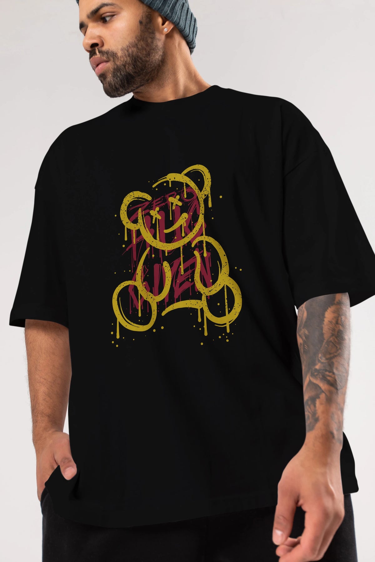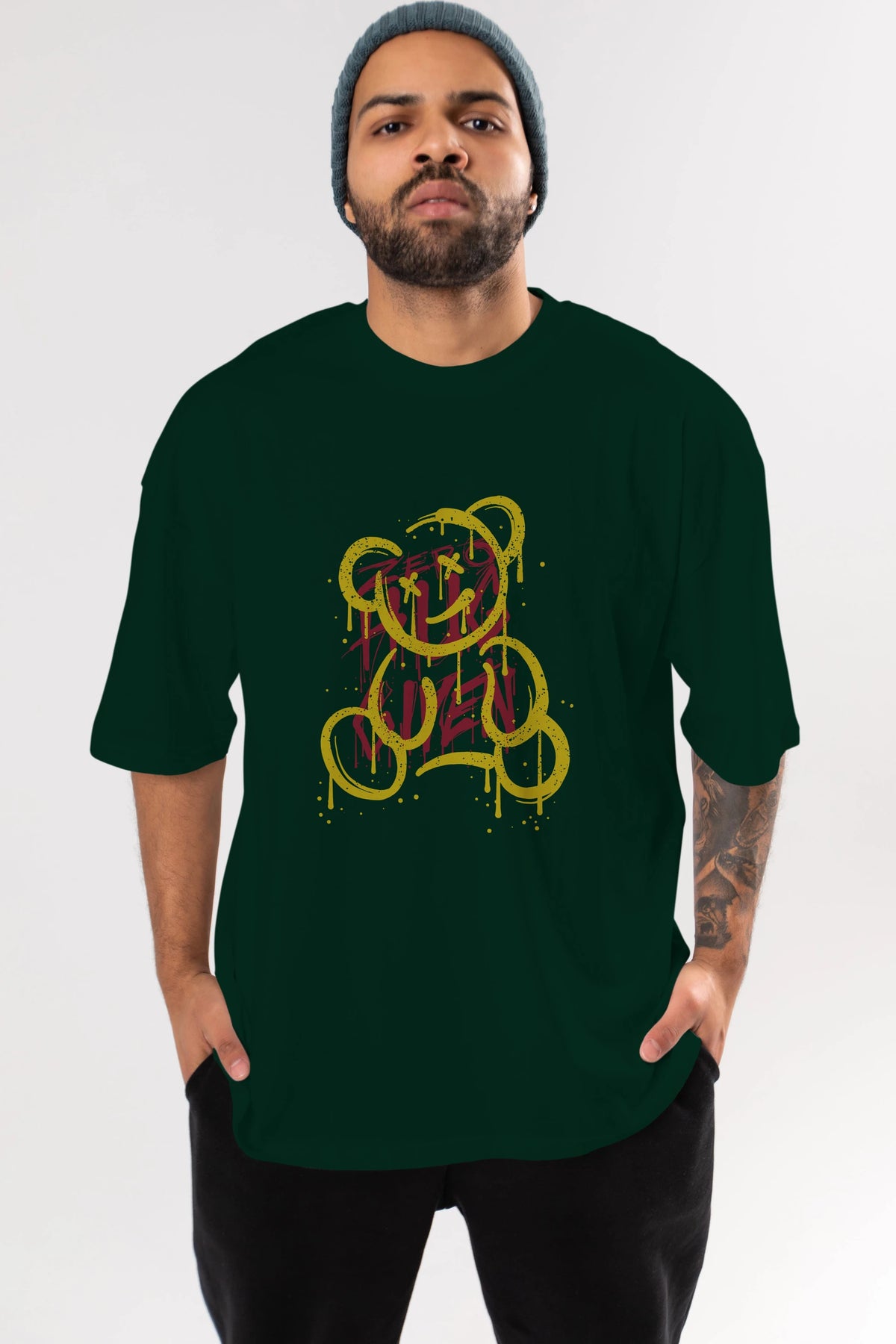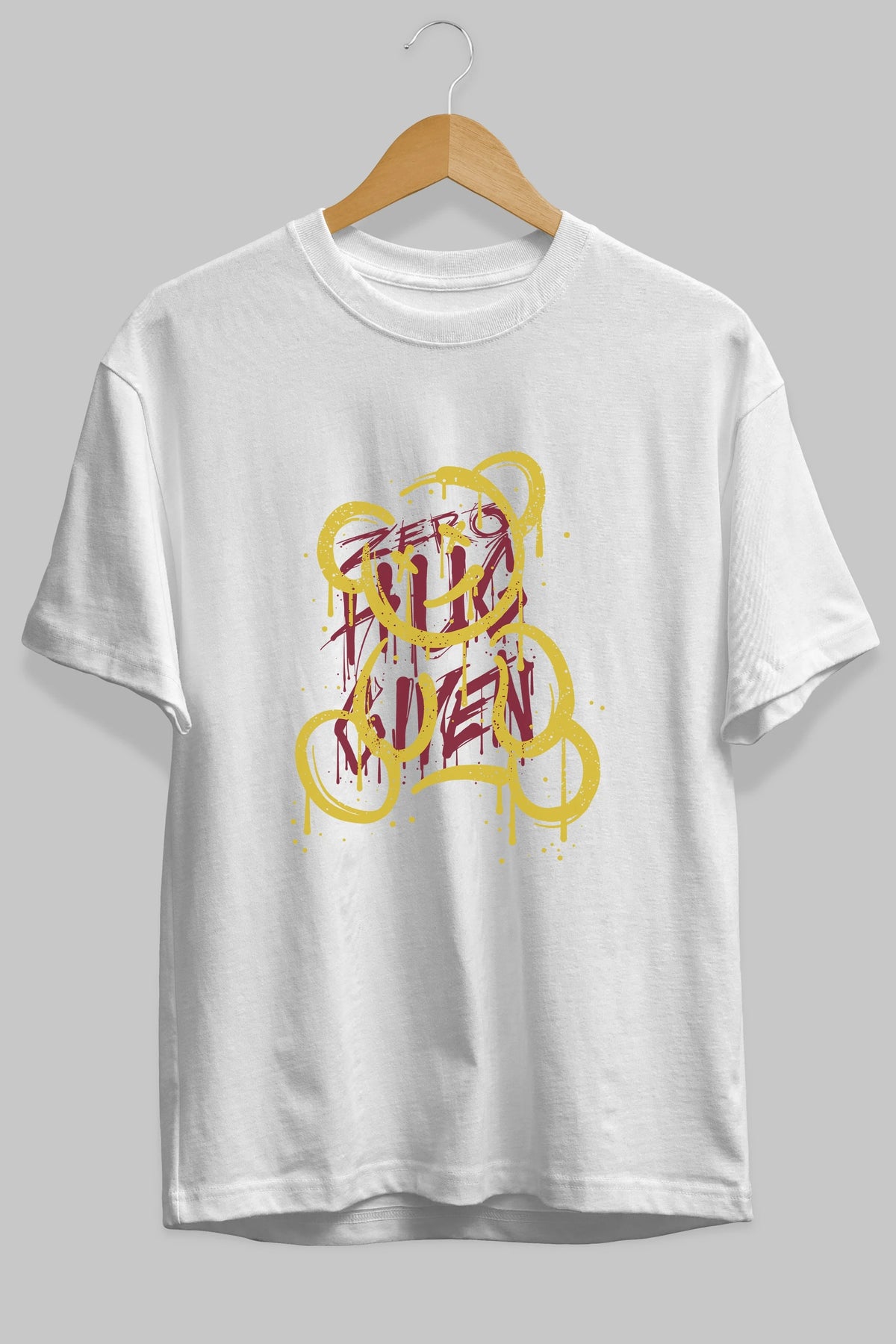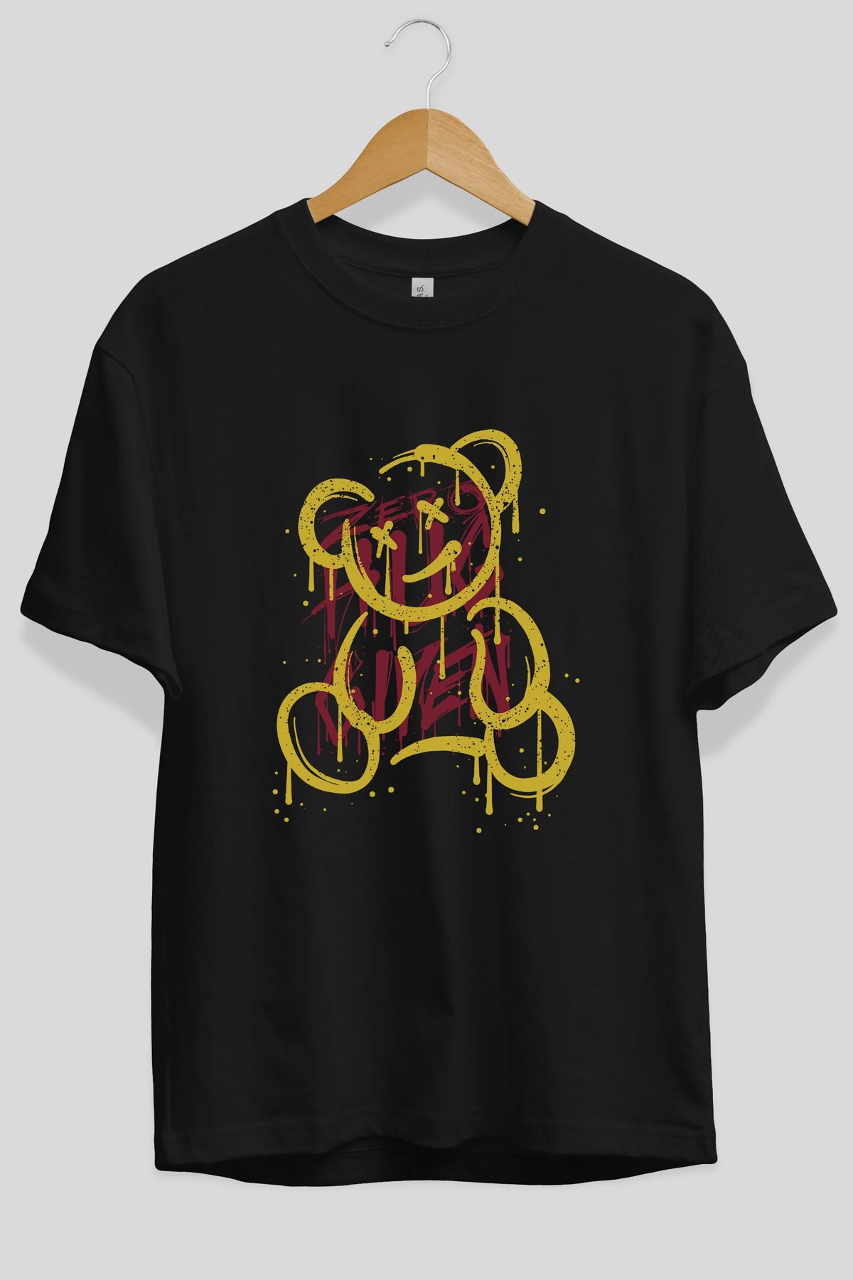 Zero Hug Bear Ön Baskılı Oversize t-shirt Erkek Kadın Unisex