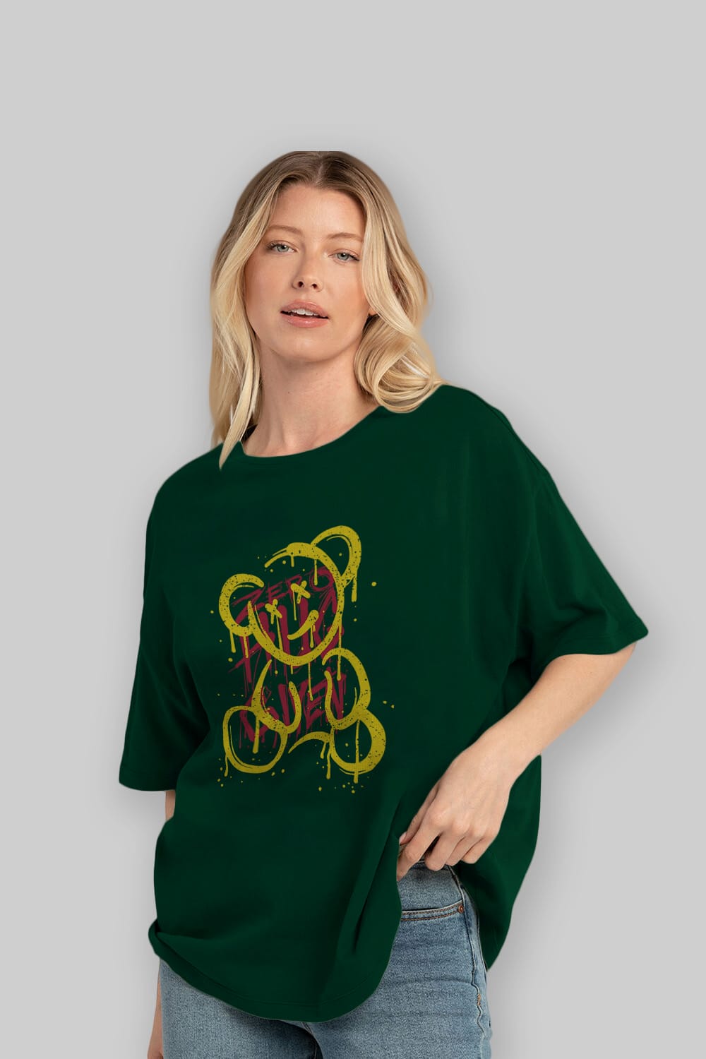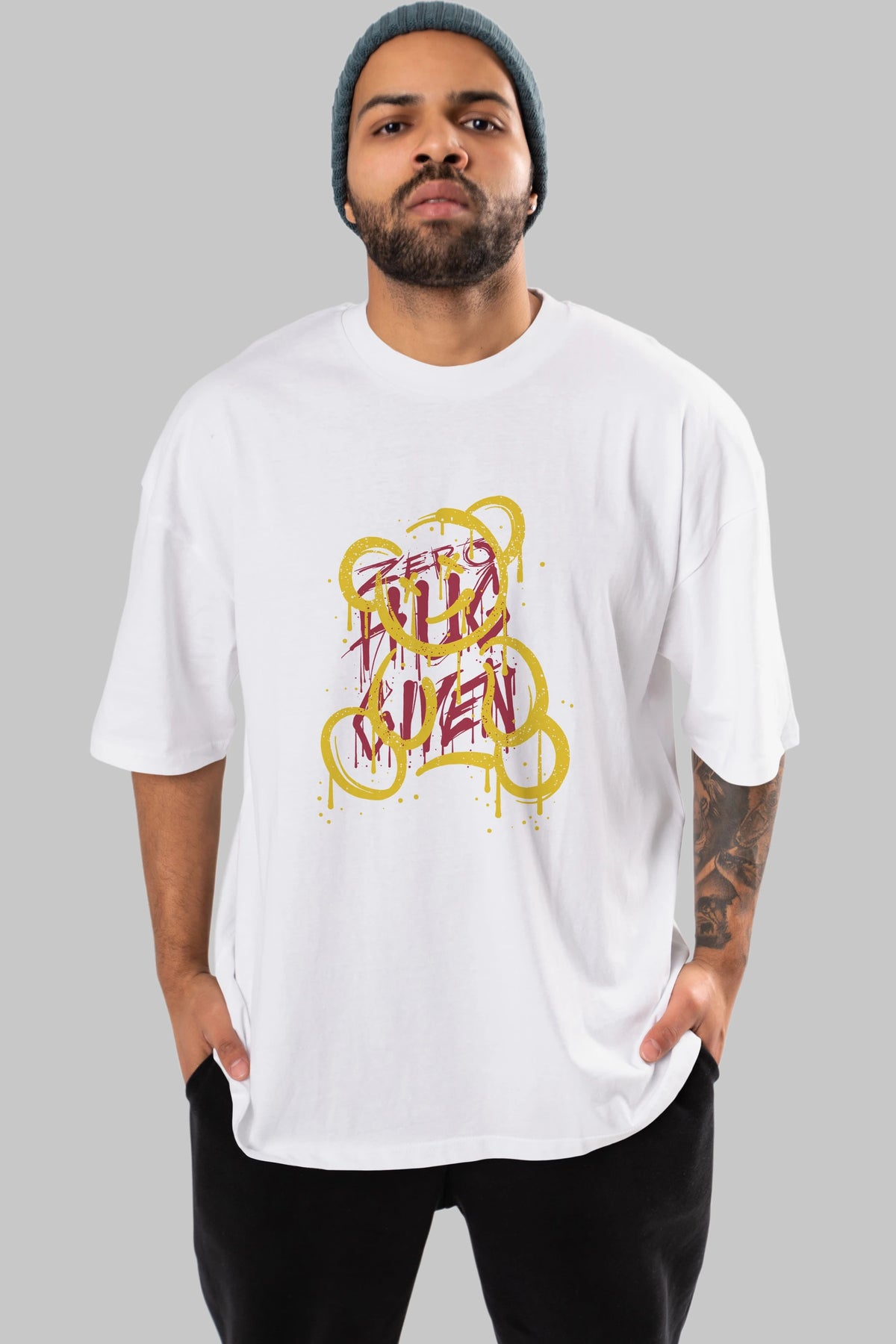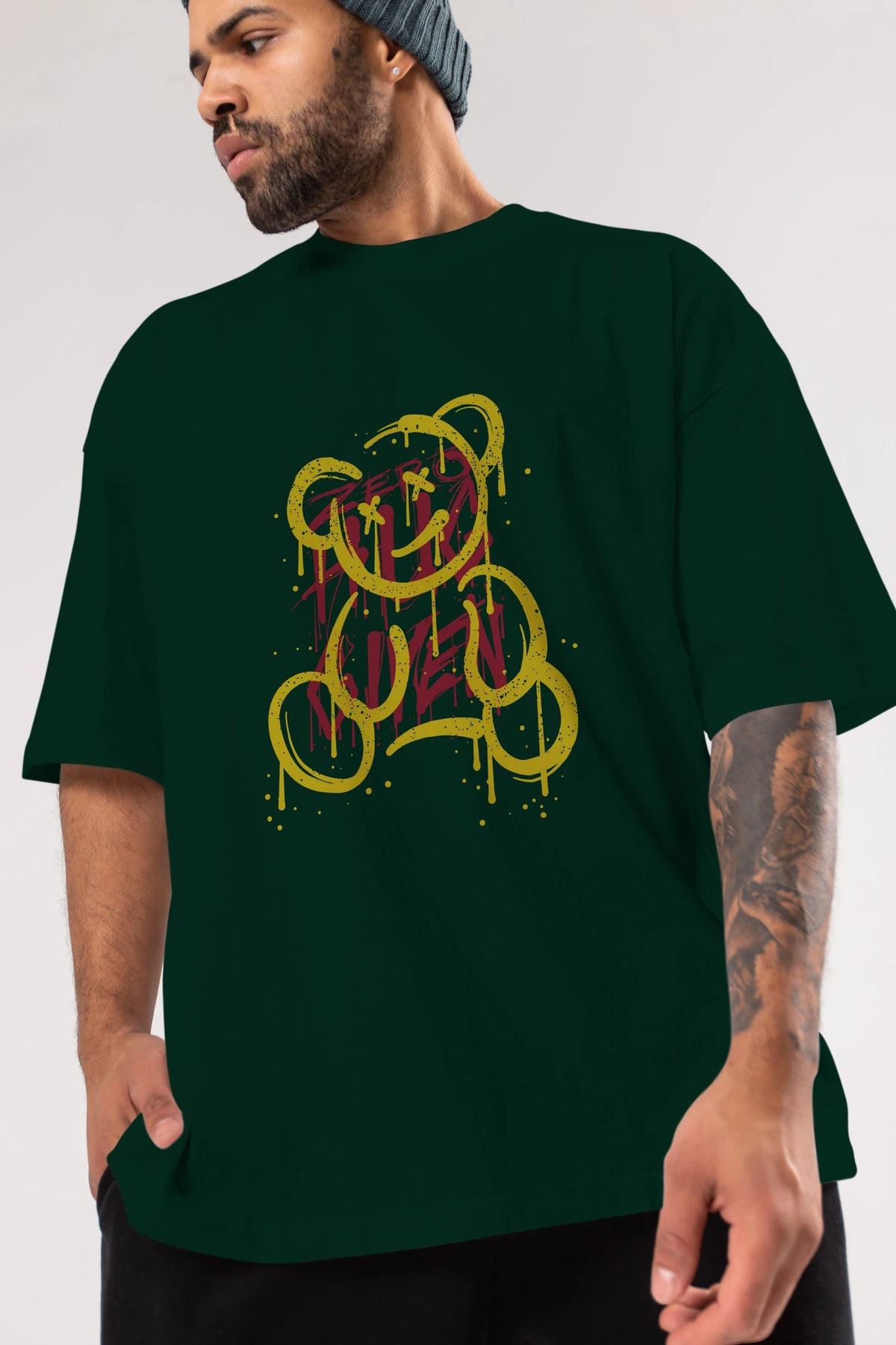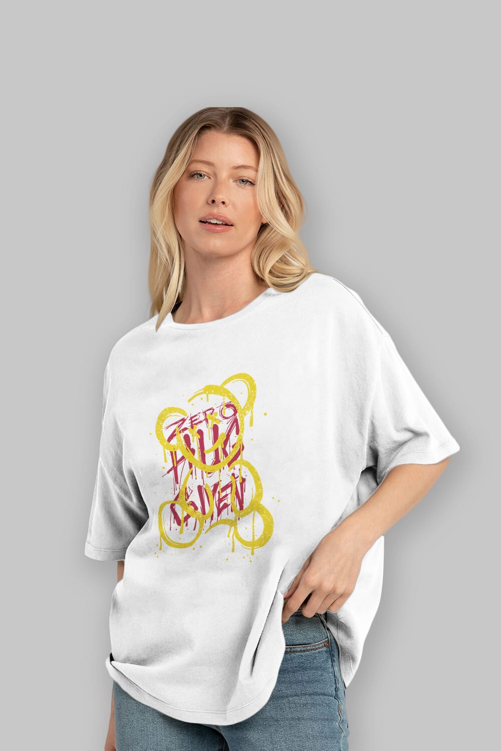 Zero Hug Bear Ön Baskılı Oversize t-shirt Erkek Kadın Unisex