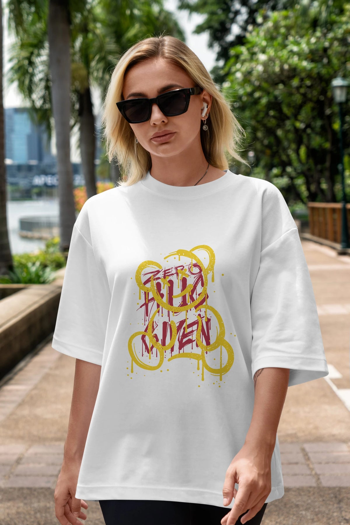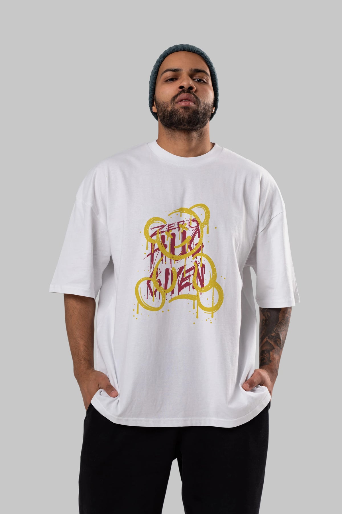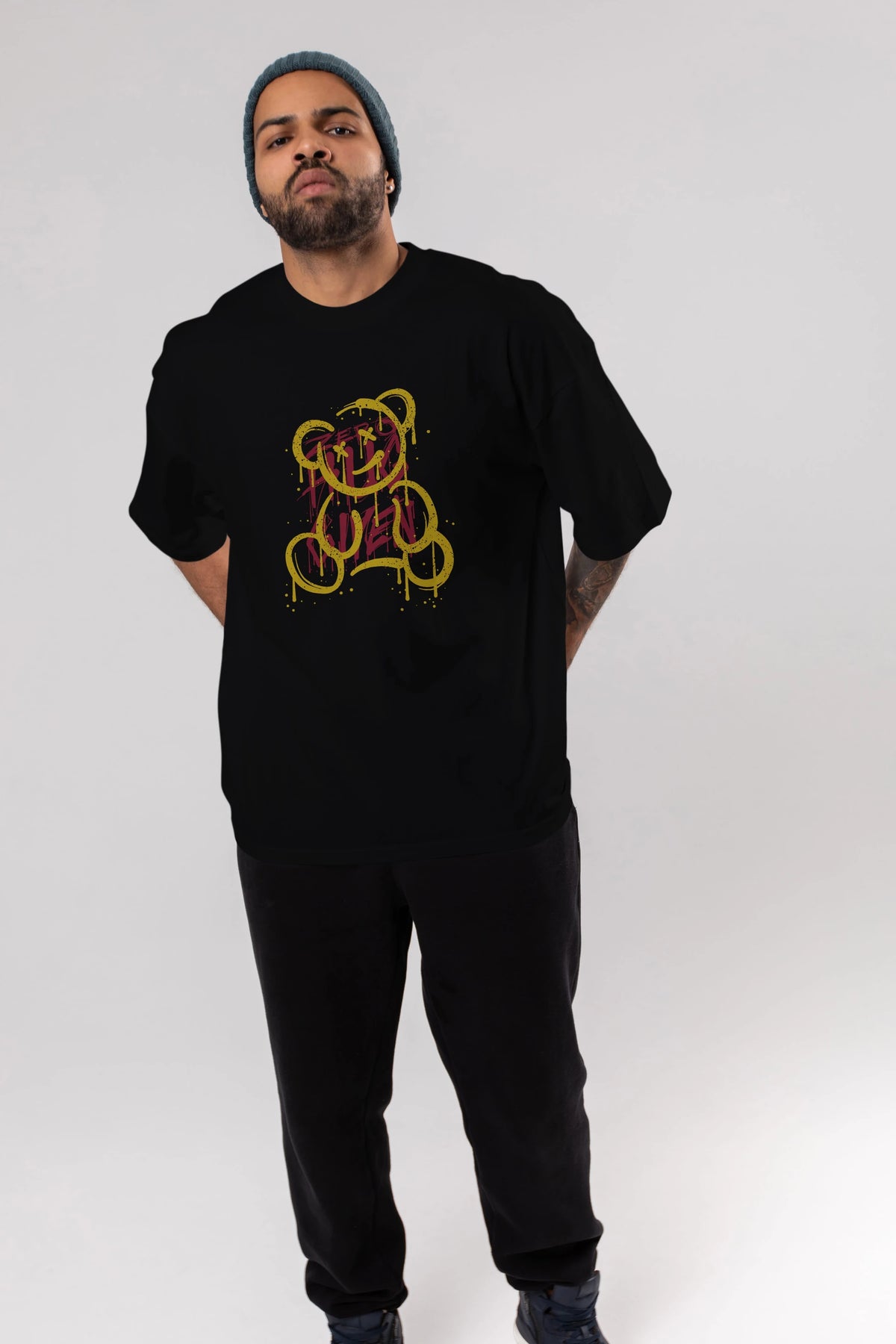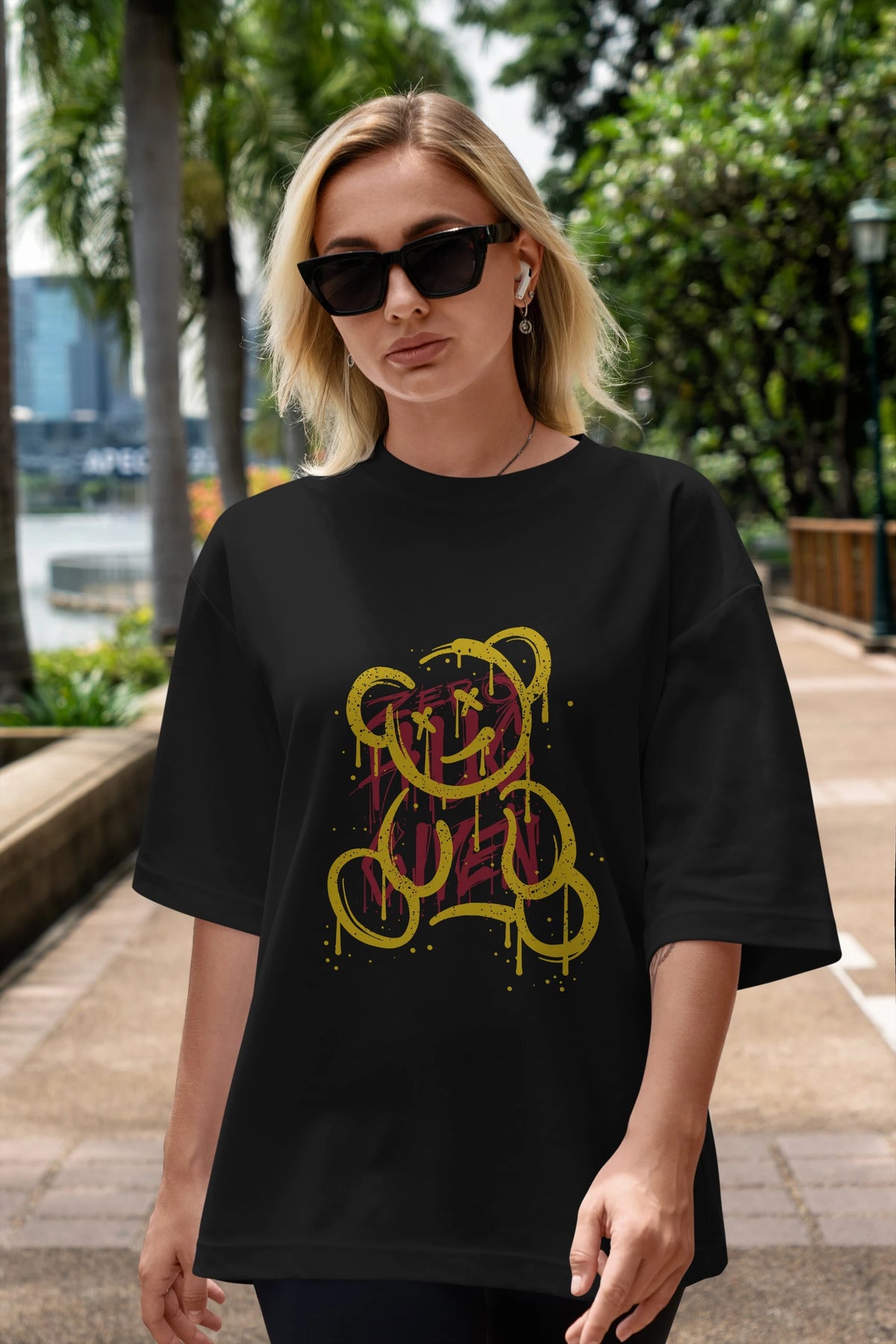 Zero Hug Bear Ön Baskılı Oversize t-shirt Erkek Kadın Unisex