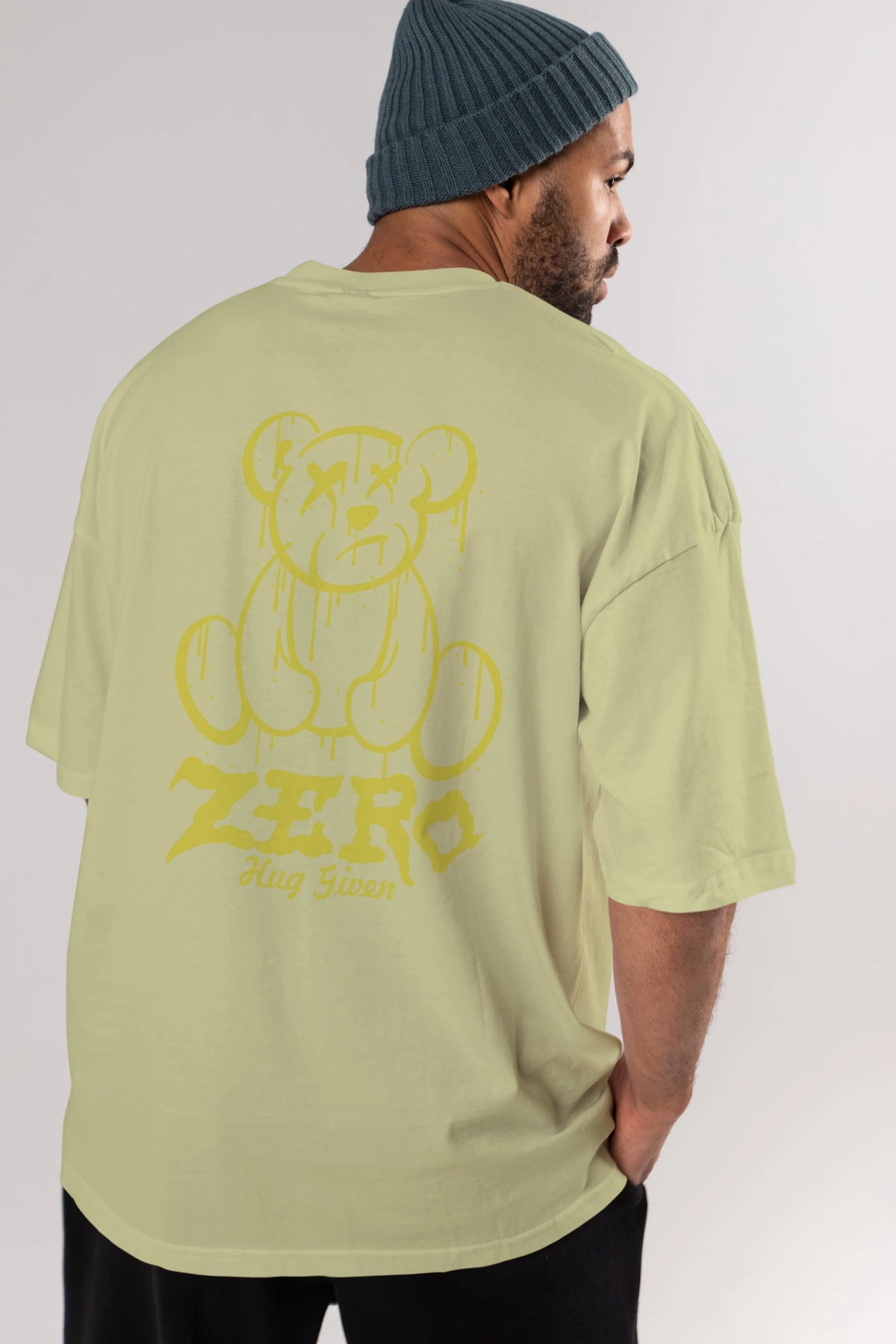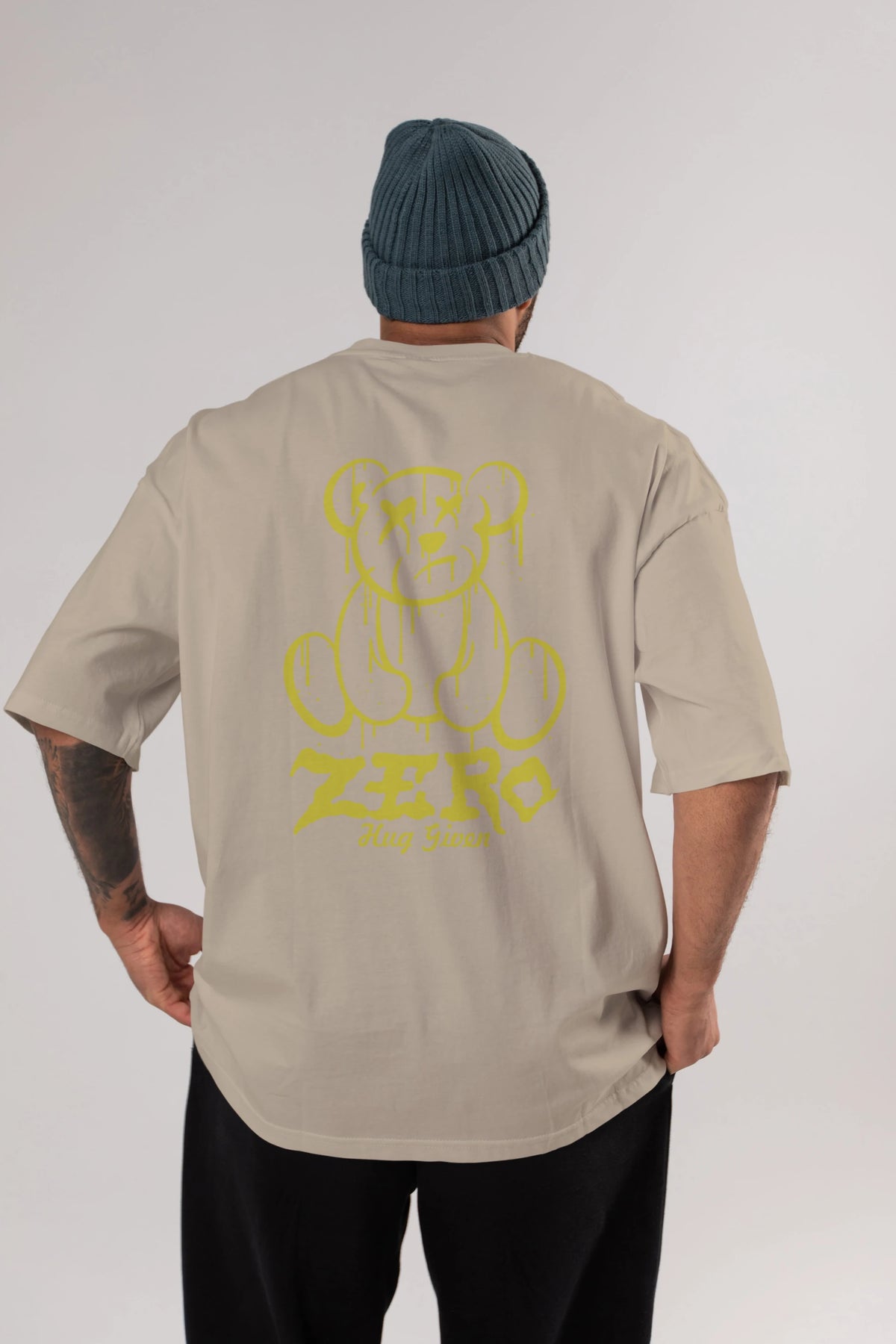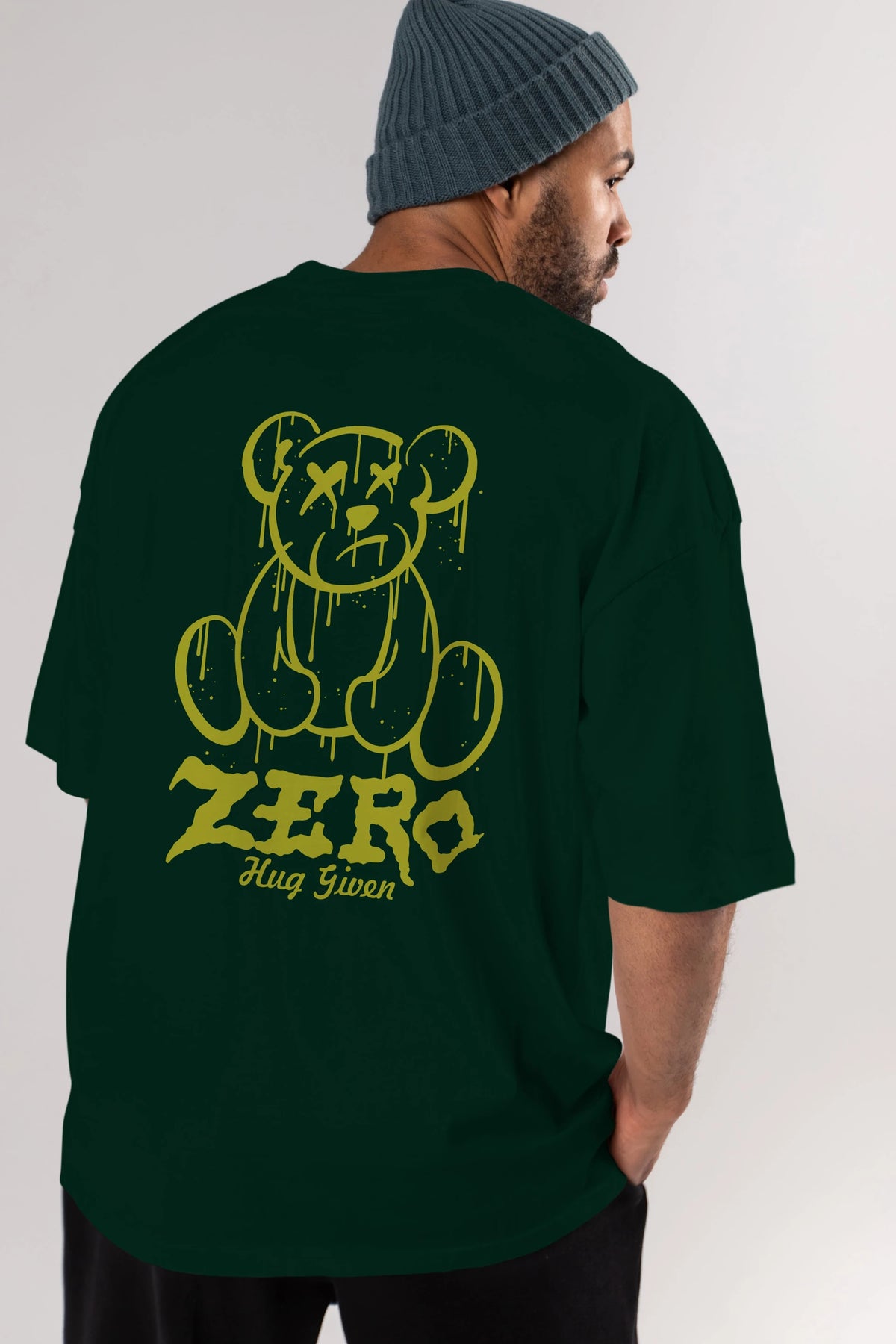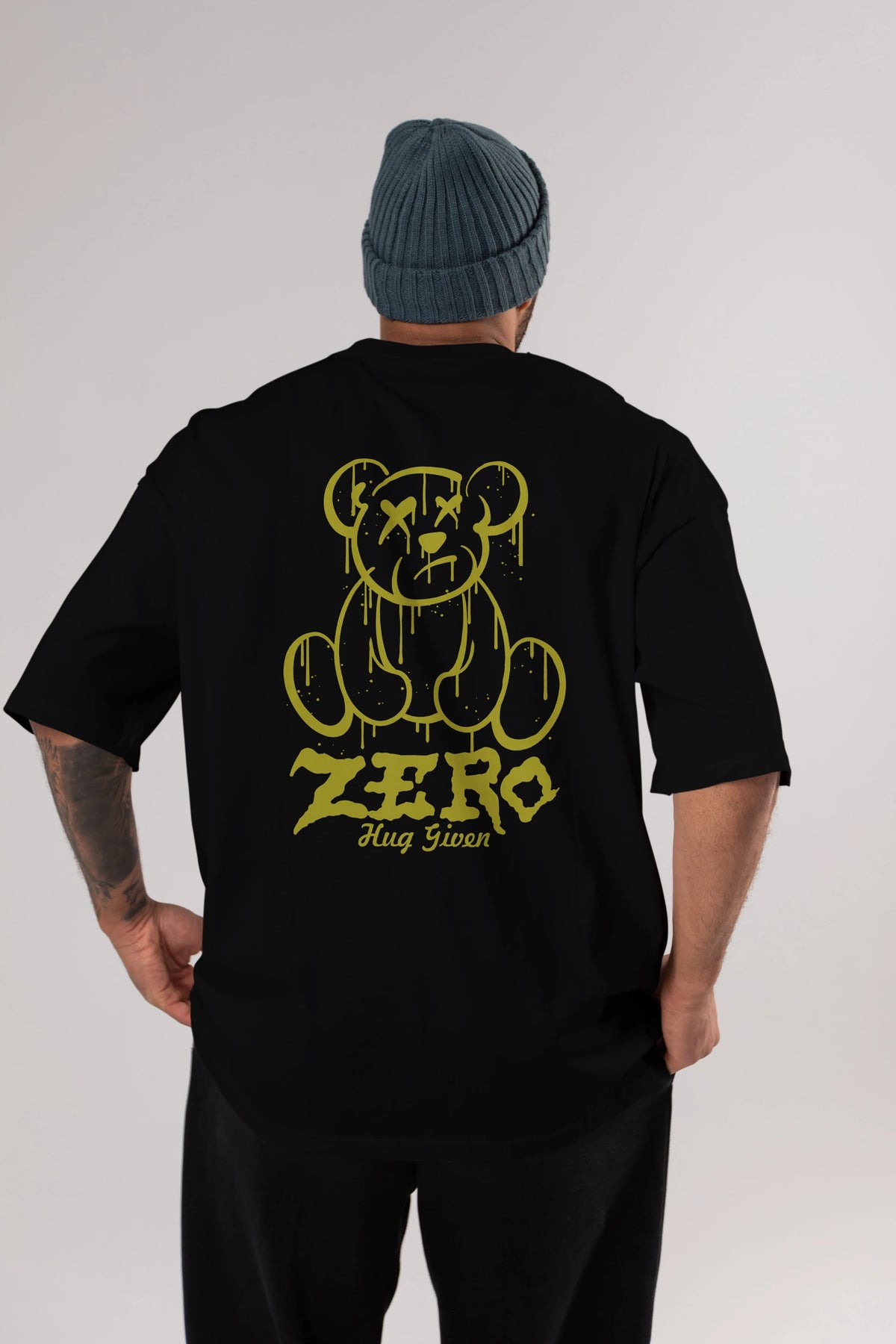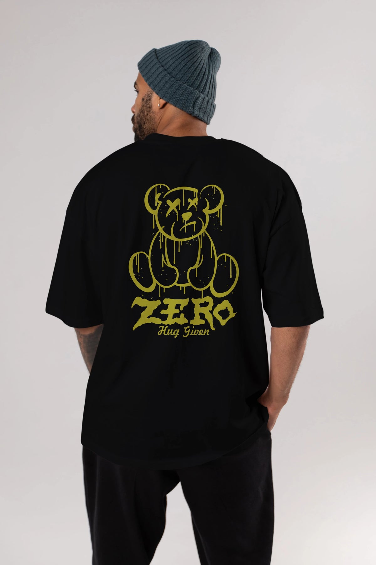 Zero Hug Given Bear Arka Baskılı Oversize t-shirt Erkek Kadın Unisex