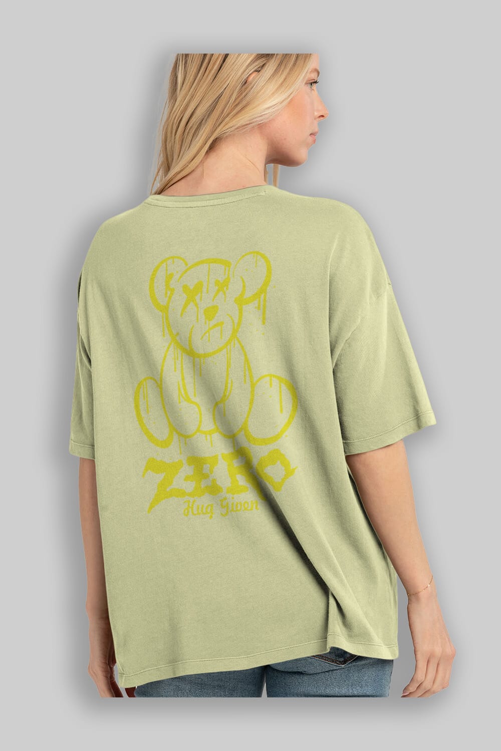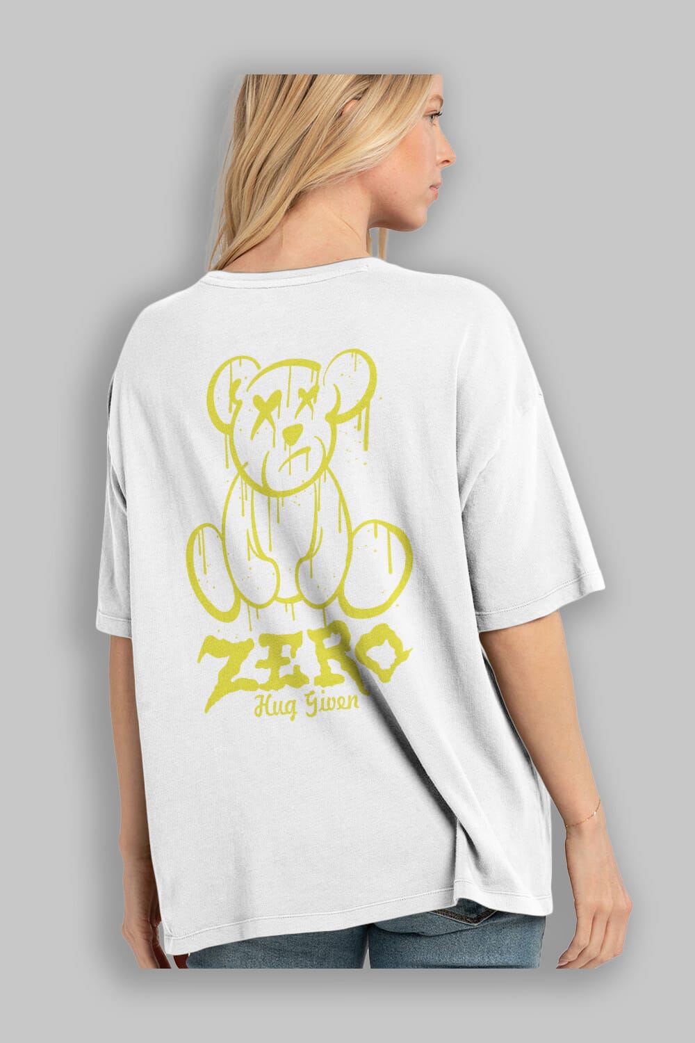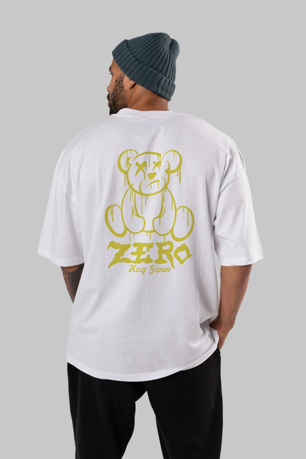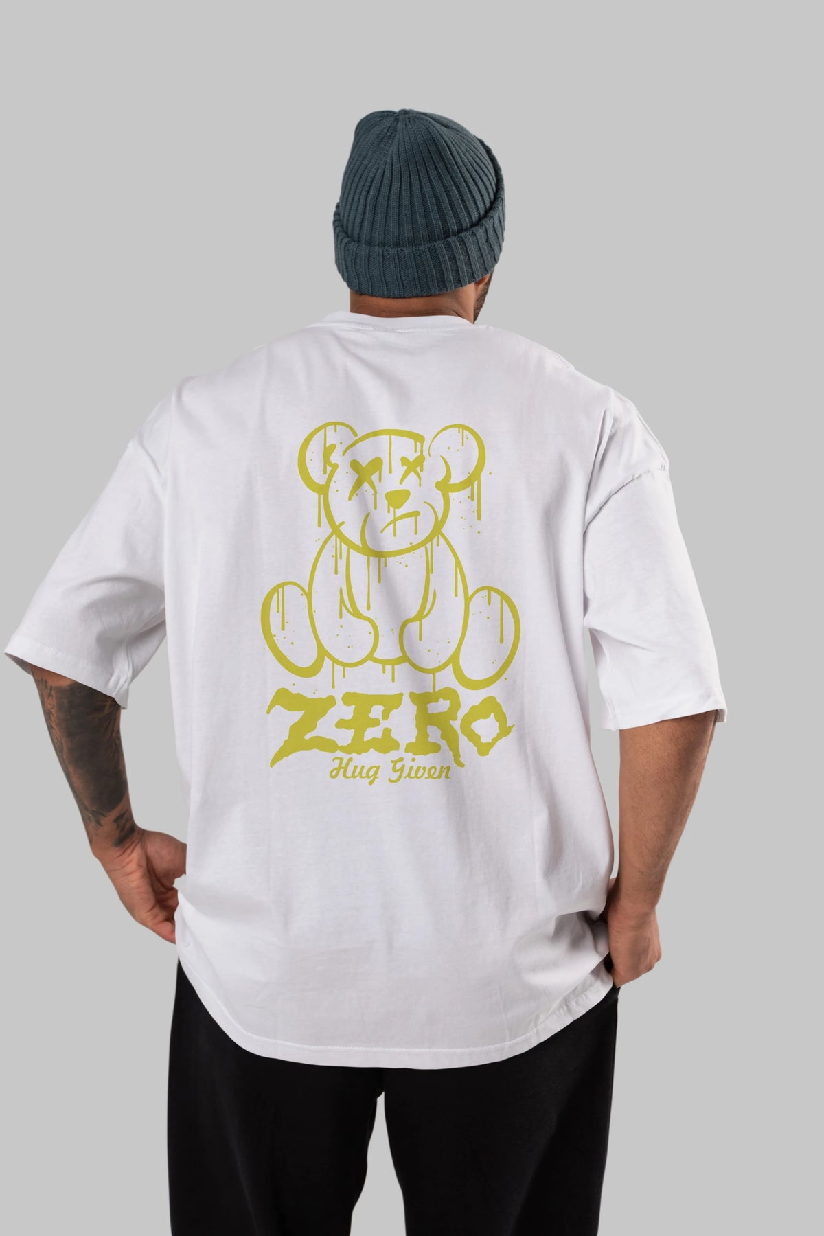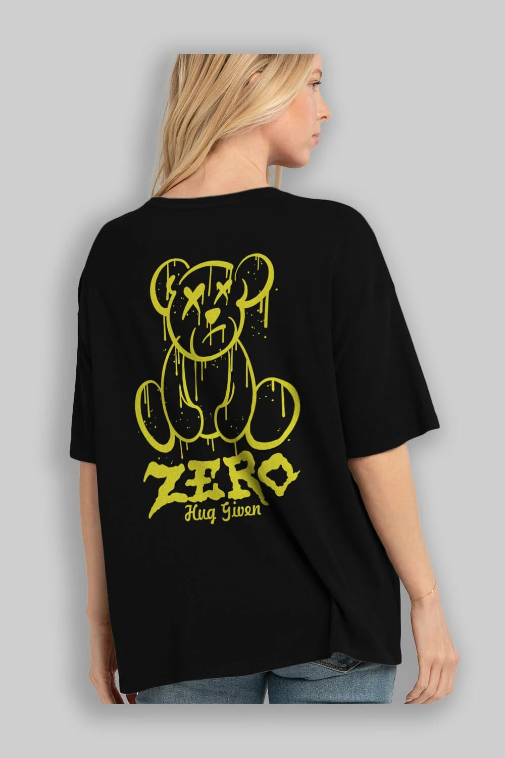 Zero Hug Given Bear Arka Baskılı Oversize t-shirt Erkek Kadın Unisex