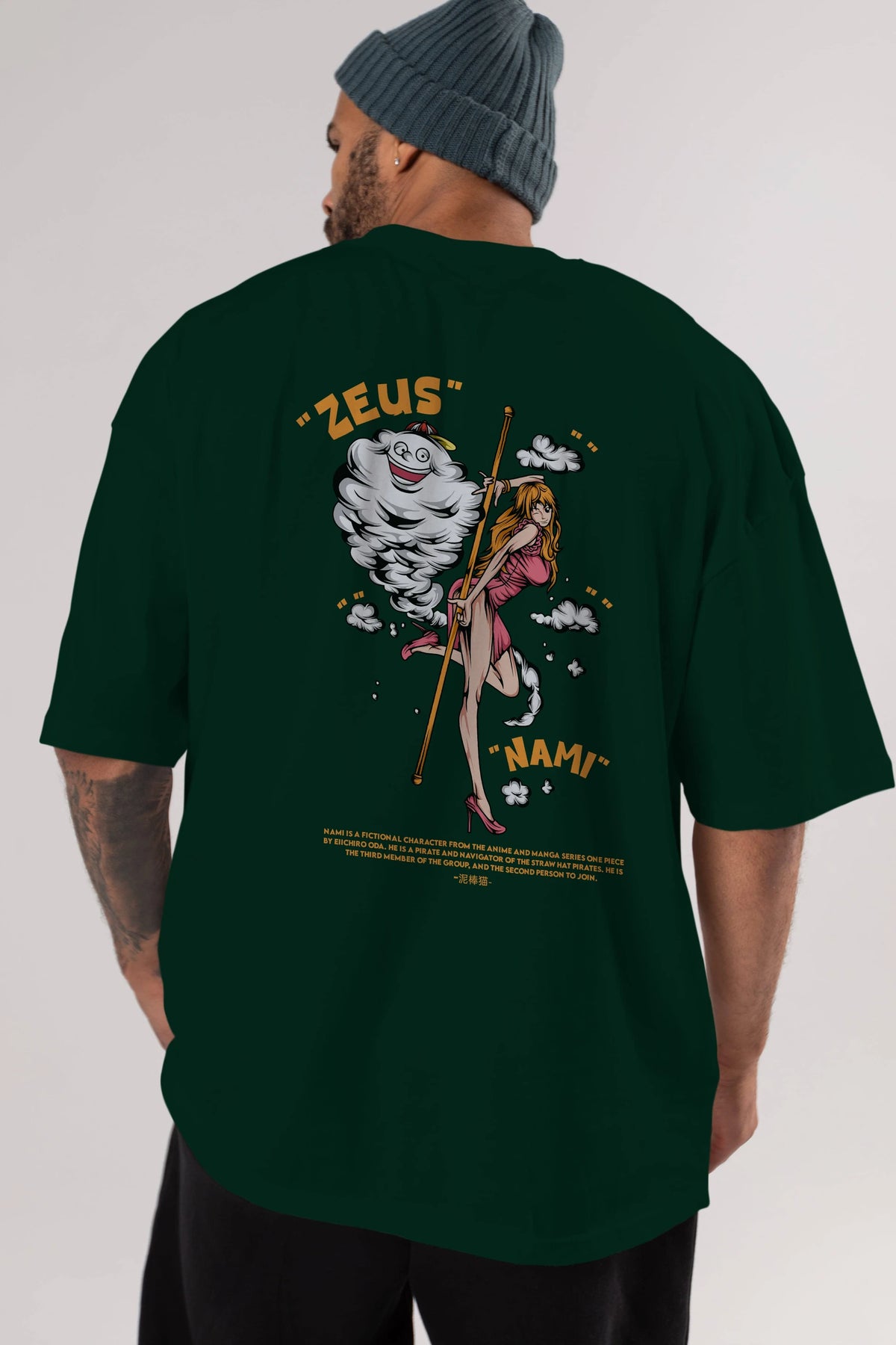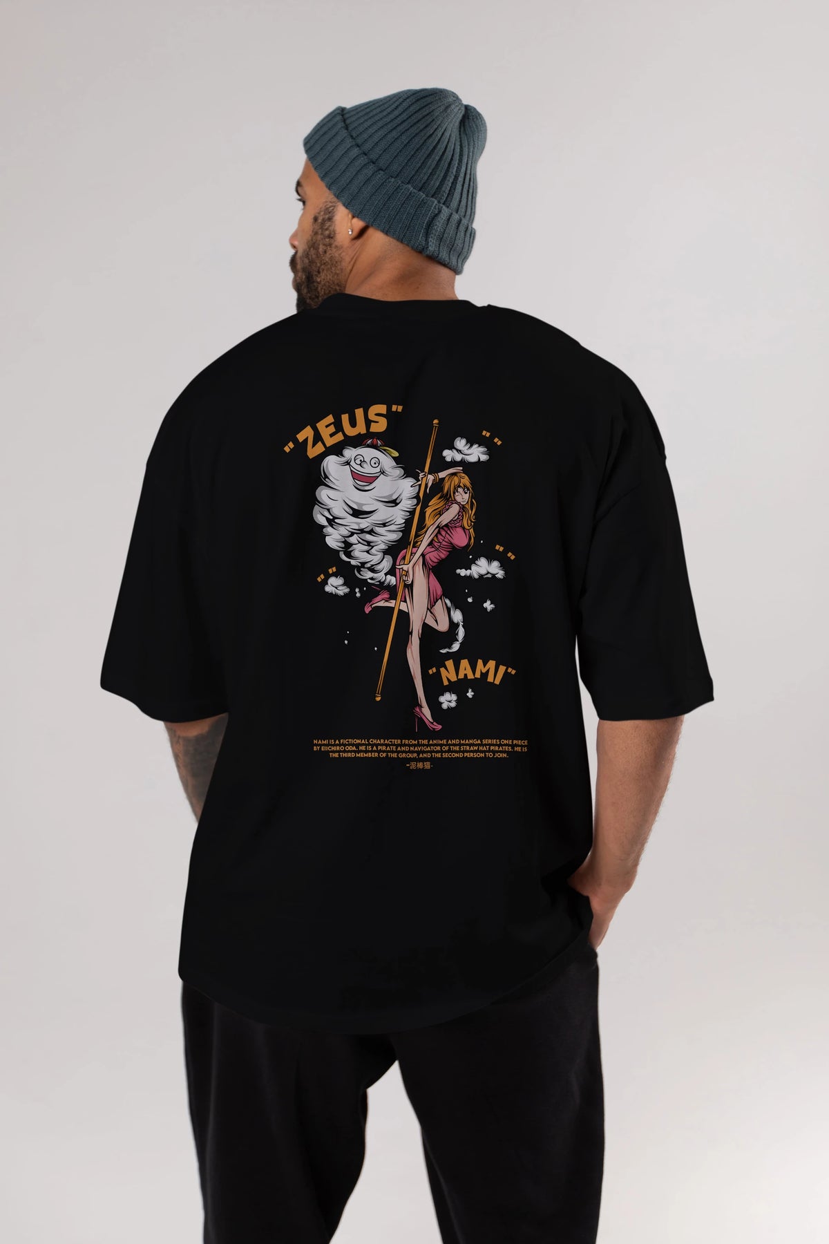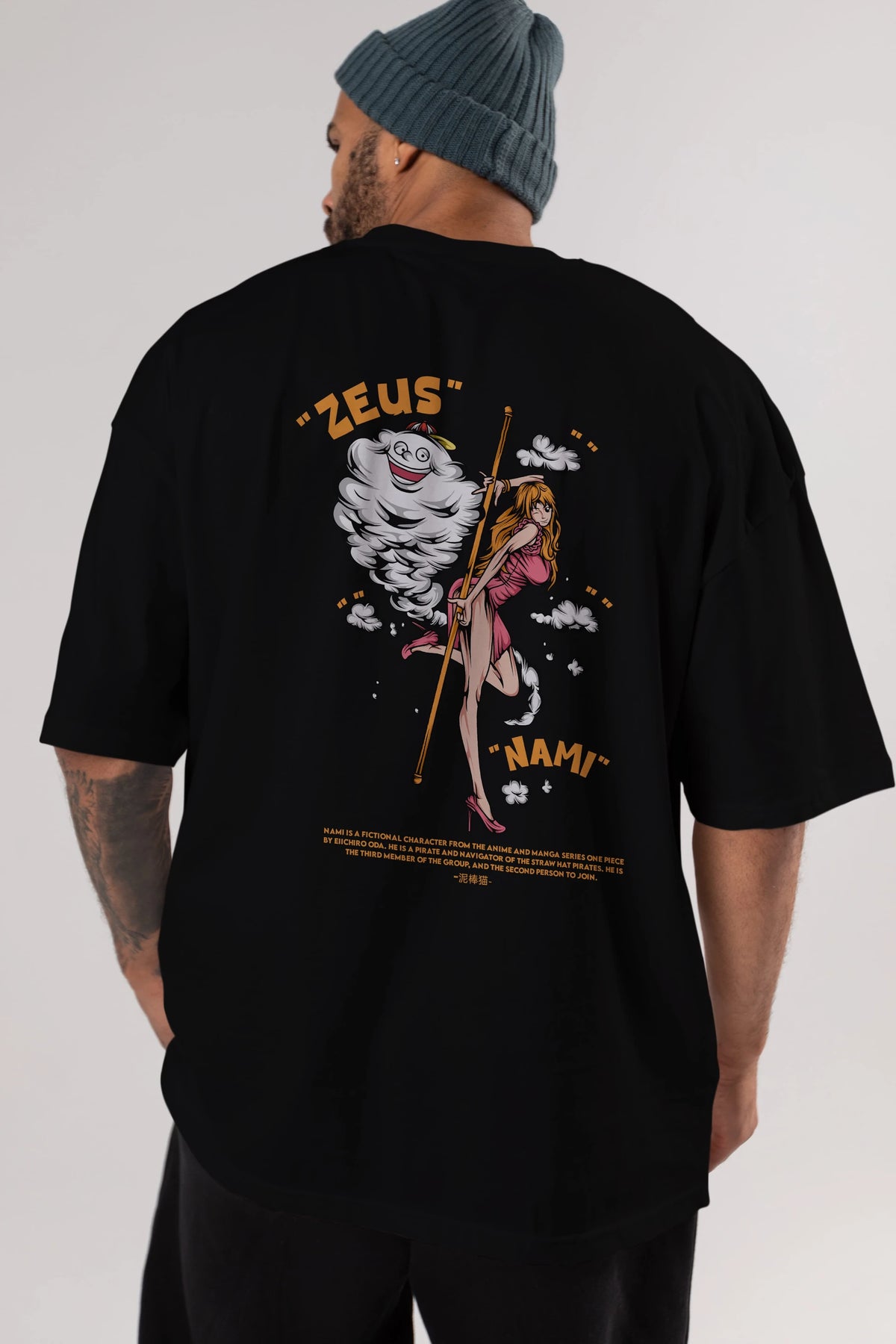 Zeus Nami Anime Arka Baskılı Oversize t-shirt Erkek Kadın Unisex