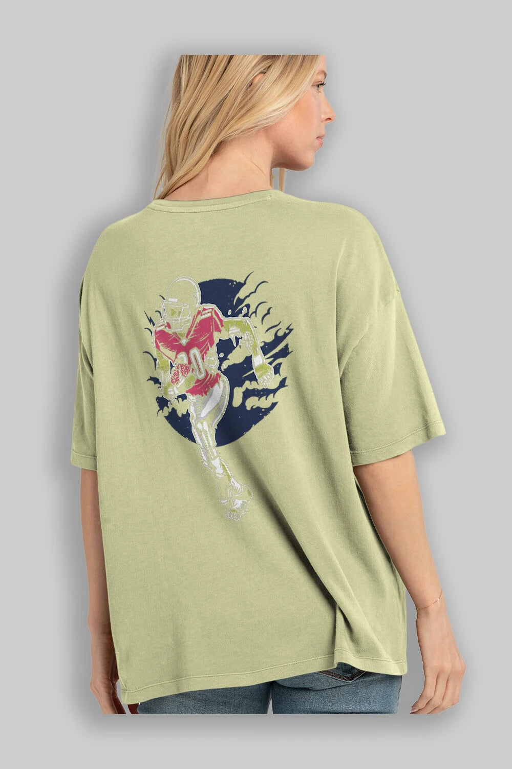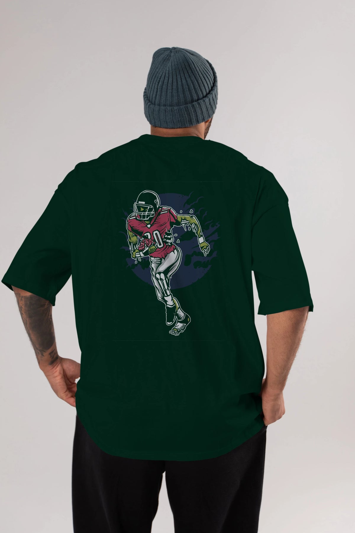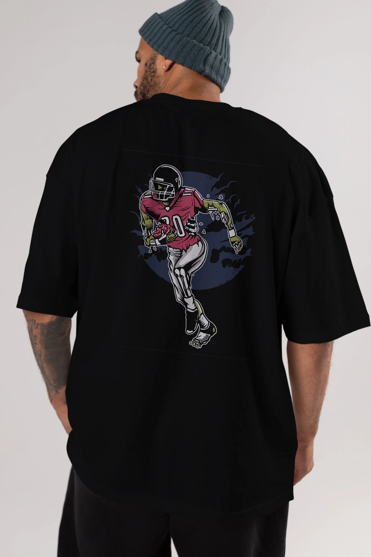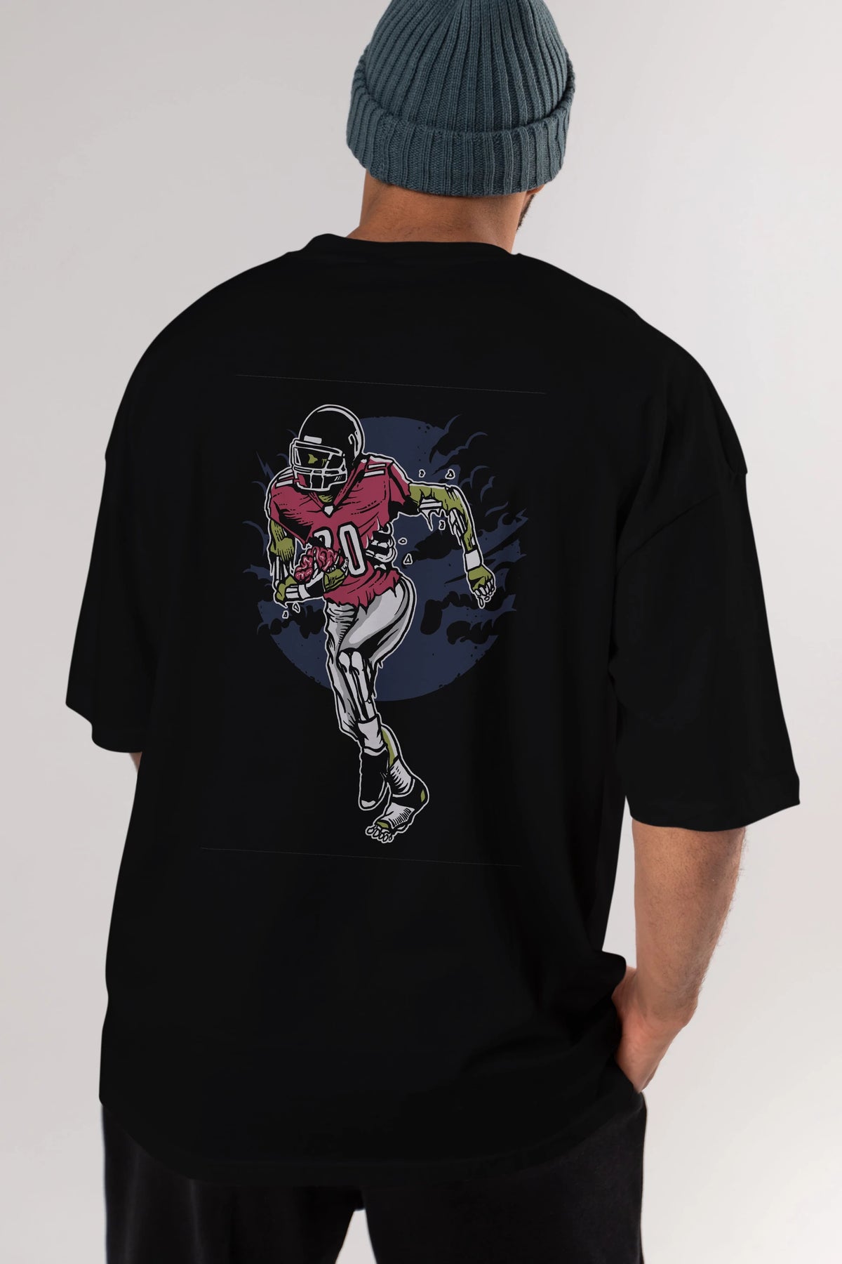 Zombie Football Arka Baskılı Oversize t-shirt Erkek Kadın Unisex %100 Pamuk