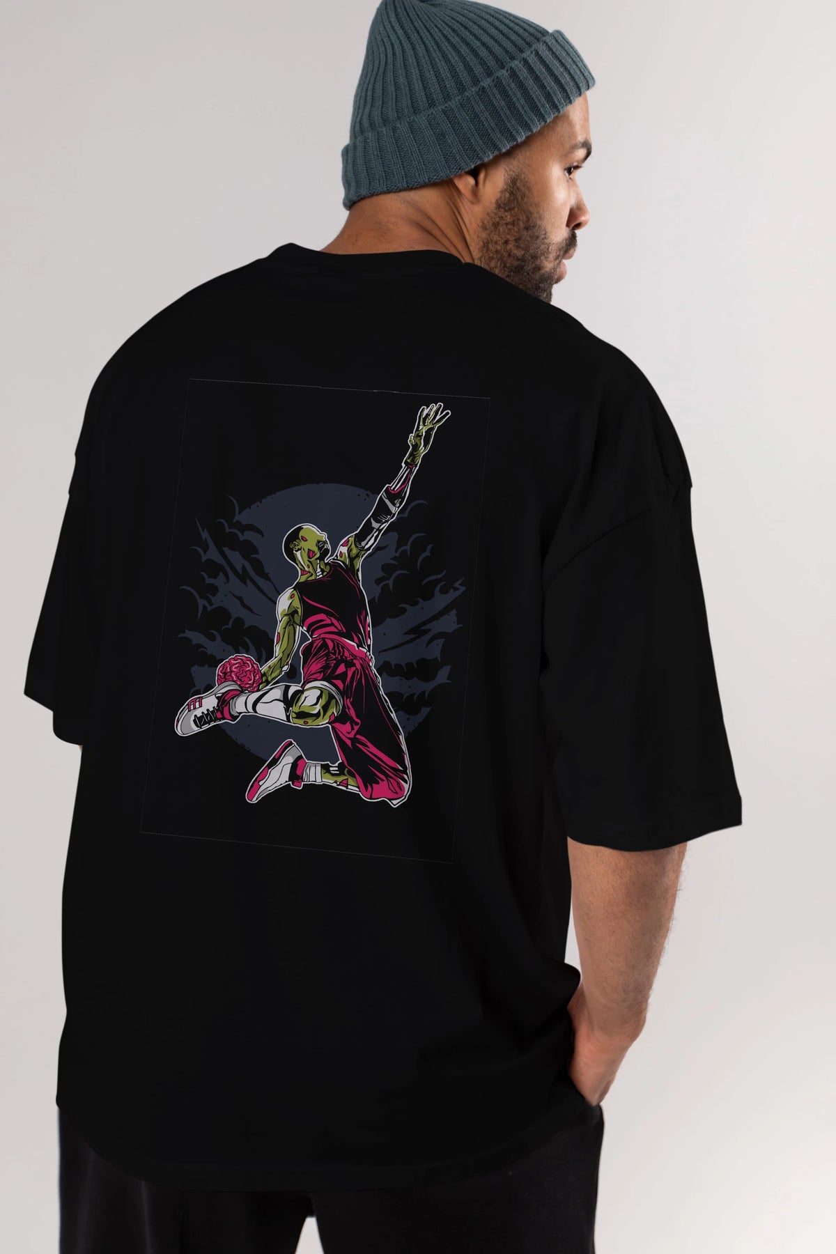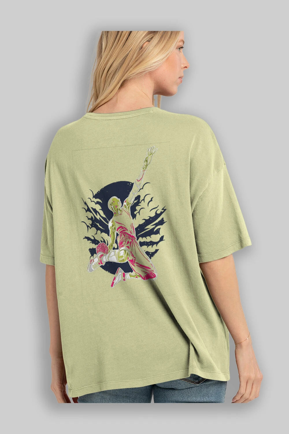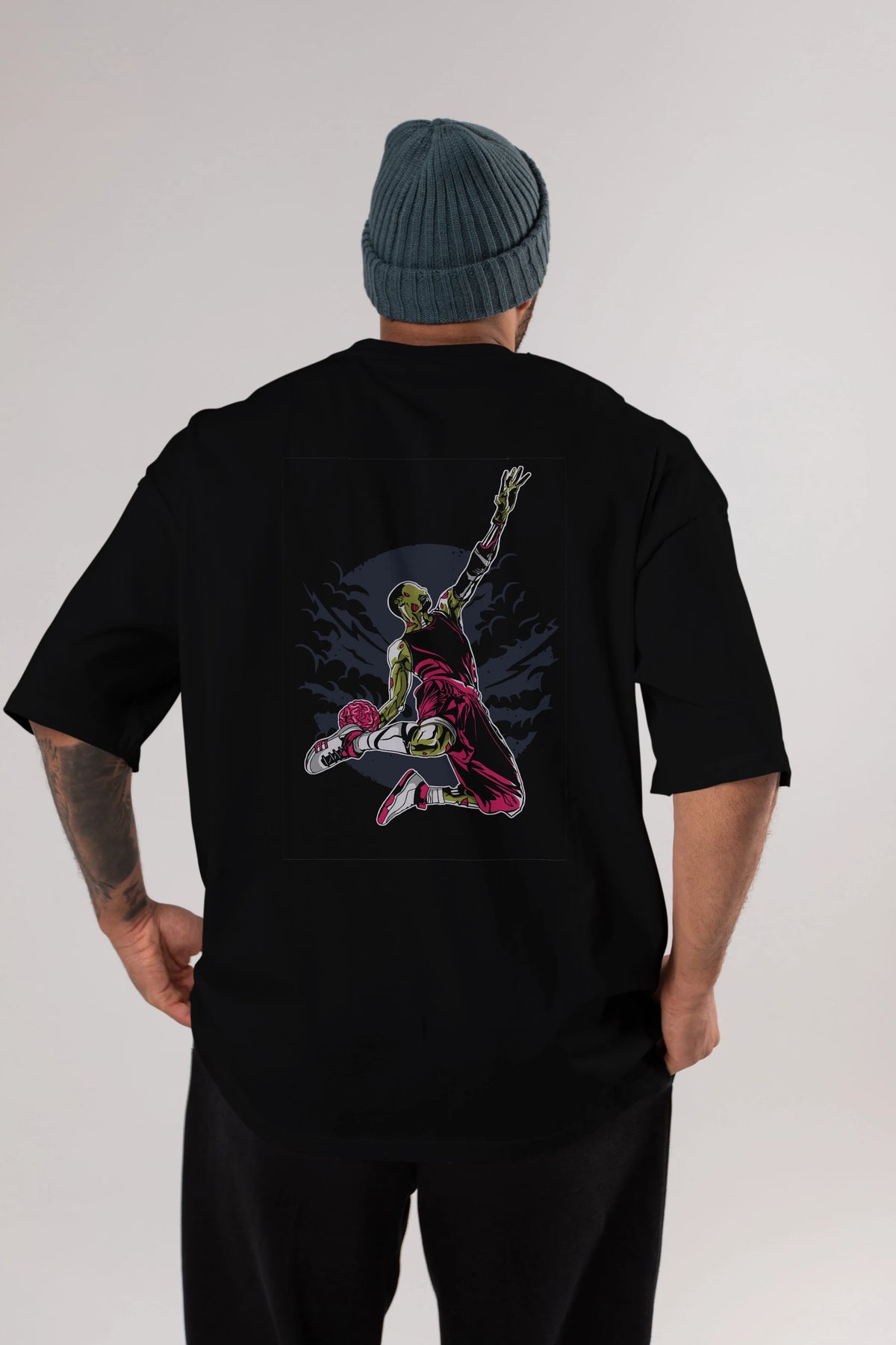 Zombie Slam Dunk Arka Baskılı Oversize t-shirt Erkek Kadın Unisex %100 Pamuk