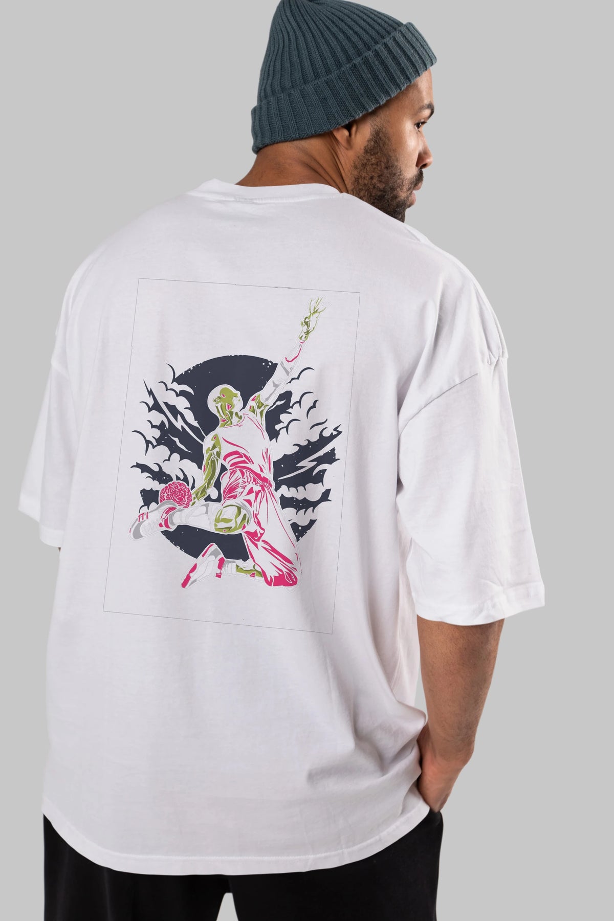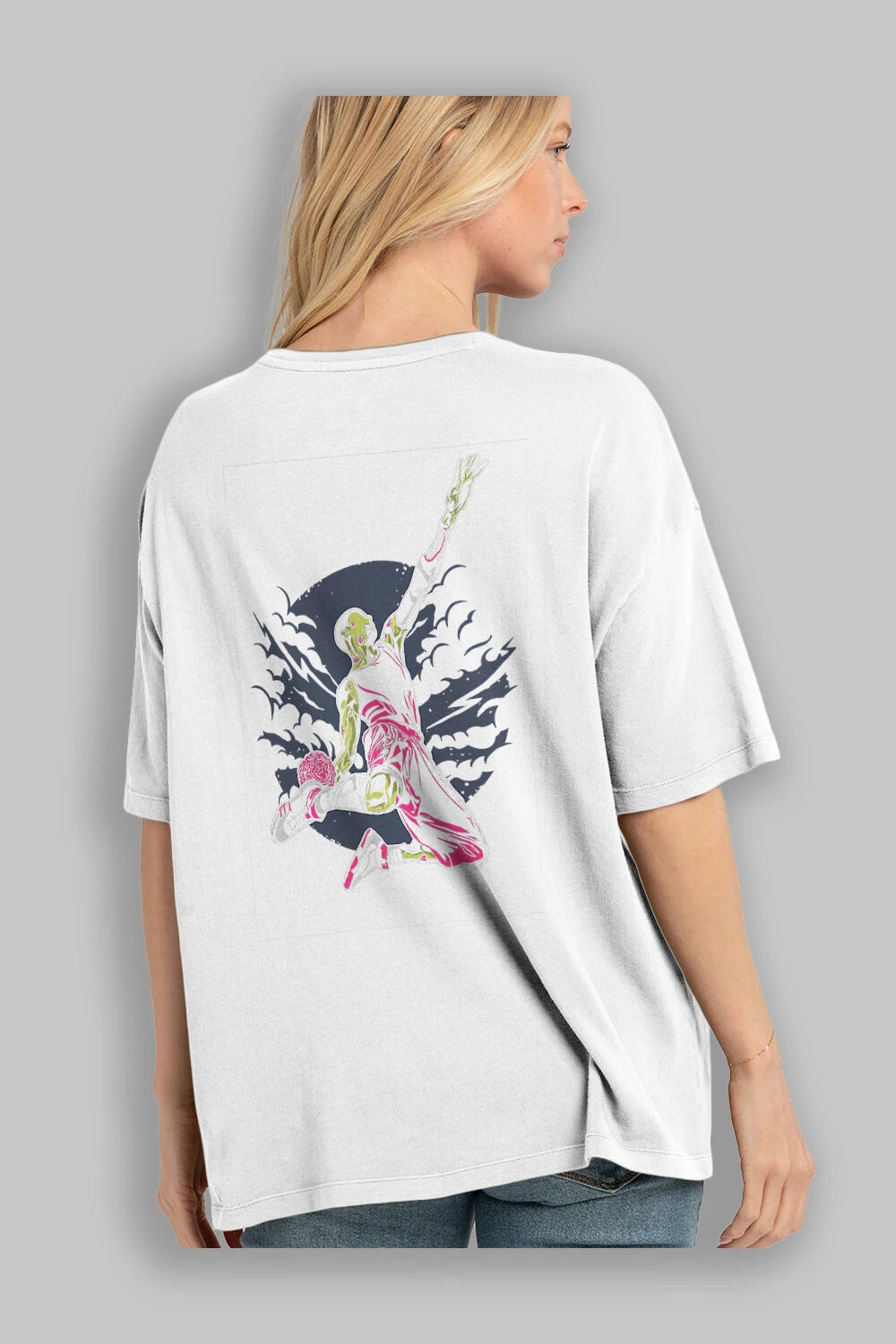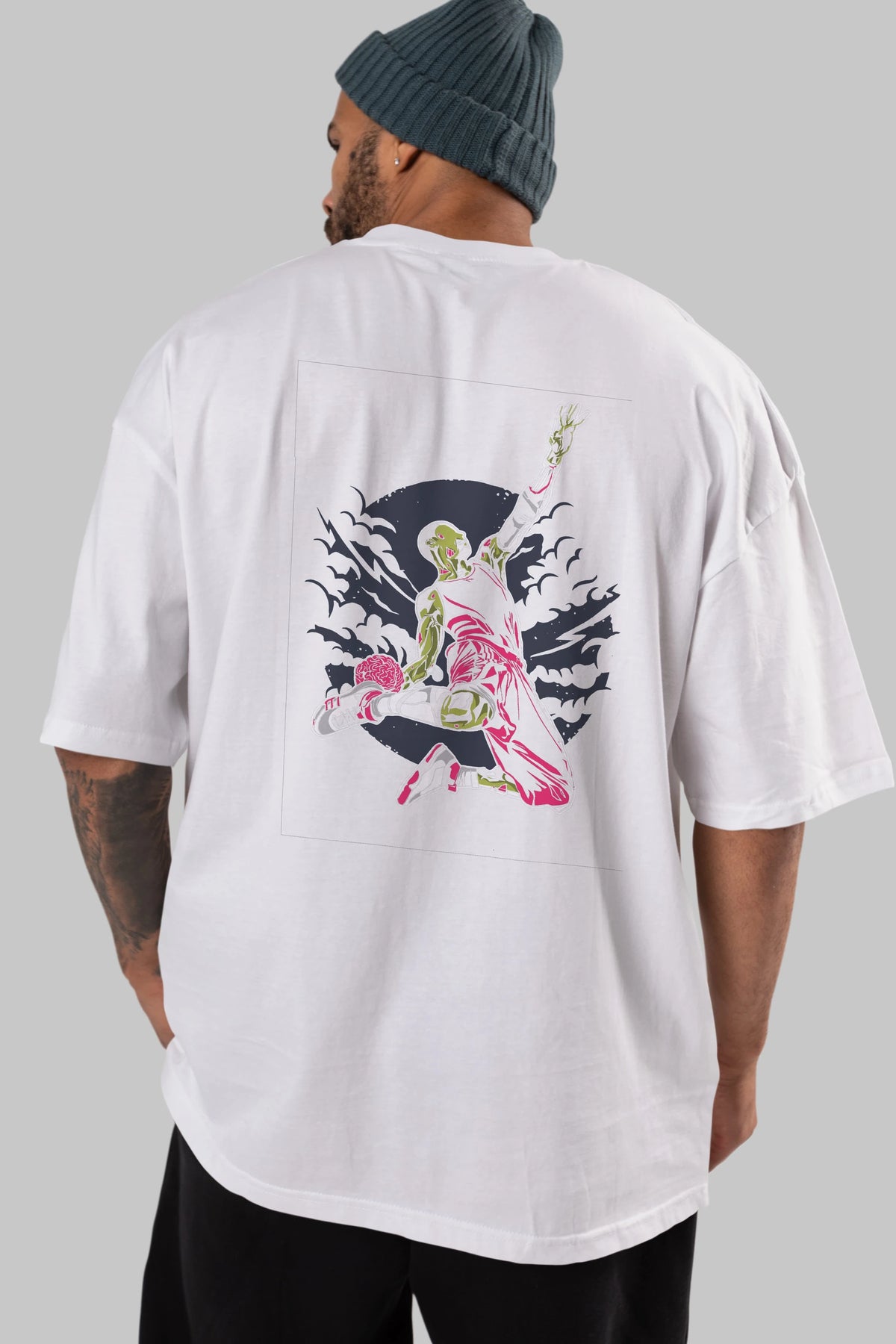 Zombie Slam Dunk Arka Baskılı Oversize t-shirt Erkek Kadın Unisex %100 Pamuk