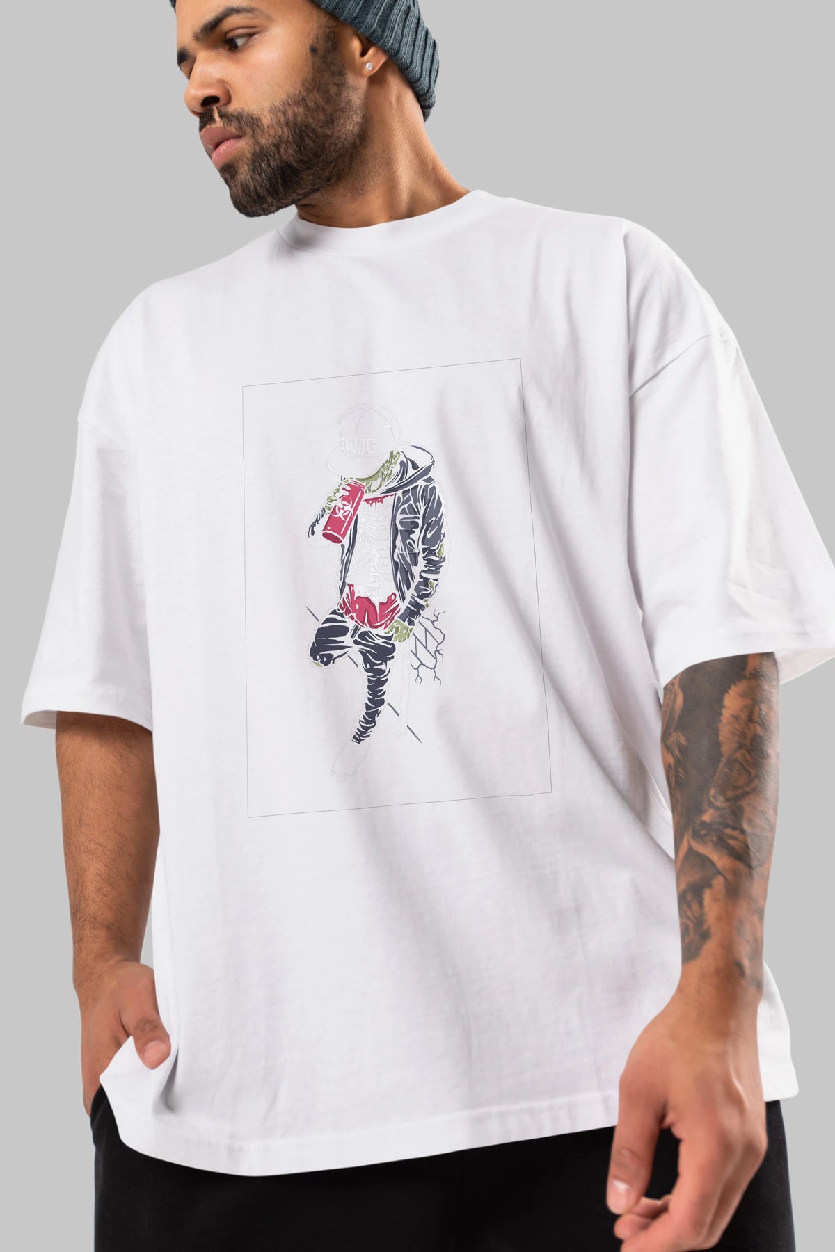 Hem erkekler hem de kadınlar için uygun, taze, modern bir baskıya sahip baskılı oversize t-shirt.