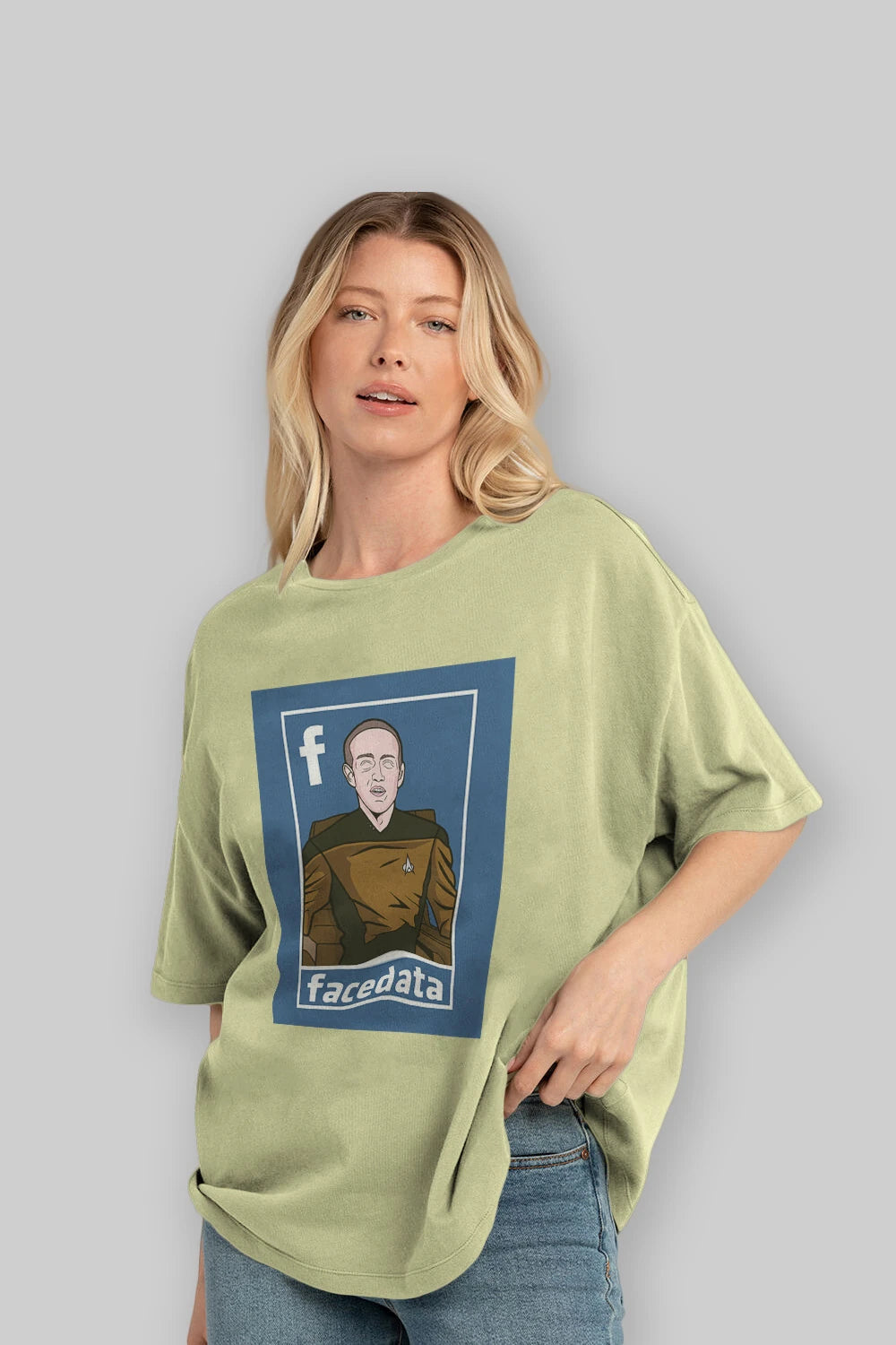 Hem erkekler hem de kadınlar için uygun, taze, modern bir baskıya sahip baskılı oversize t-shirt.