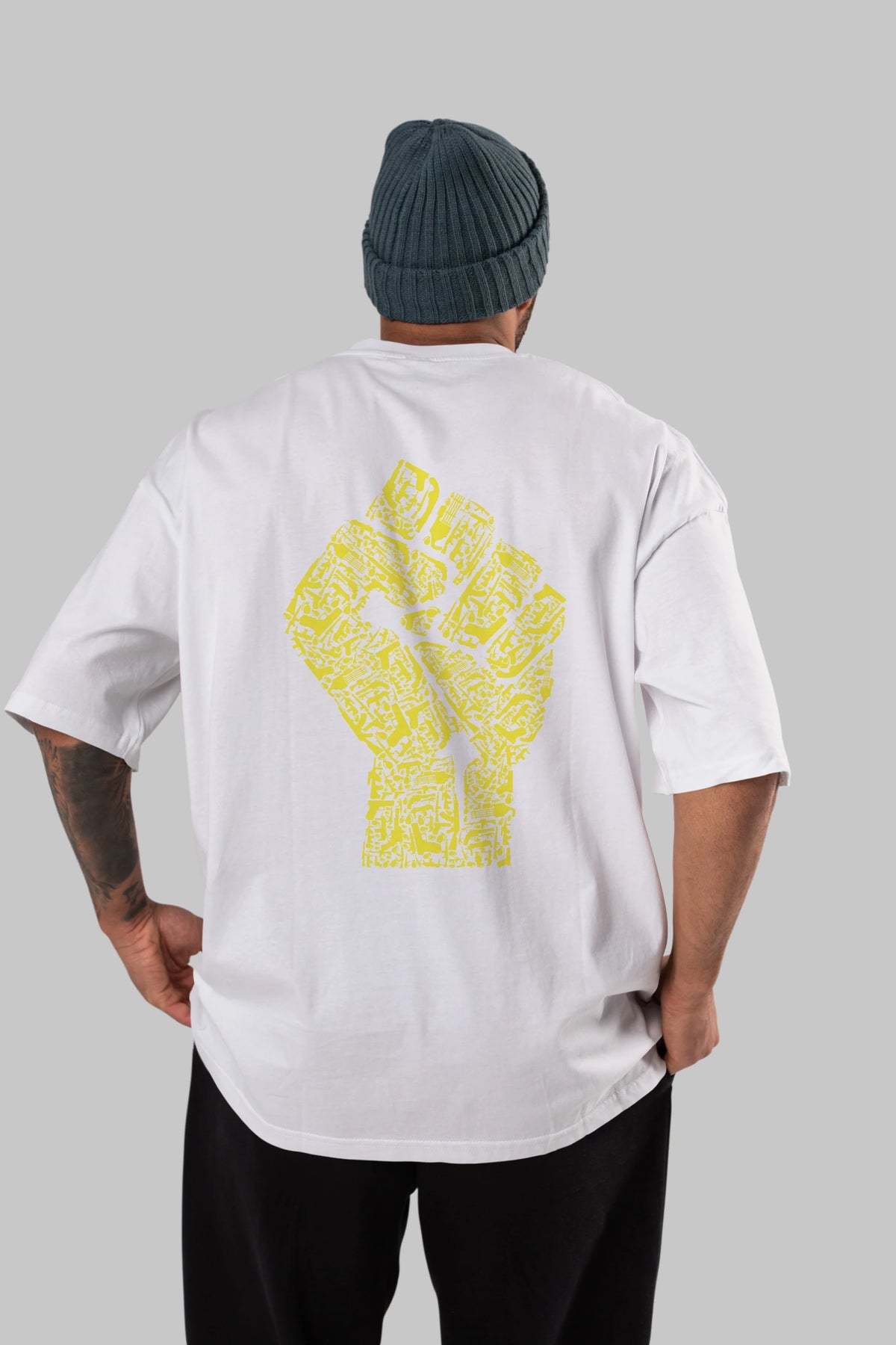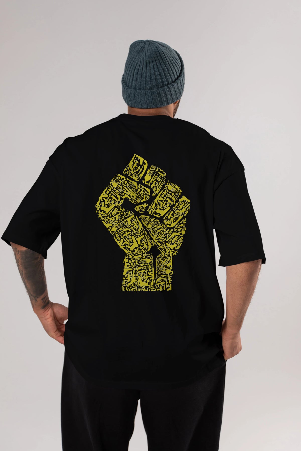 Hand Of Revolution Arka Baskılı Oversize t-shirt %100 pamuk Erkek Kadın Unisex