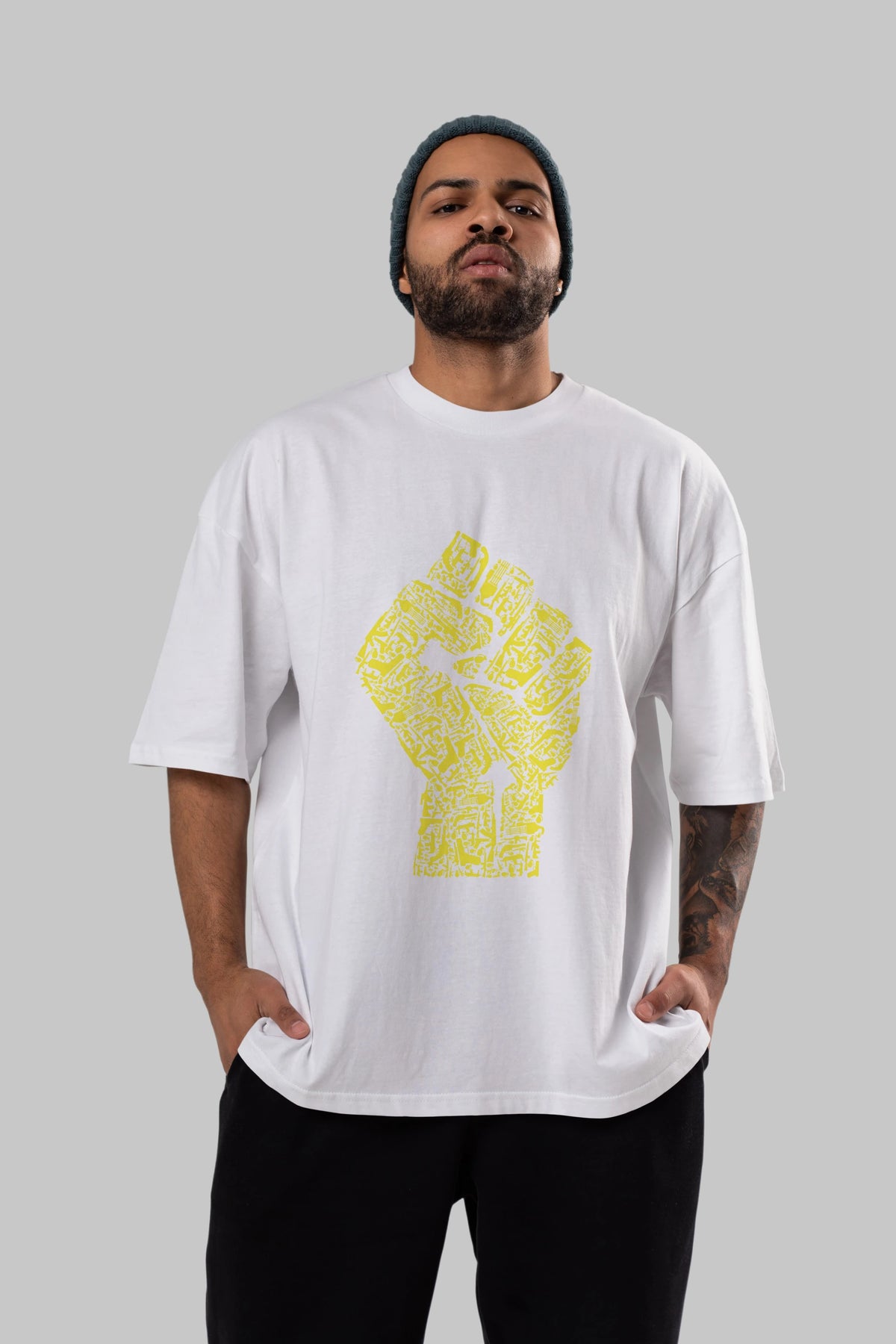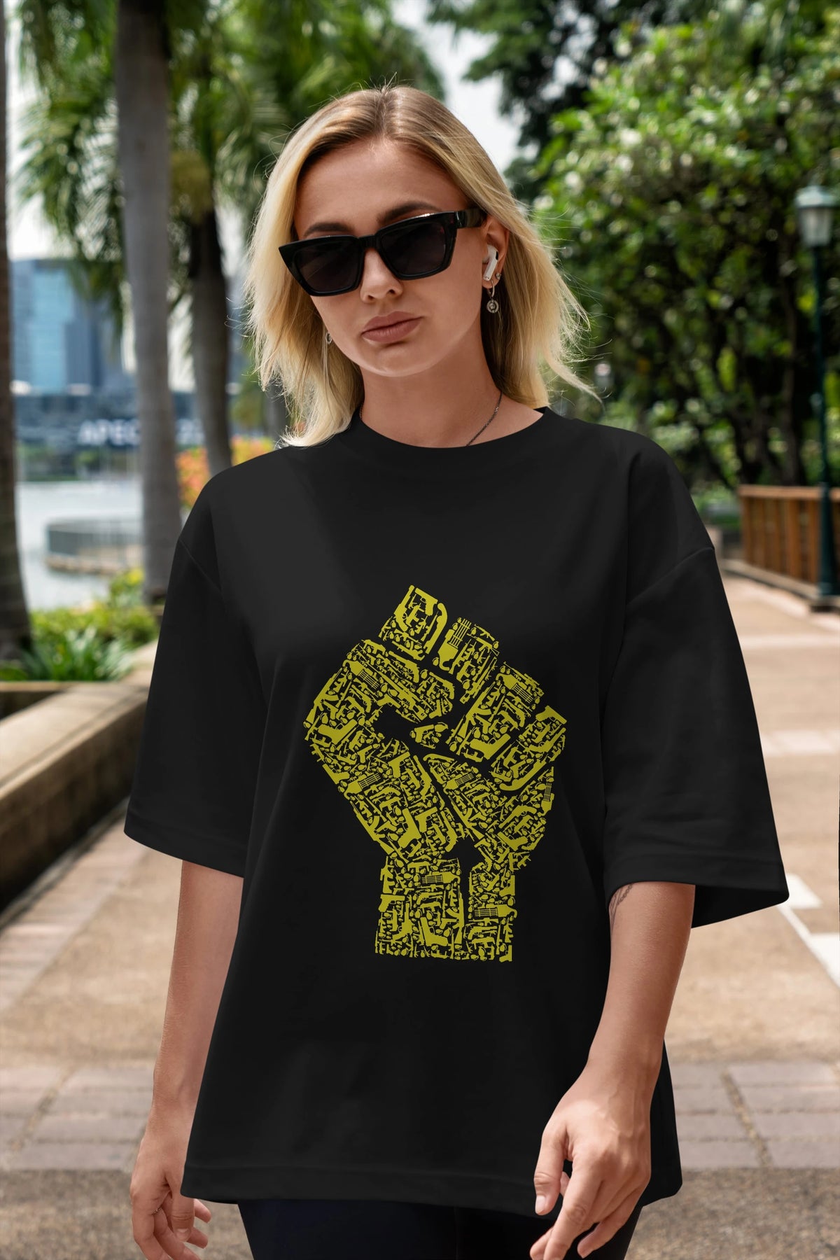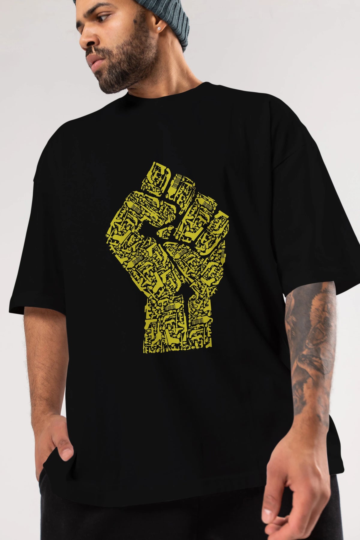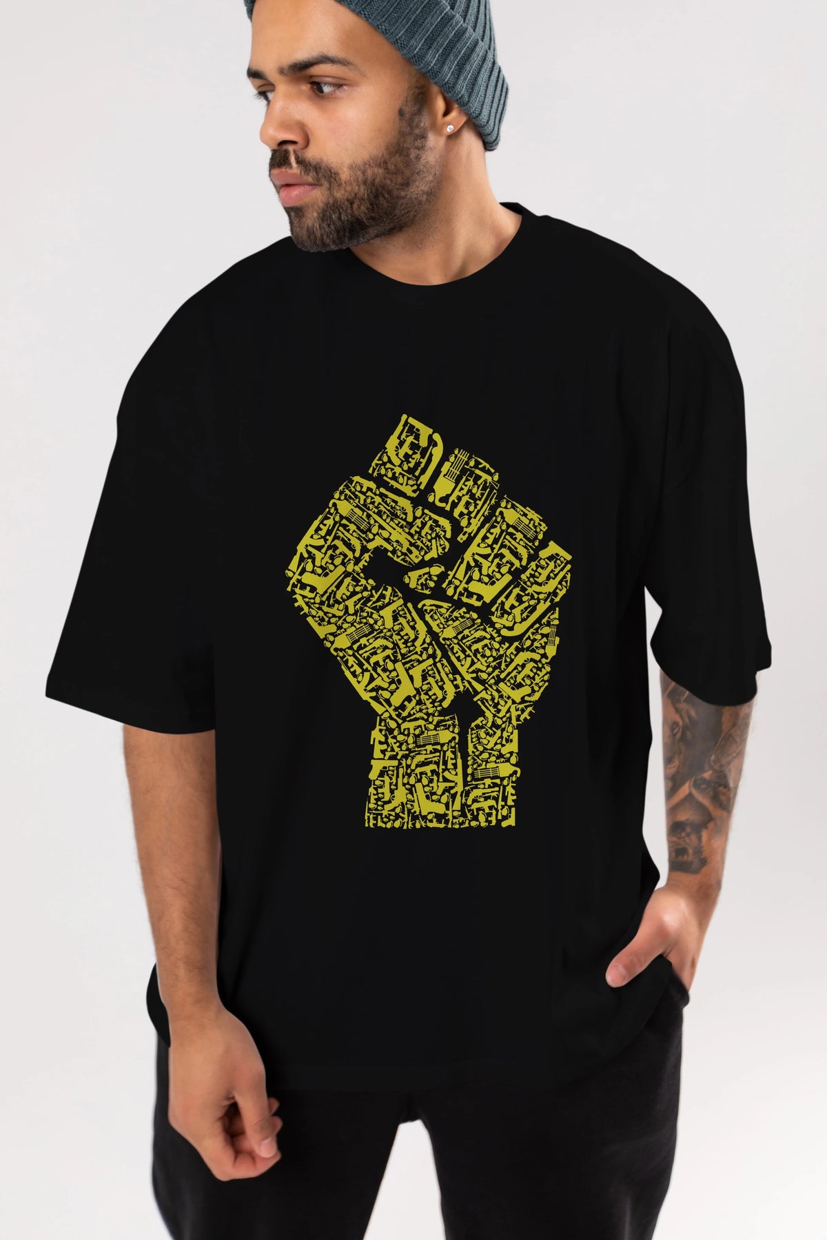 Hand Of Revolution Ön Baskılı Oversize t-shirt %100 pamuk Erkek Kadın Unisex