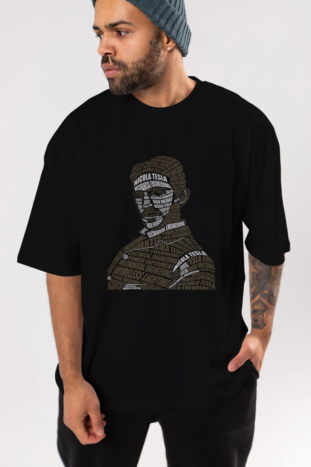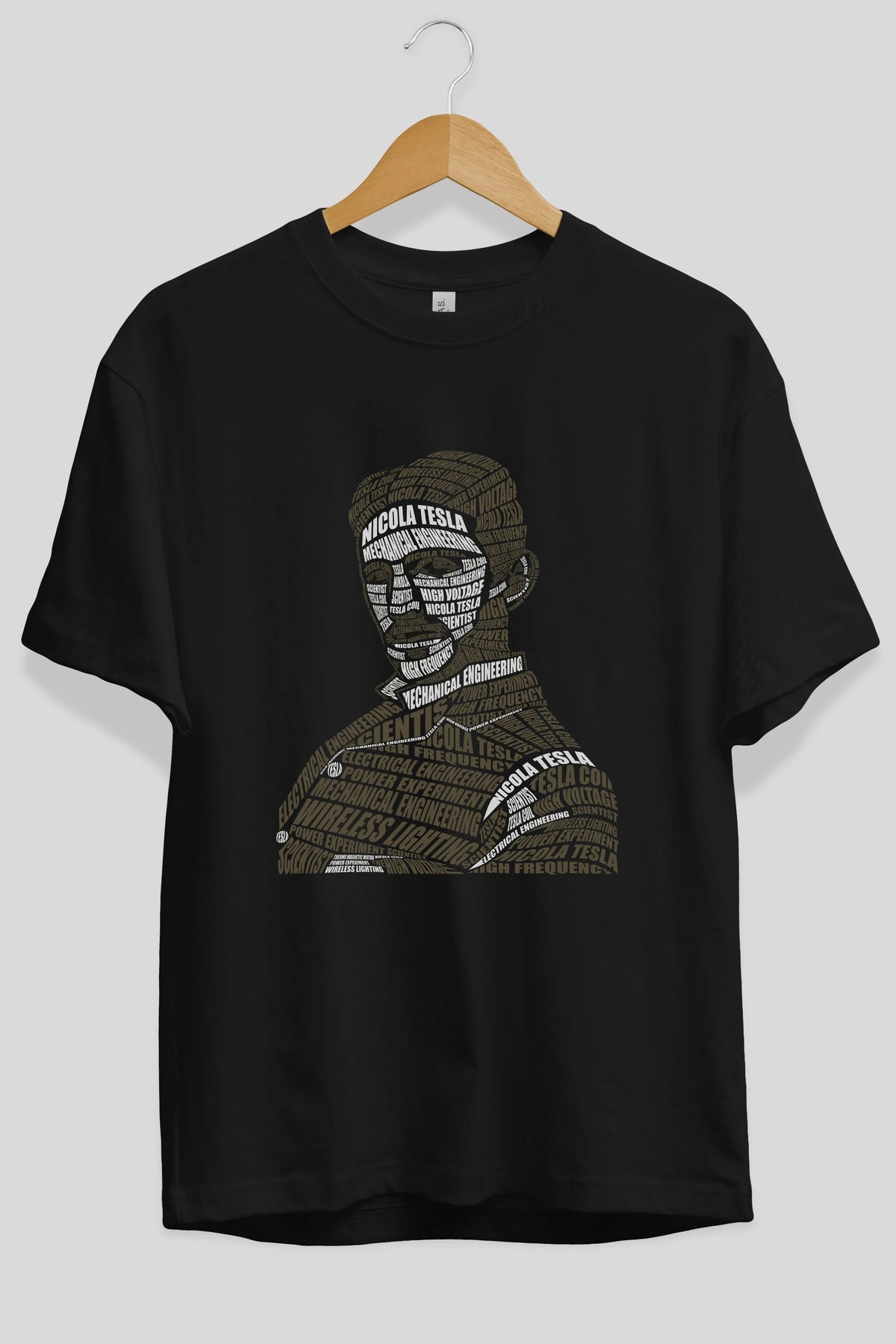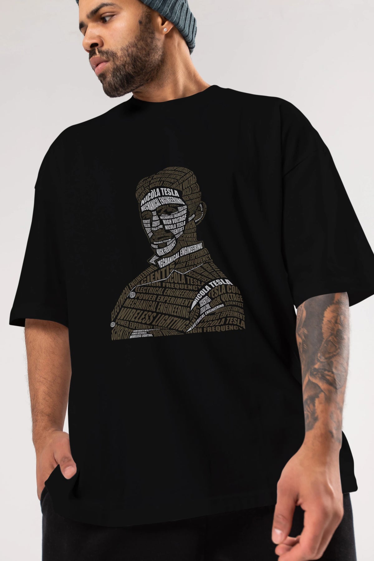 Nikola Tesla Calligram Ön Baskılı Oversize t-shirt %100 pamuk Erkek Kadın Unisex