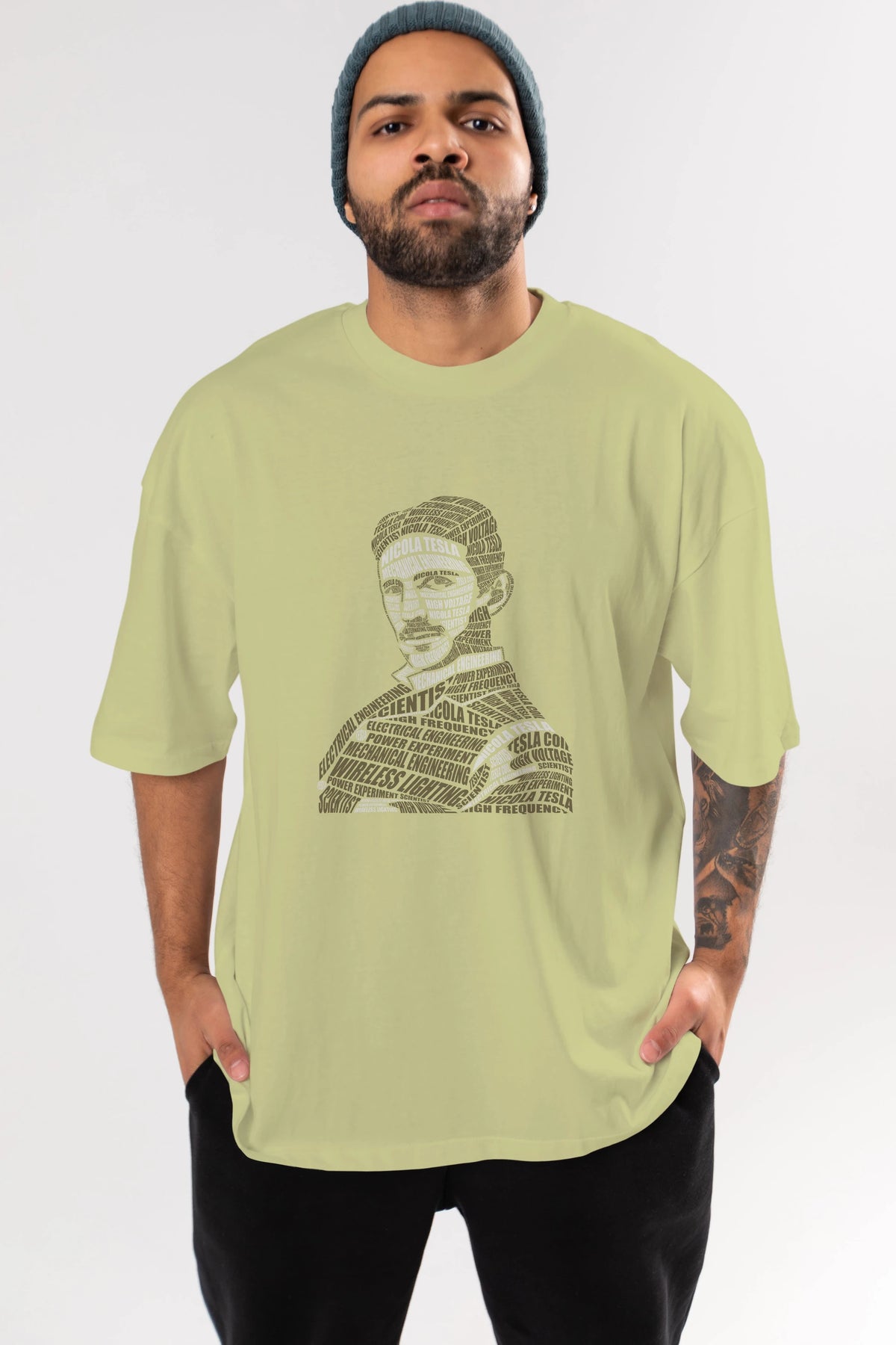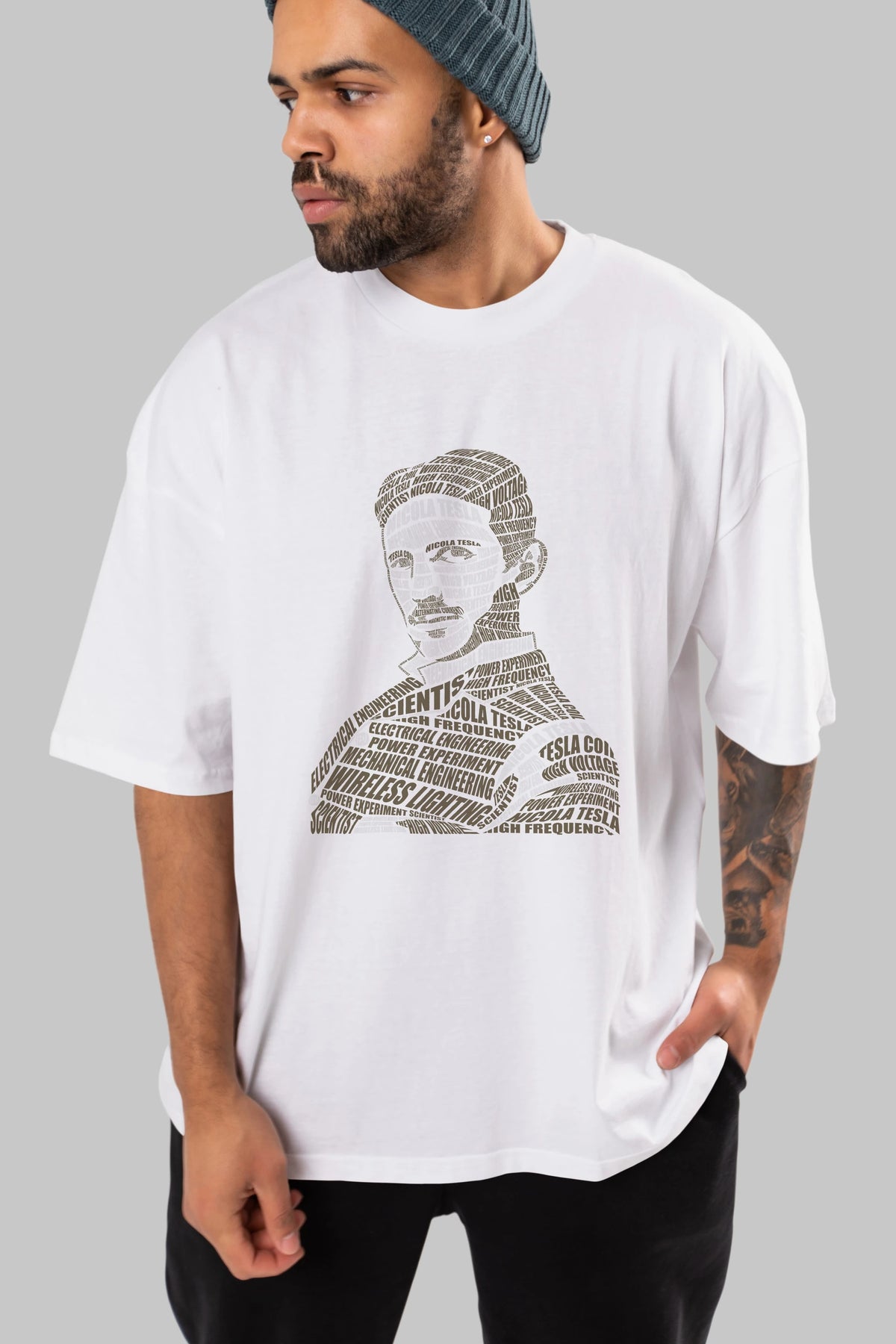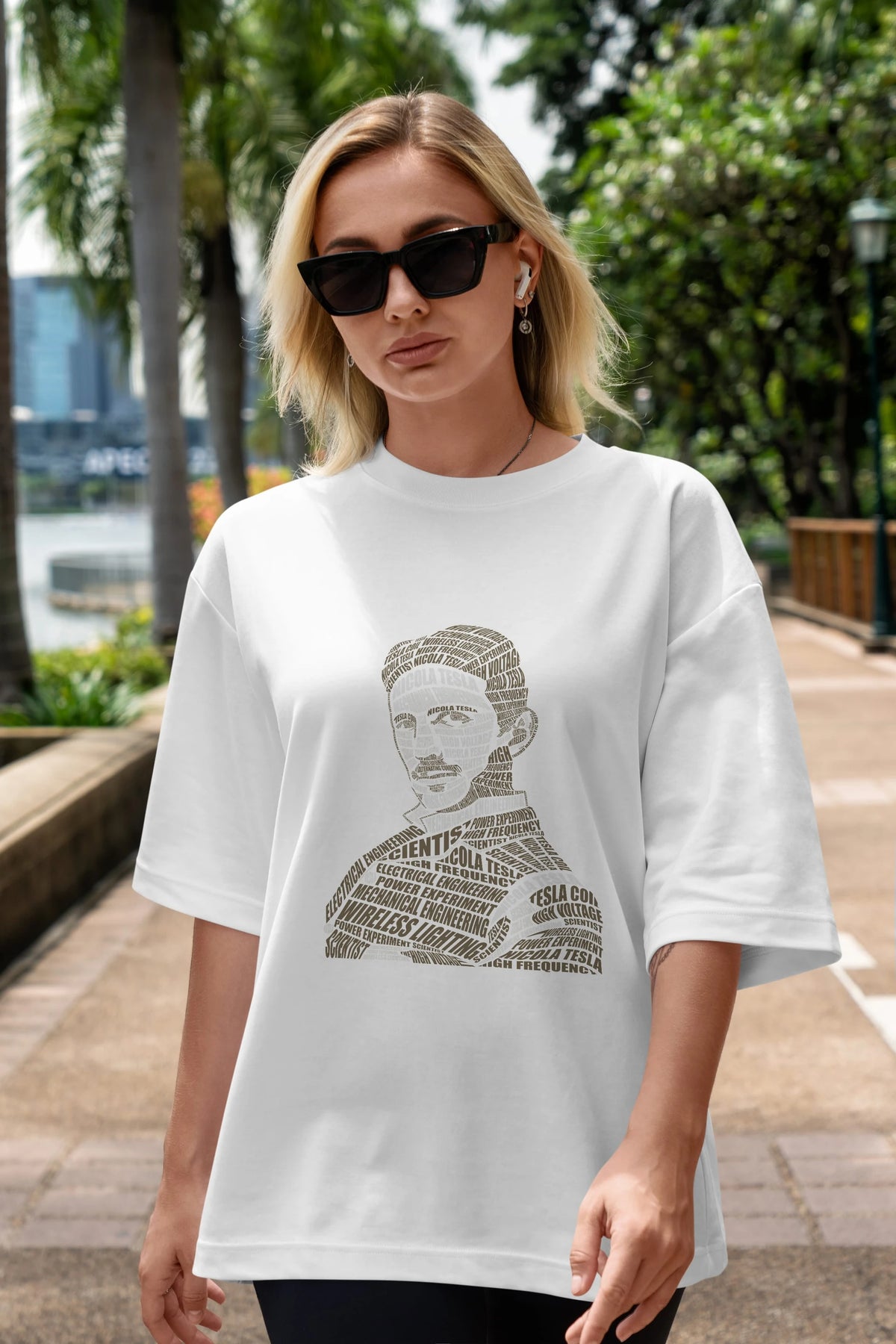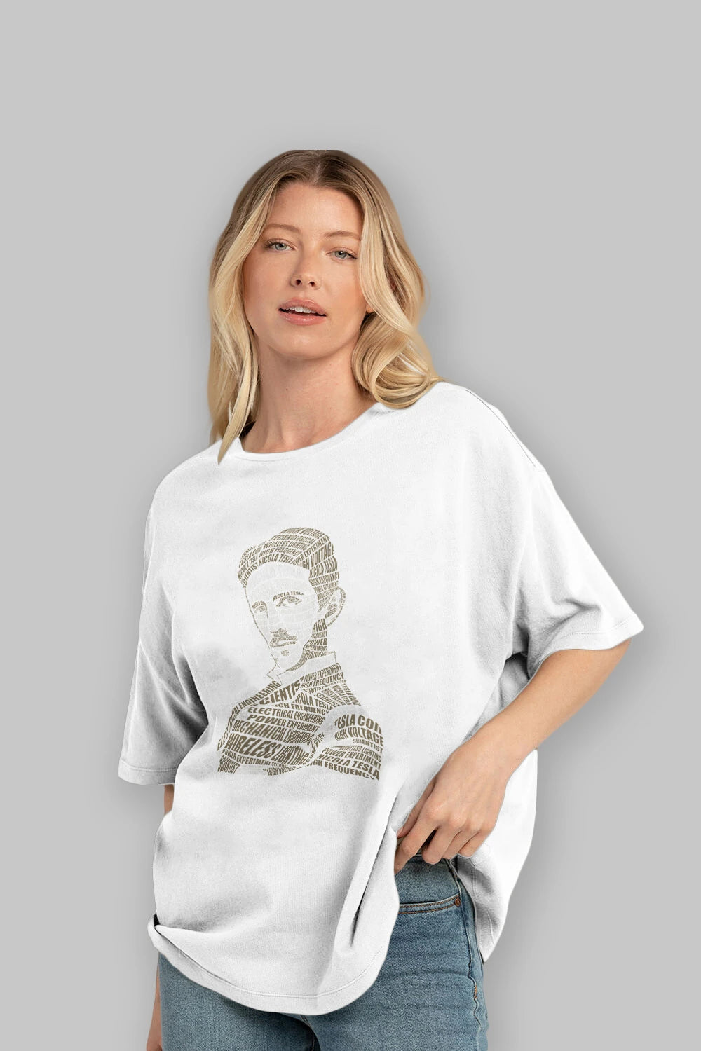 Nikola Tesla Calligram Ön Baskılı Oversize t-shirt %100 pamuk Erkek Kadın Unisex